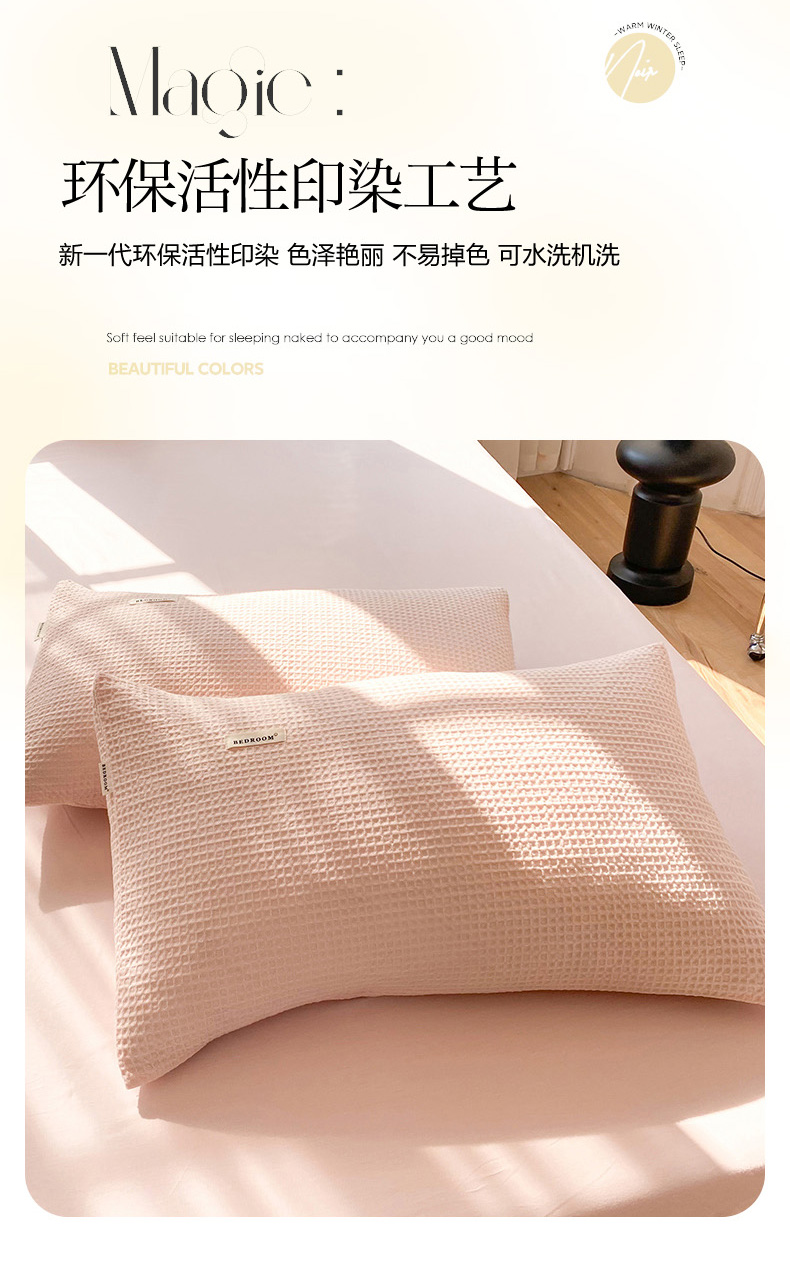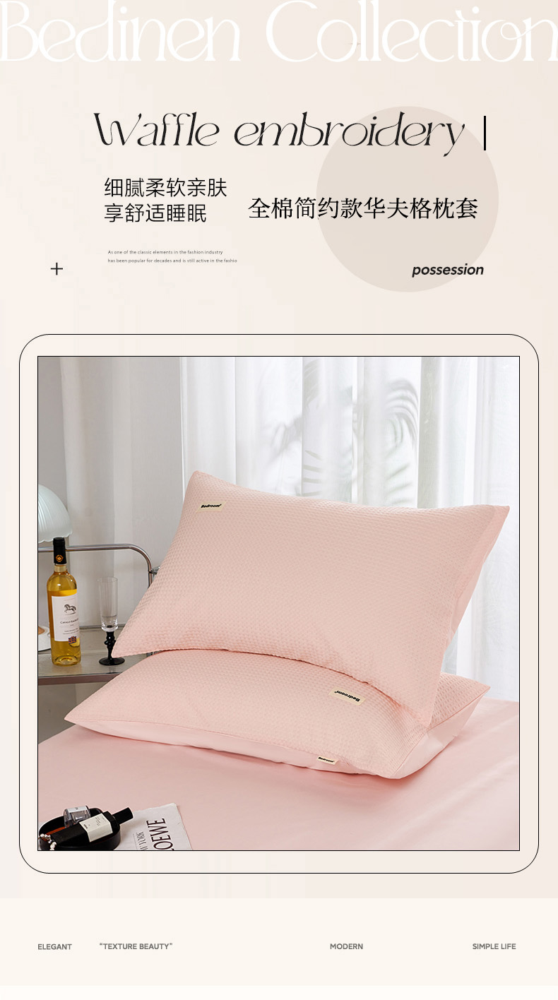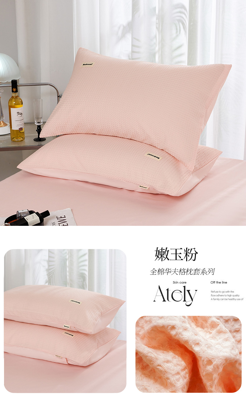 商品名称:眠博士 2025新款简约时尚全棉华夫格枕套 简约款-嫩玉粉