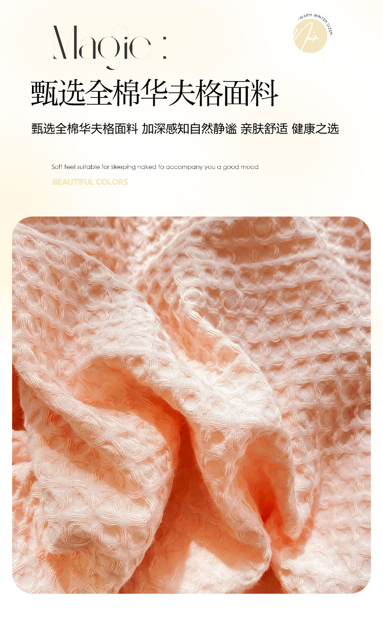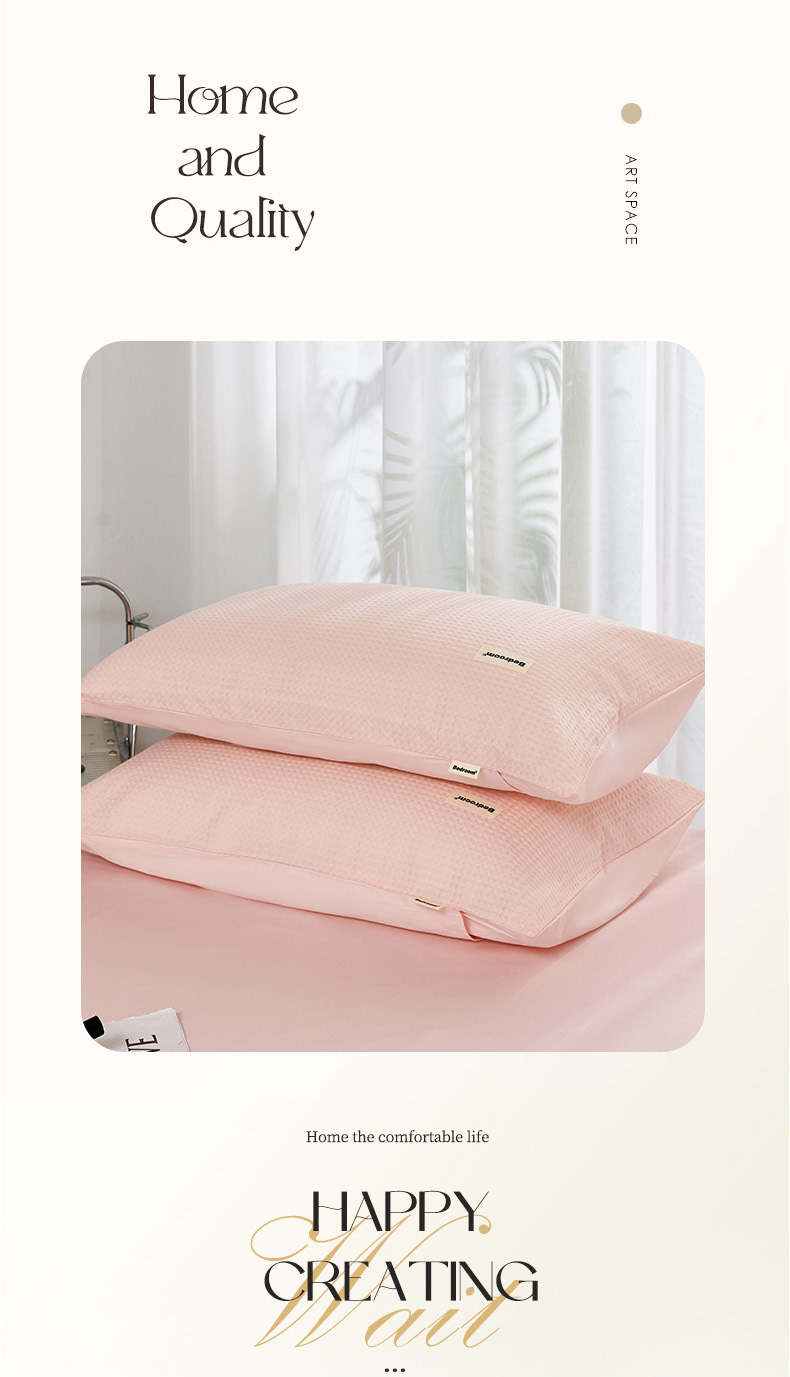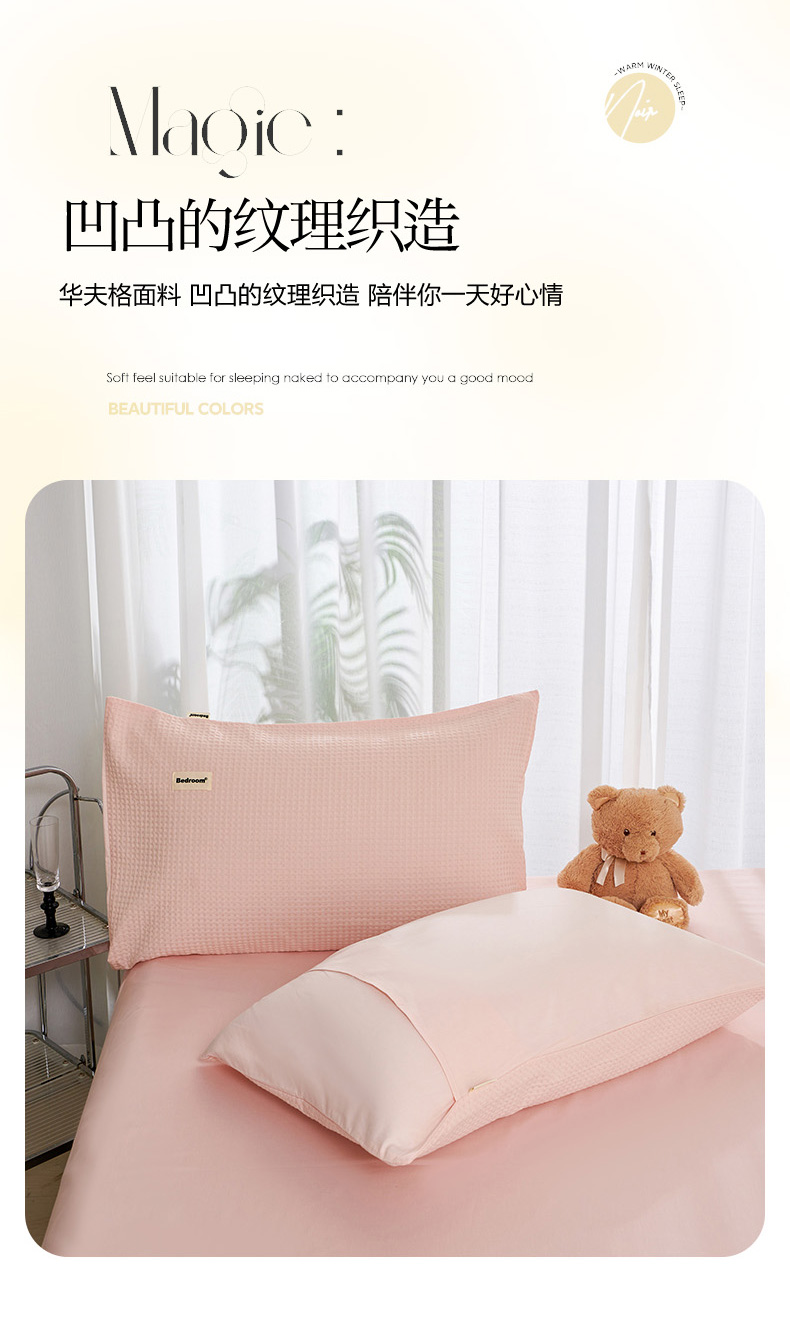 商品名称:眠博士 2025新款简约时尚全棉华夫格枕套 简约款-嫩玉粉