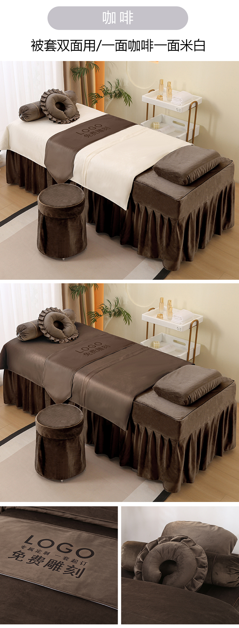 琪宝阁 2025新款轻奢一族系列立丝绒美 容床罩套件 轻奢一族咖啡