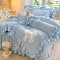 商品名称:2025秋冬新款230g全消光牛奶绒床裙款四件套纯色蕾丝花边刺绣蕾丝床裙款床盖款法式蕾丝公主粉奶油风四件套 甜心—婴儿蓝