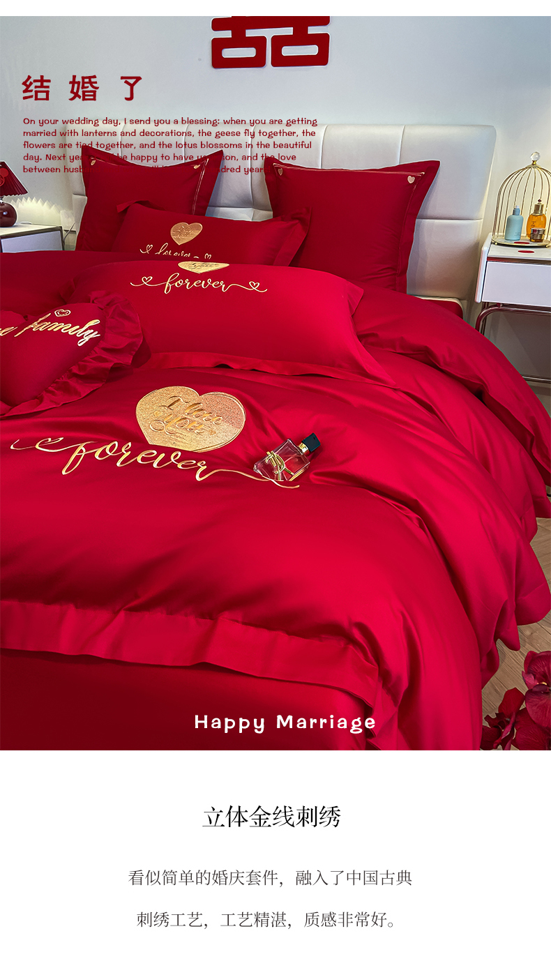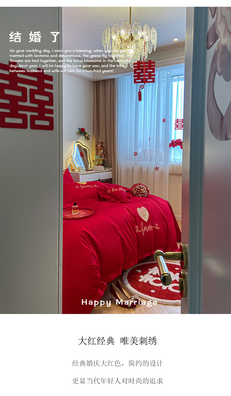 当前位置: 91家纺网 > 商品网购 > 床品套件 > 四件套 > 婚庆四件套 > 东方合美(原:皇家传奇) 2023新款小红书风格热款40S婚庆系列 结婚了