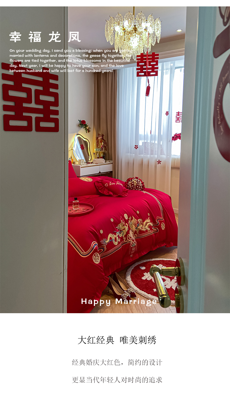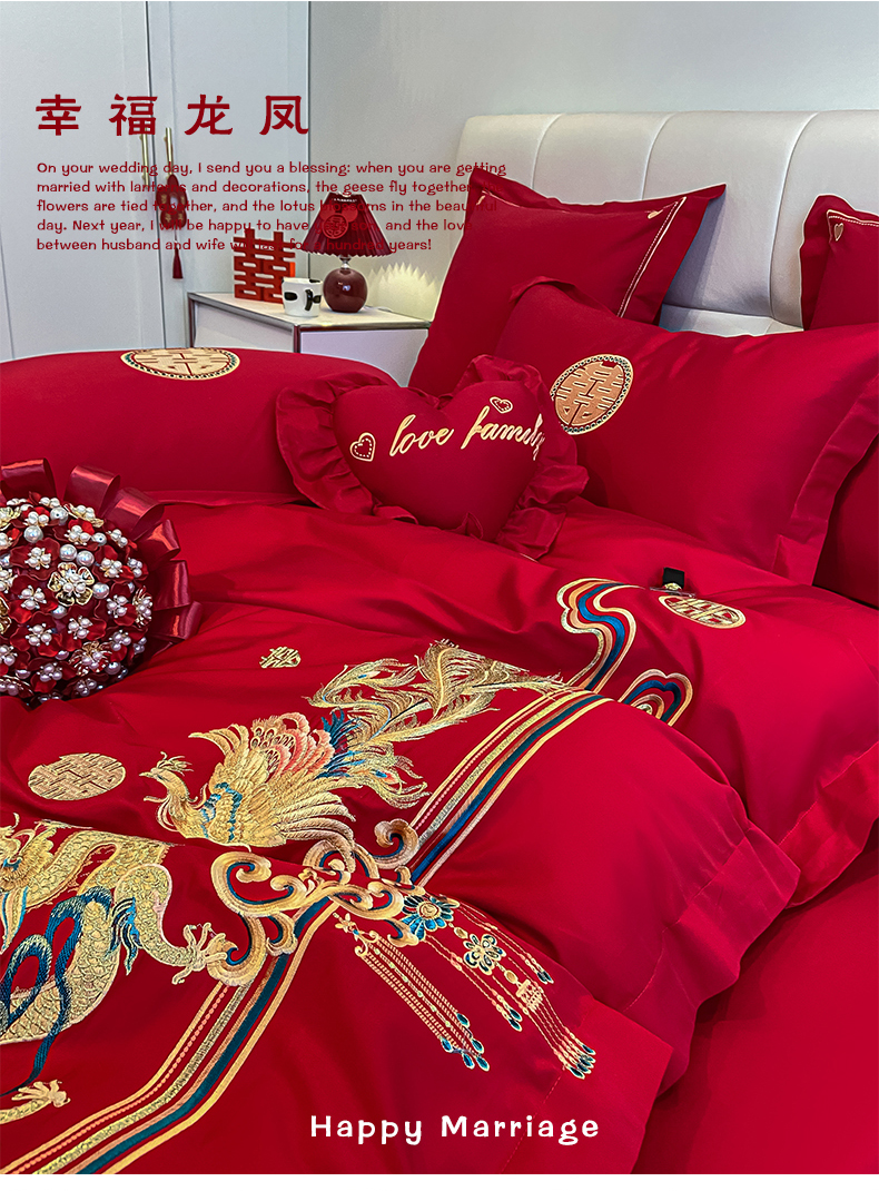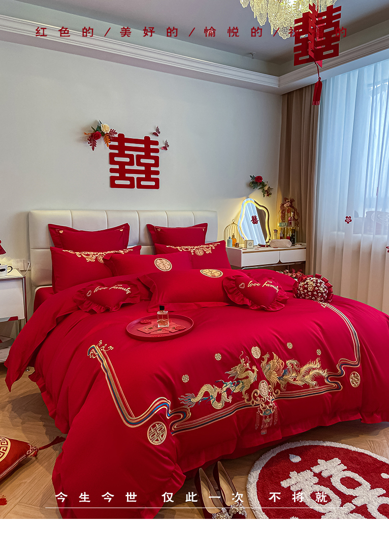 当前位置: 91家纺网 > 商品网购 > 床品套件 > 四件套 > 婚庆四件套 > 东方合美(原:皇家传奇) 2023新款小红书风格热款40S婚庆系列 幸福龙凤