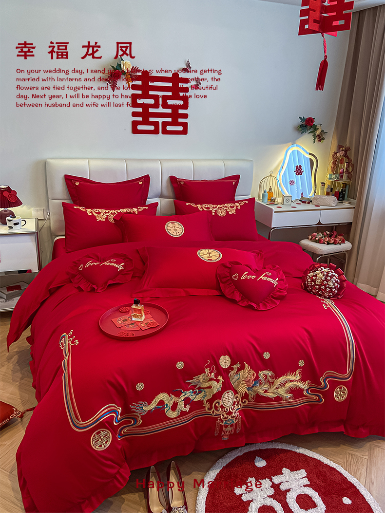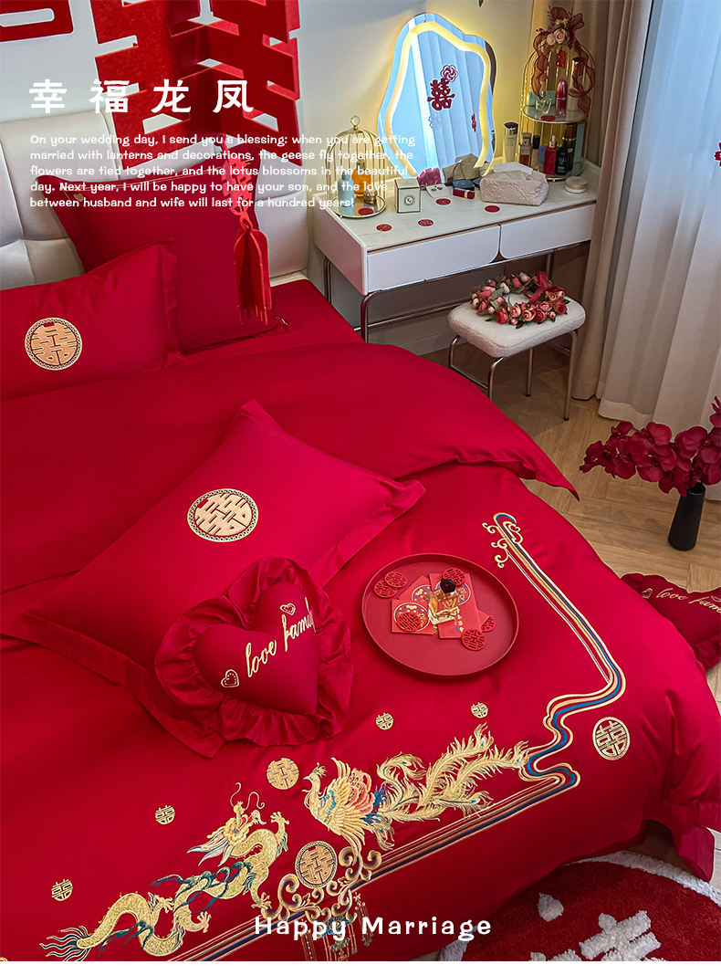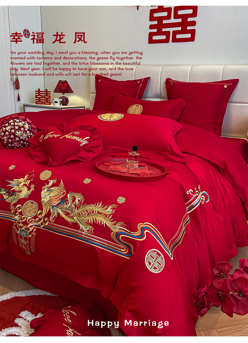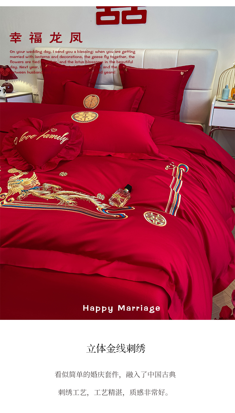 当前位置: 91家纺网 > 商品网购 > 床品套件 > 四件套 > 婚庆四件套 > 东方合美(原:皇家传奇) 2023新款小红书风格热款40S婚庆系列 幸福龙凤