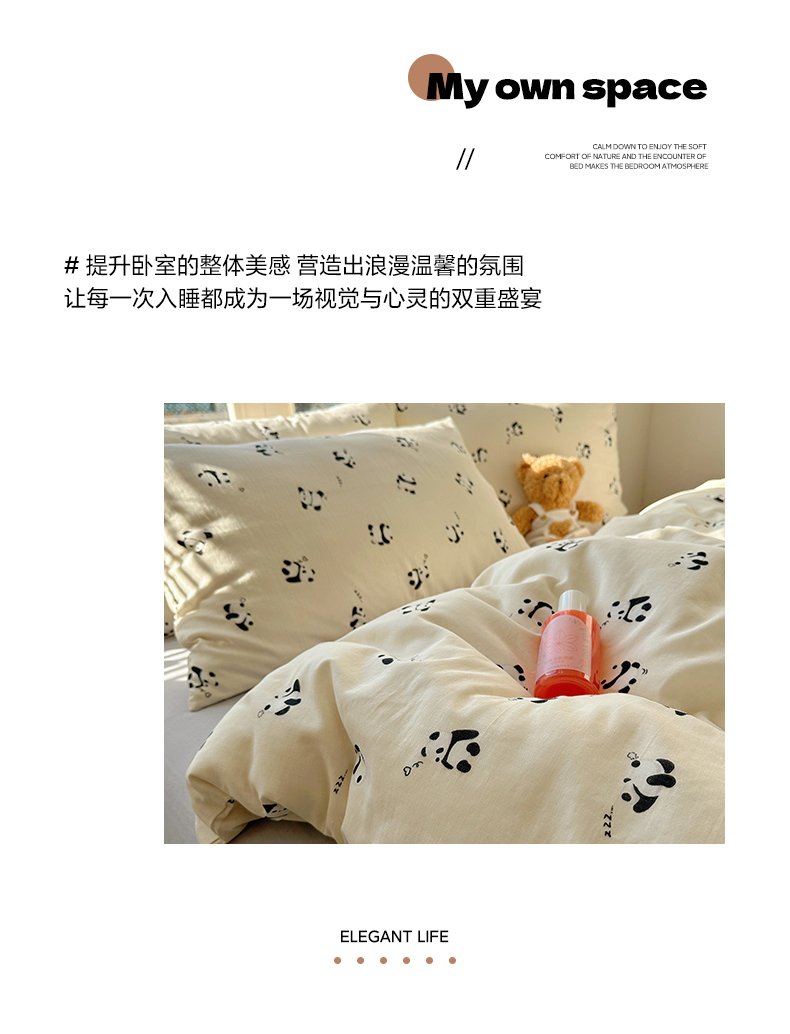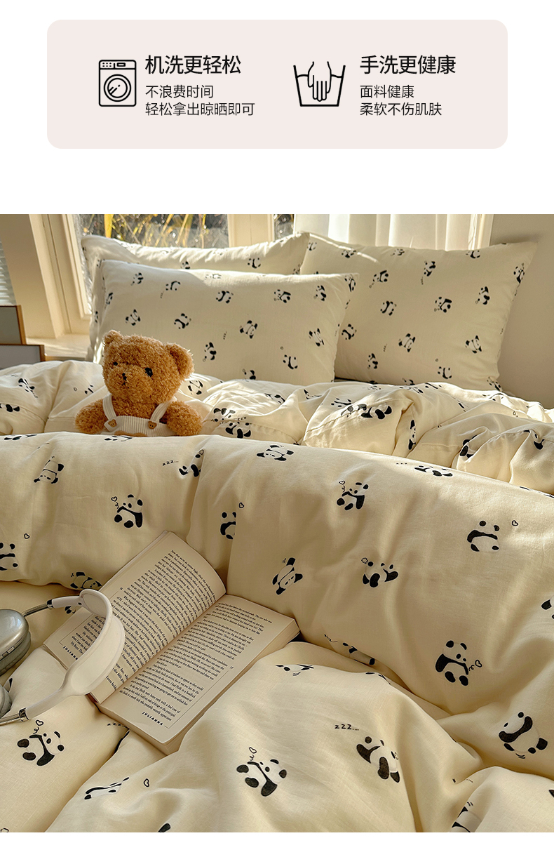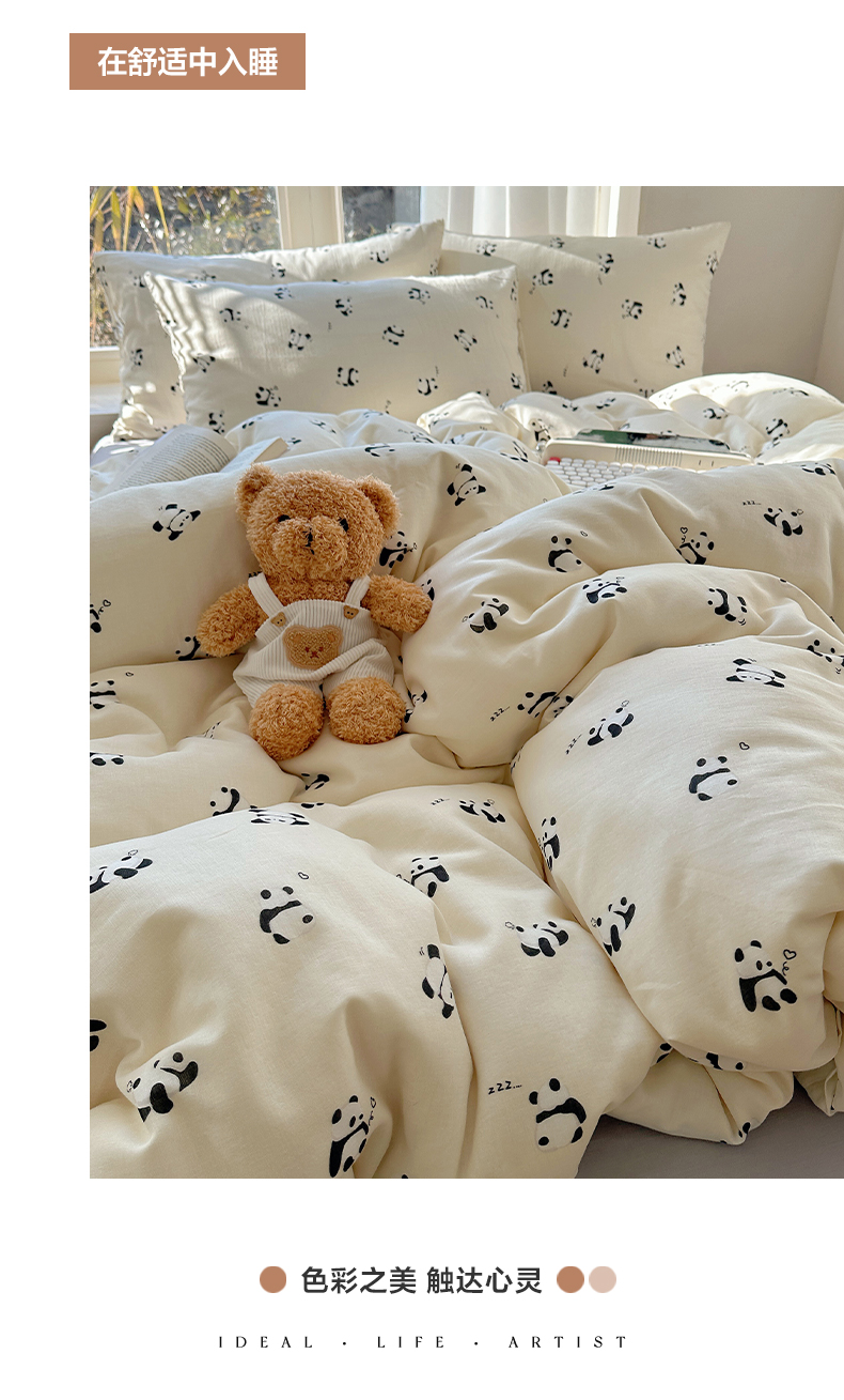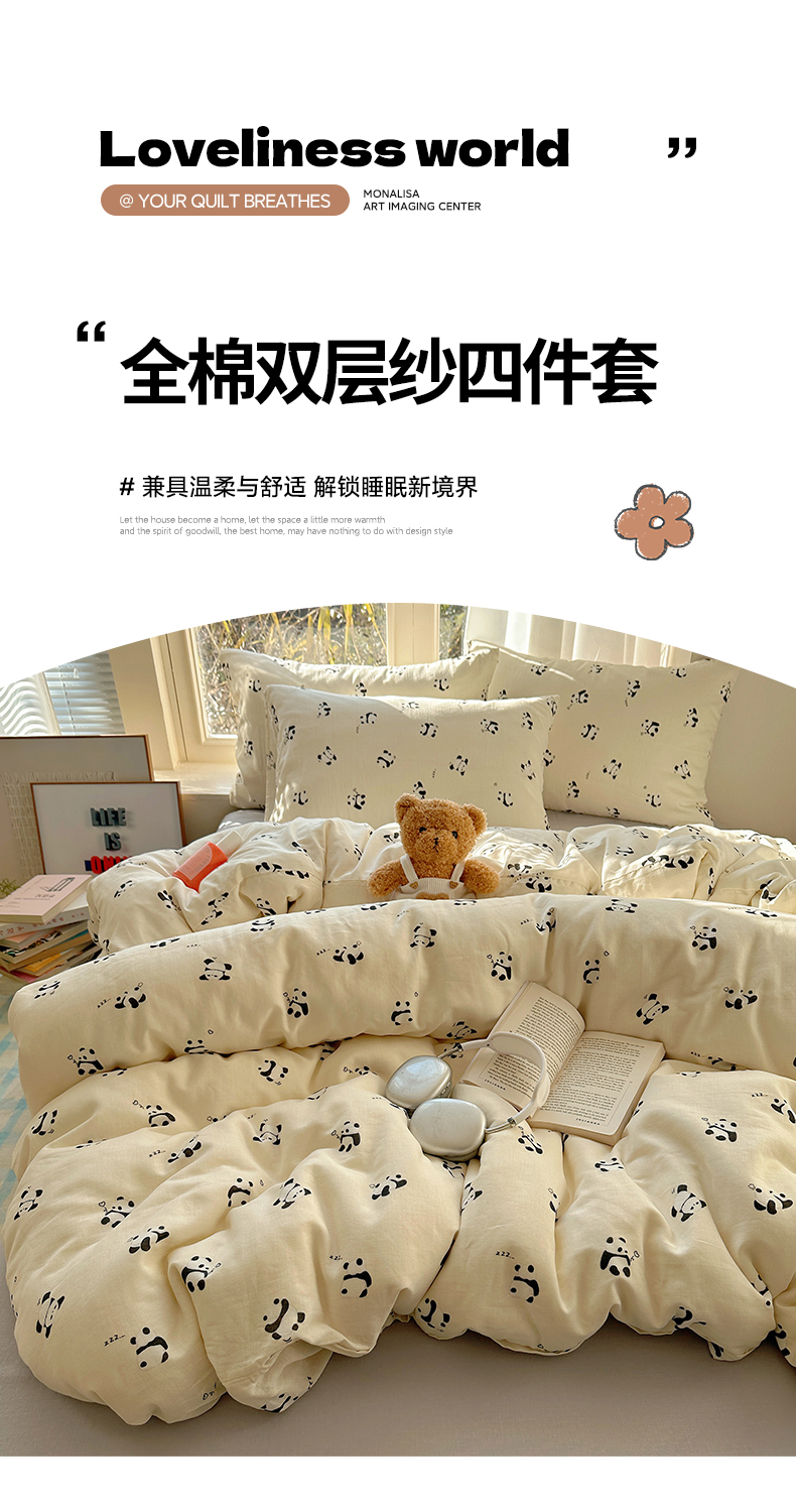 雅居纺家纺 2025新款全棉双层纱四件套 睡睡熊