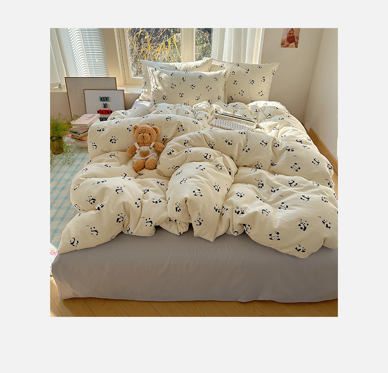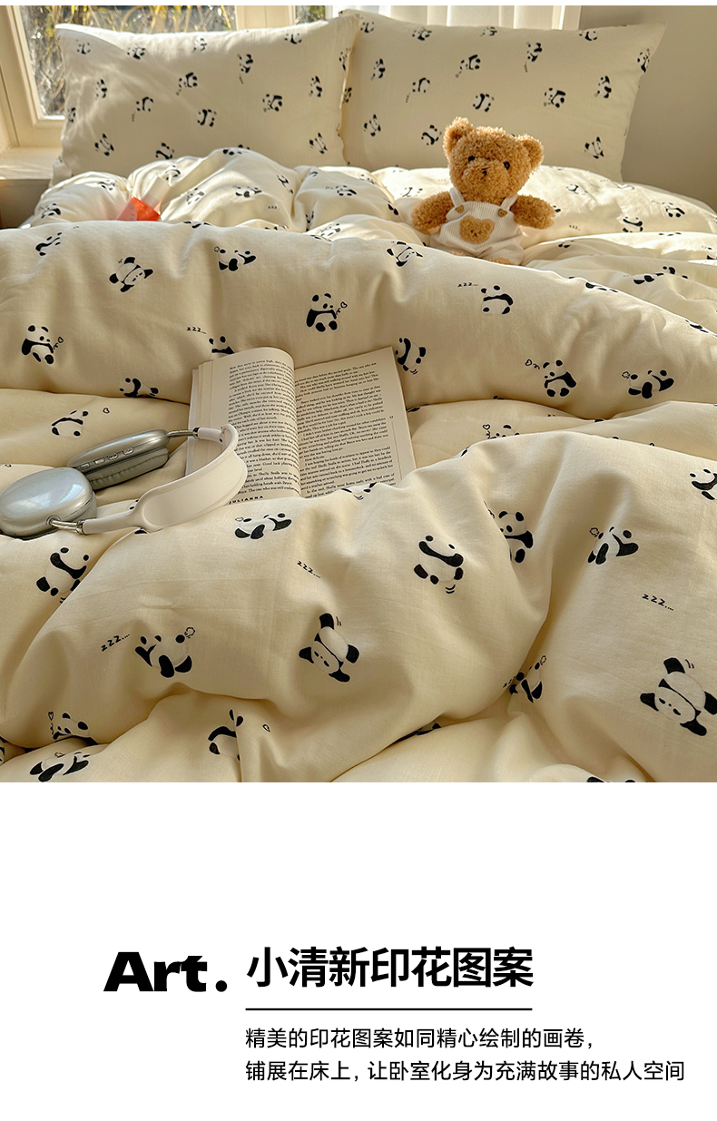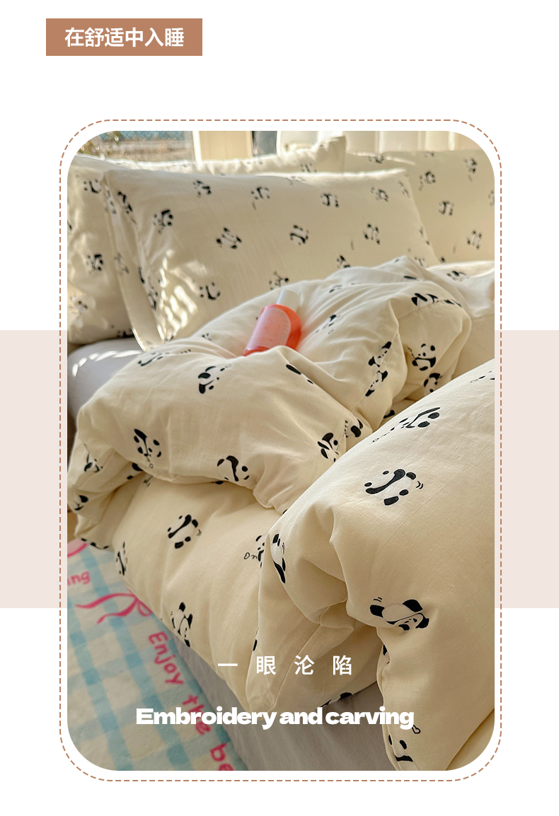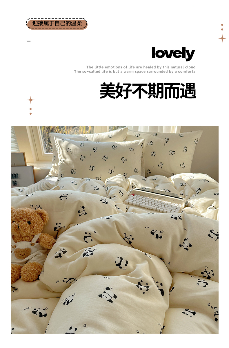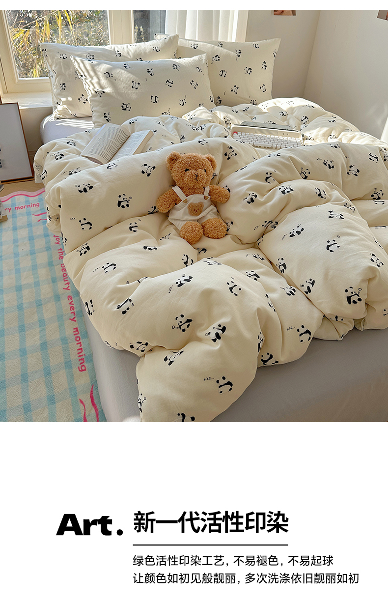 雅居纺家纺 2025新款全棉双层纱四件套 睡睡熊