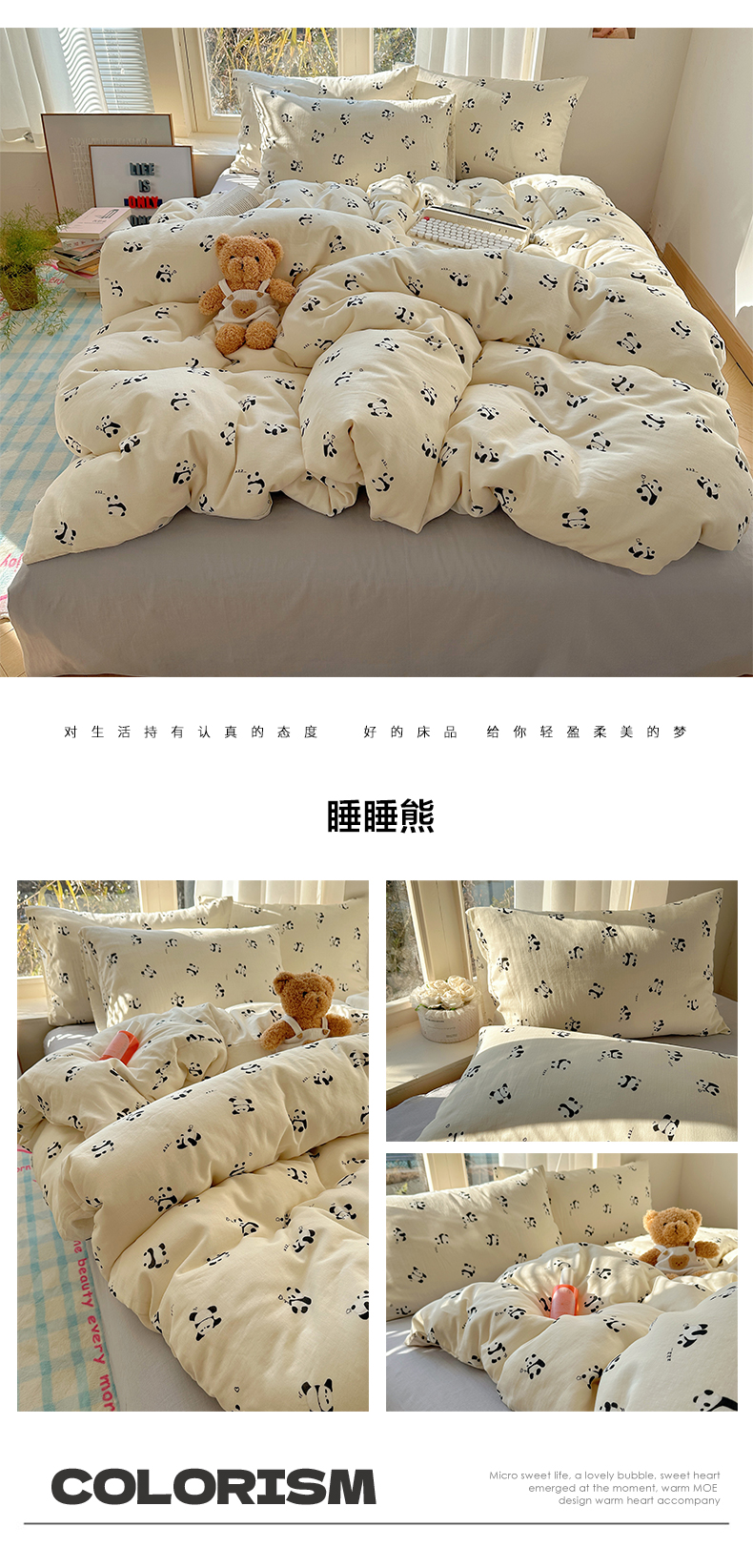 商品名称:雅居纺家纺 2025新款全棉双层纱四件套 睡睡熊