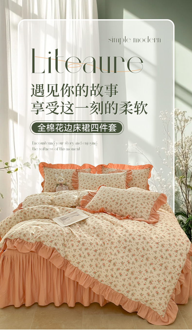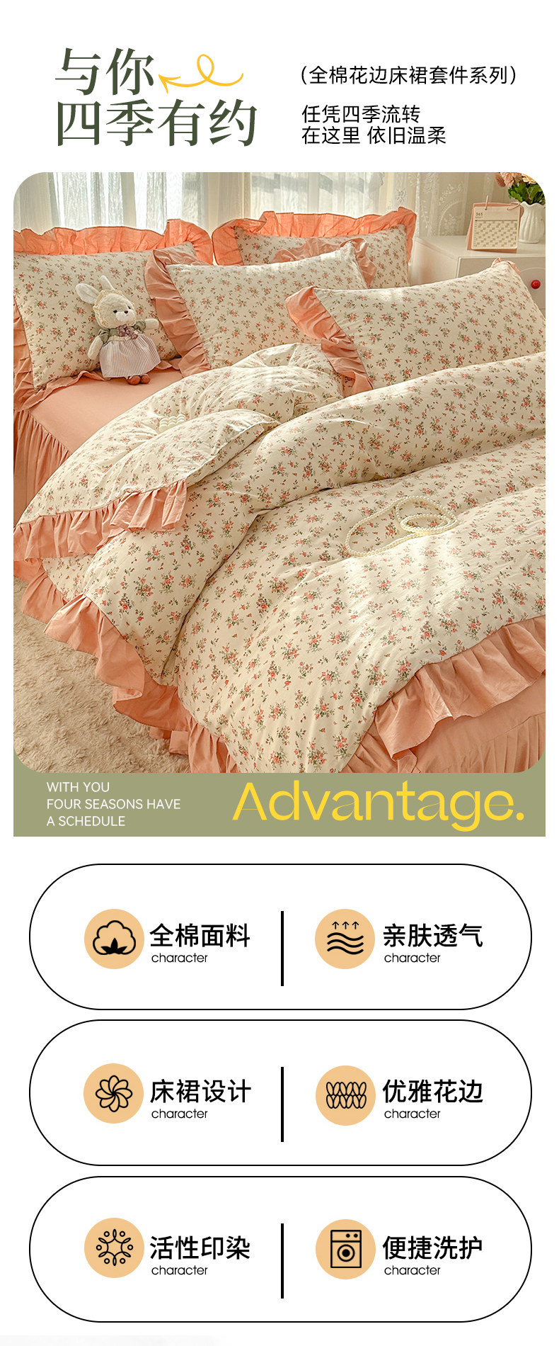 当前位置: 91家纺网 > 商品网购 > 床品套件 > 四件套 > 全棉普通四件套 > 忘忧草 2025新款全棉小清新床裙四件套 陌上花颜