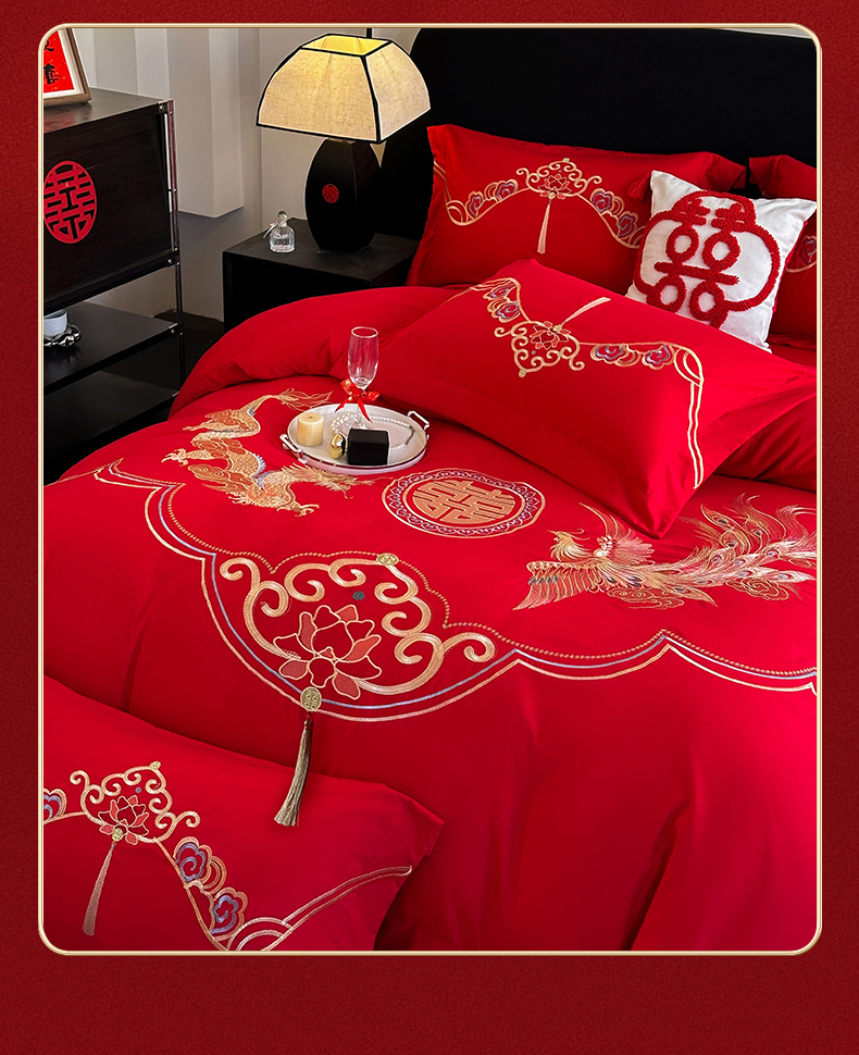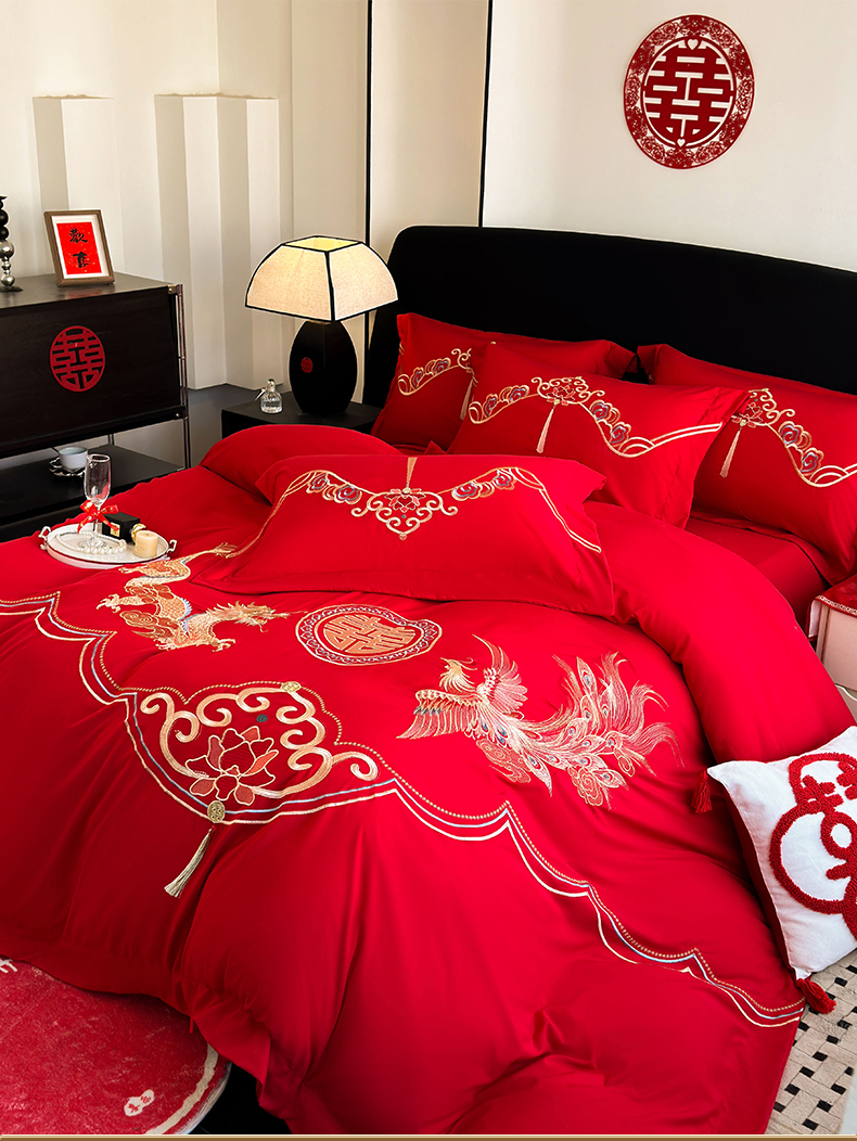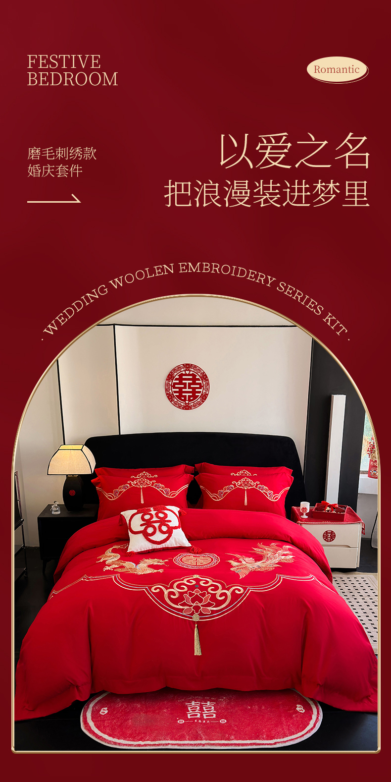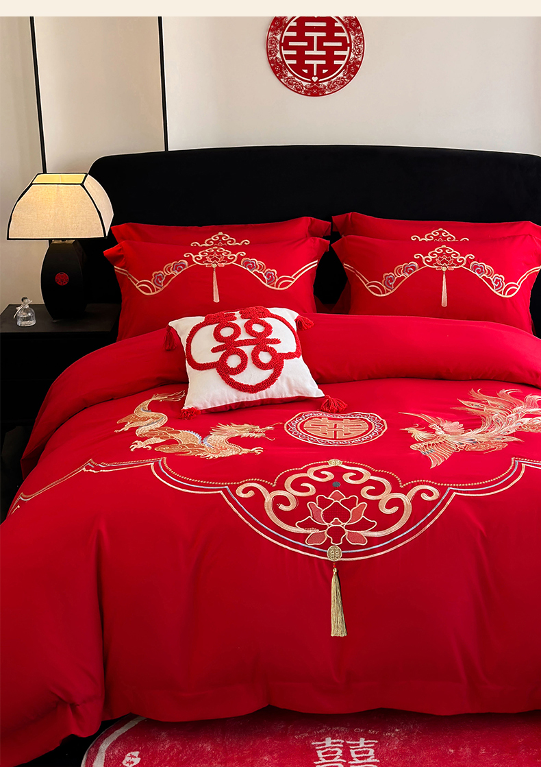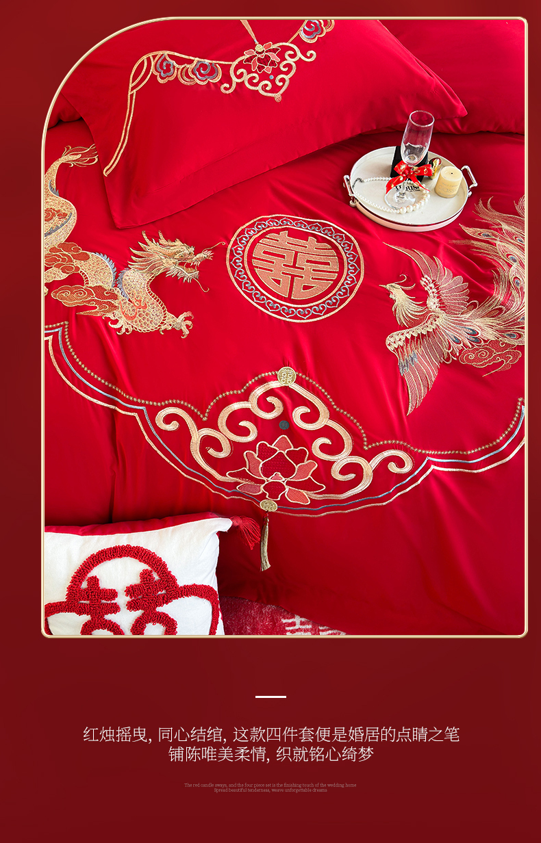 豪美鑫 2025新款婚庆磨毛刺绣四件套 龙凤如意