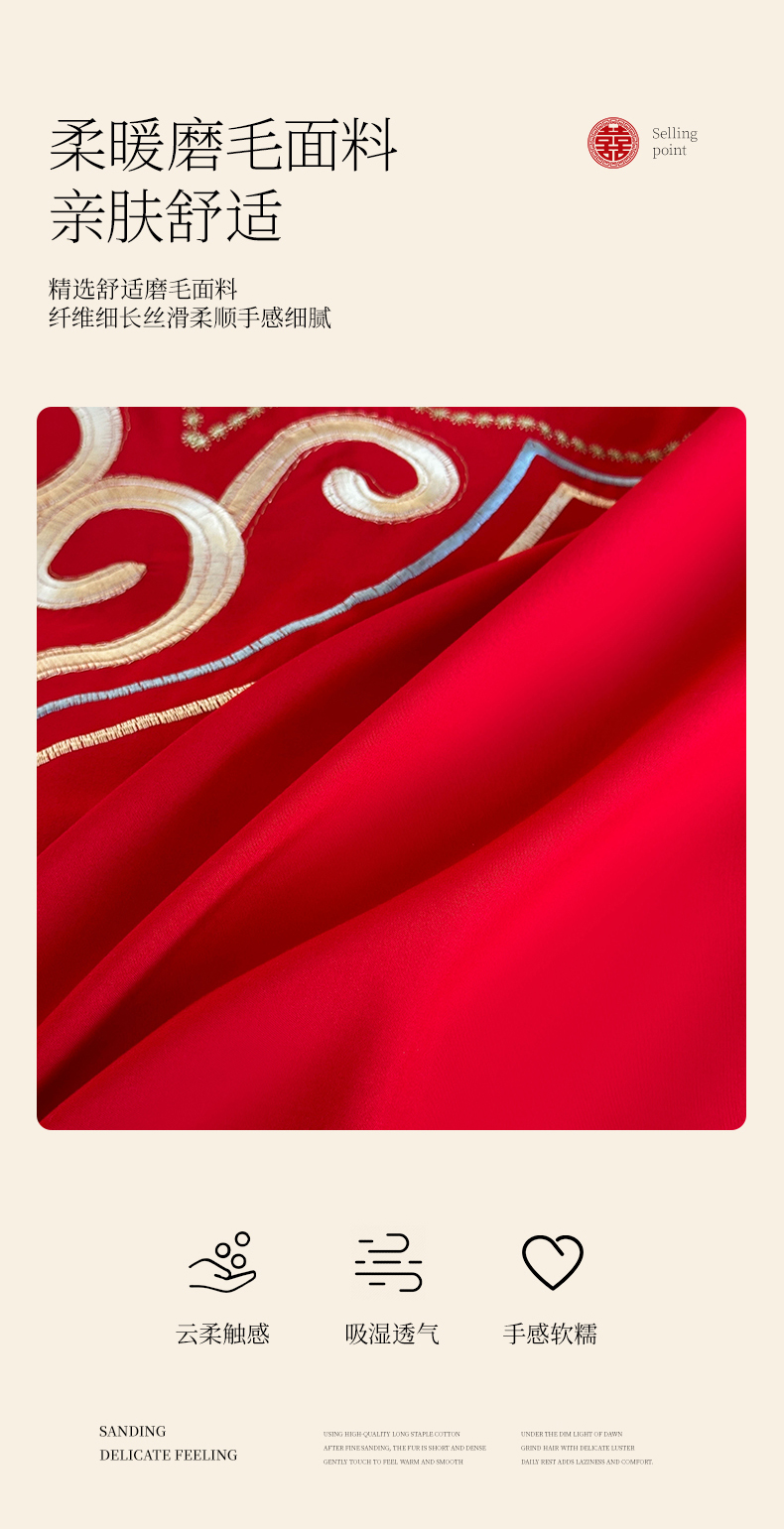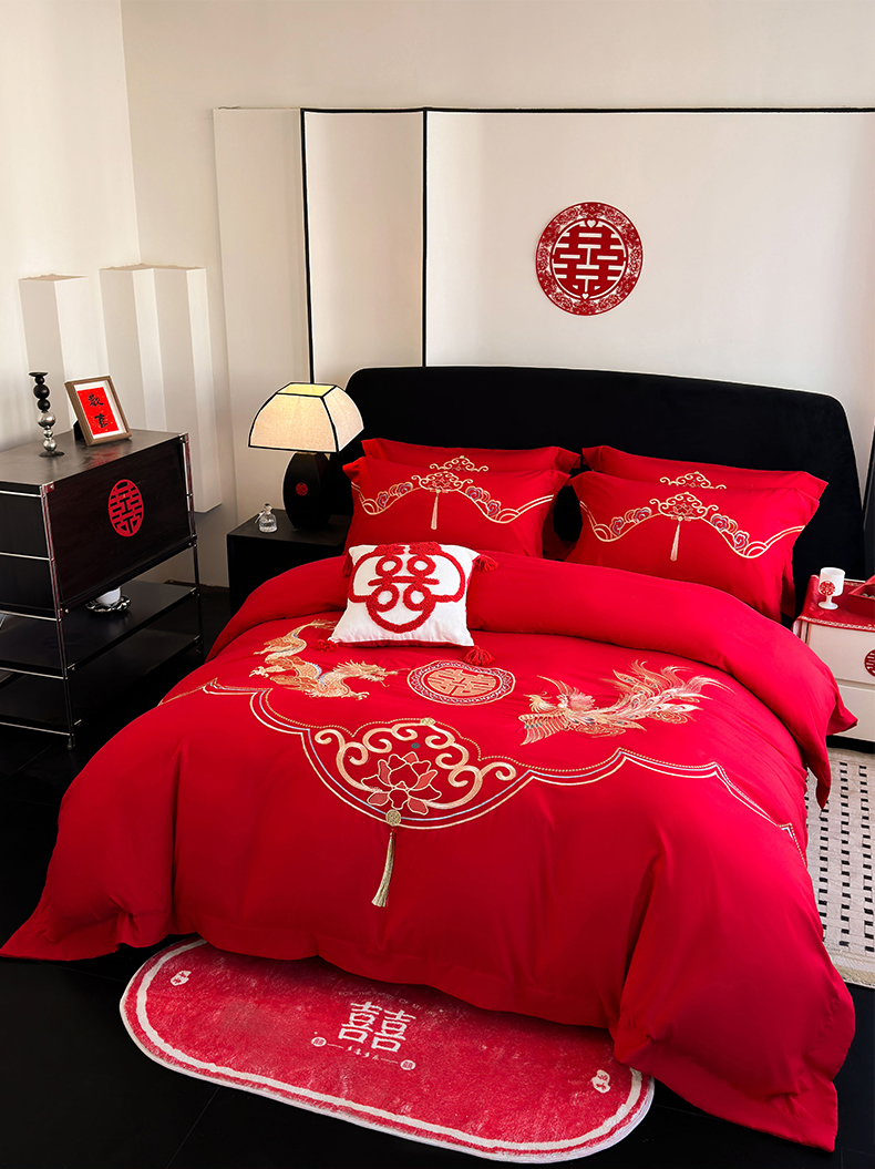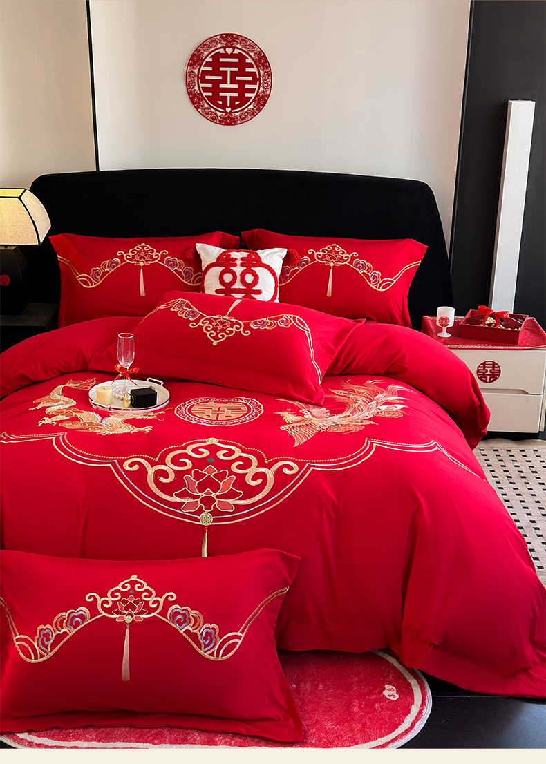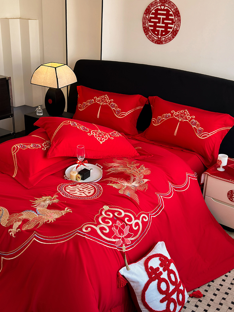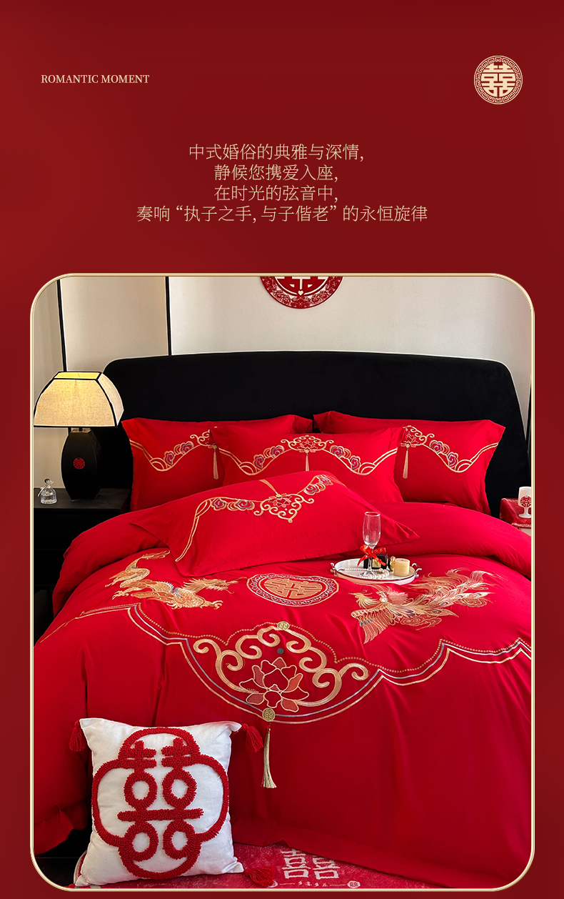 豪美鑫 2025新款婚庆磨毛刺绣四件套 龙凤如意