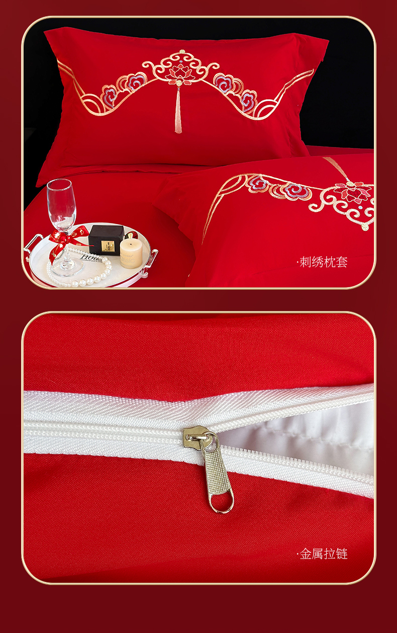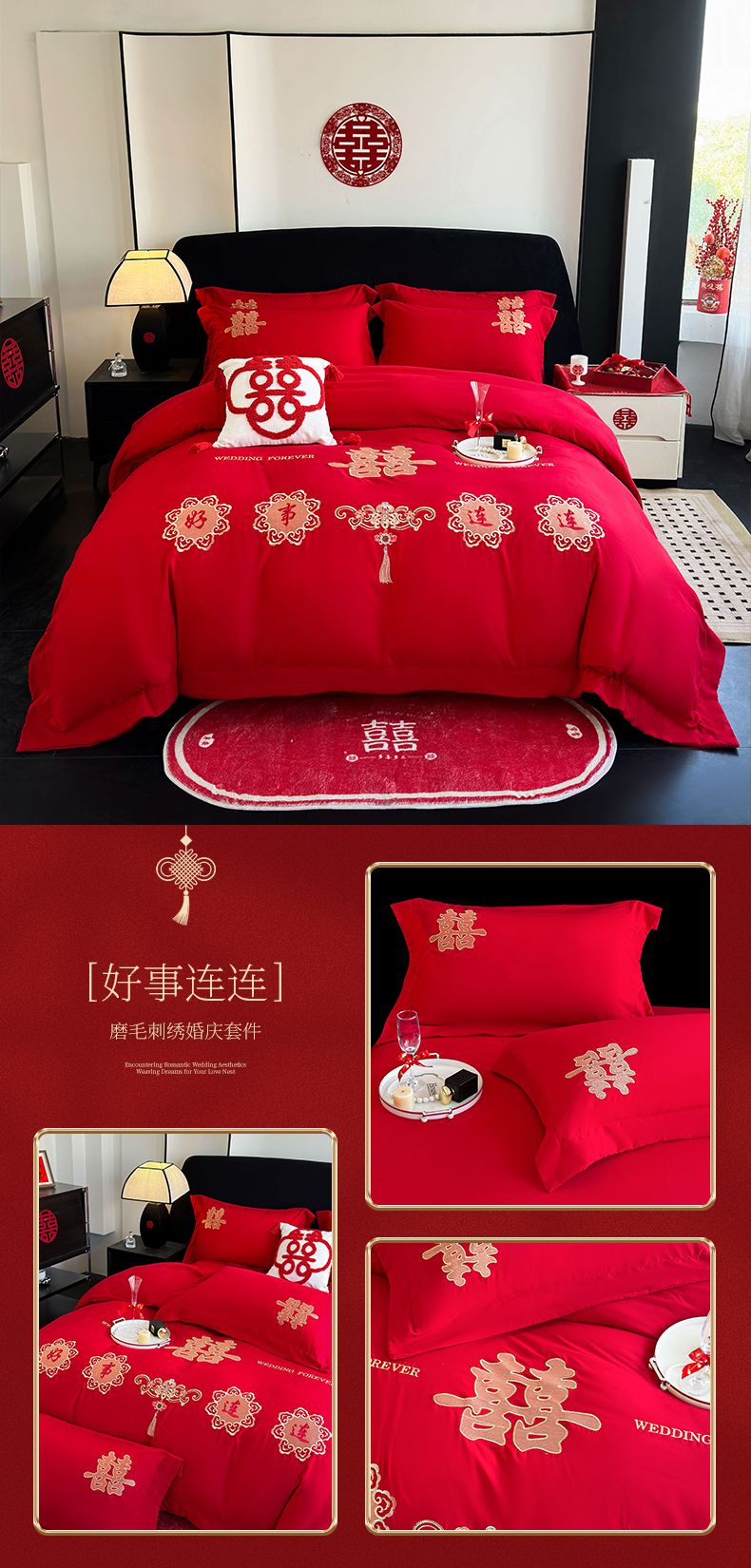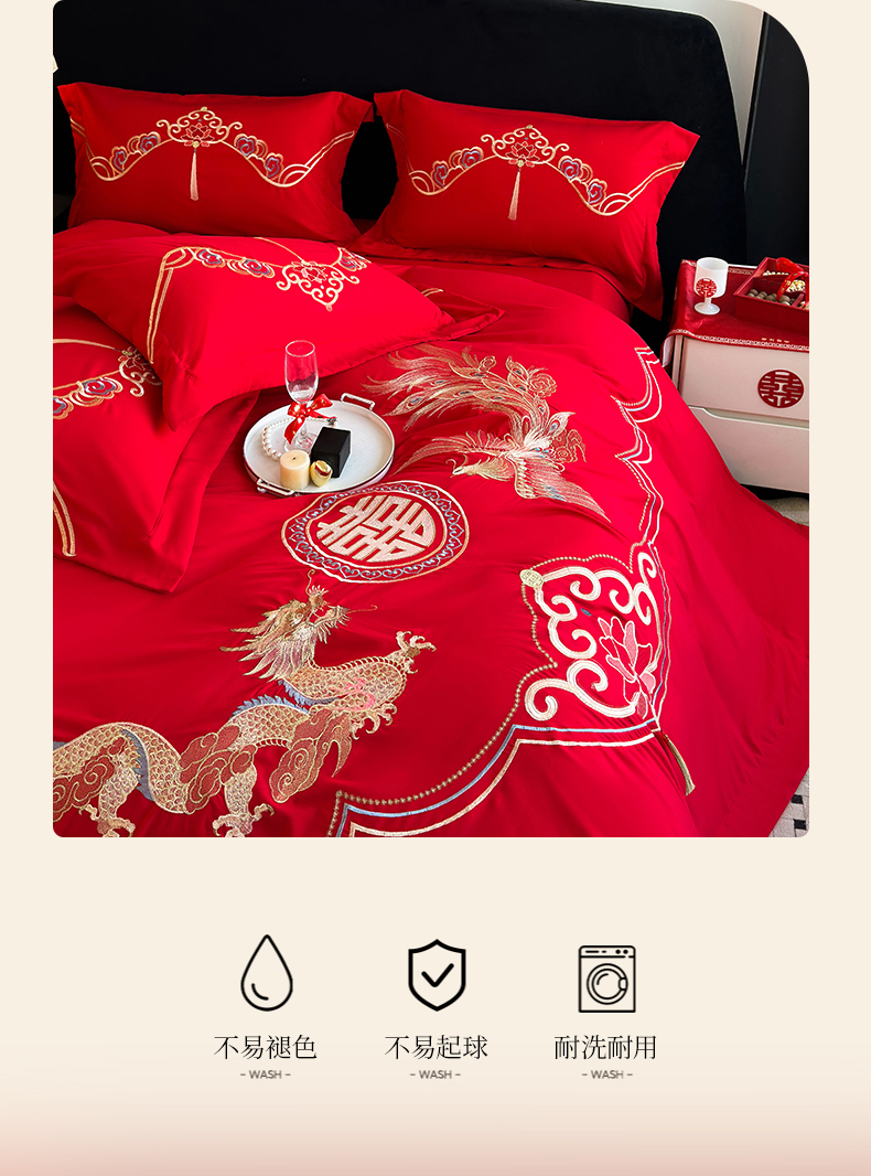 商品名称:豪美鑫 2025新款婚庆磨毛刺绣四件套 龙凤如意