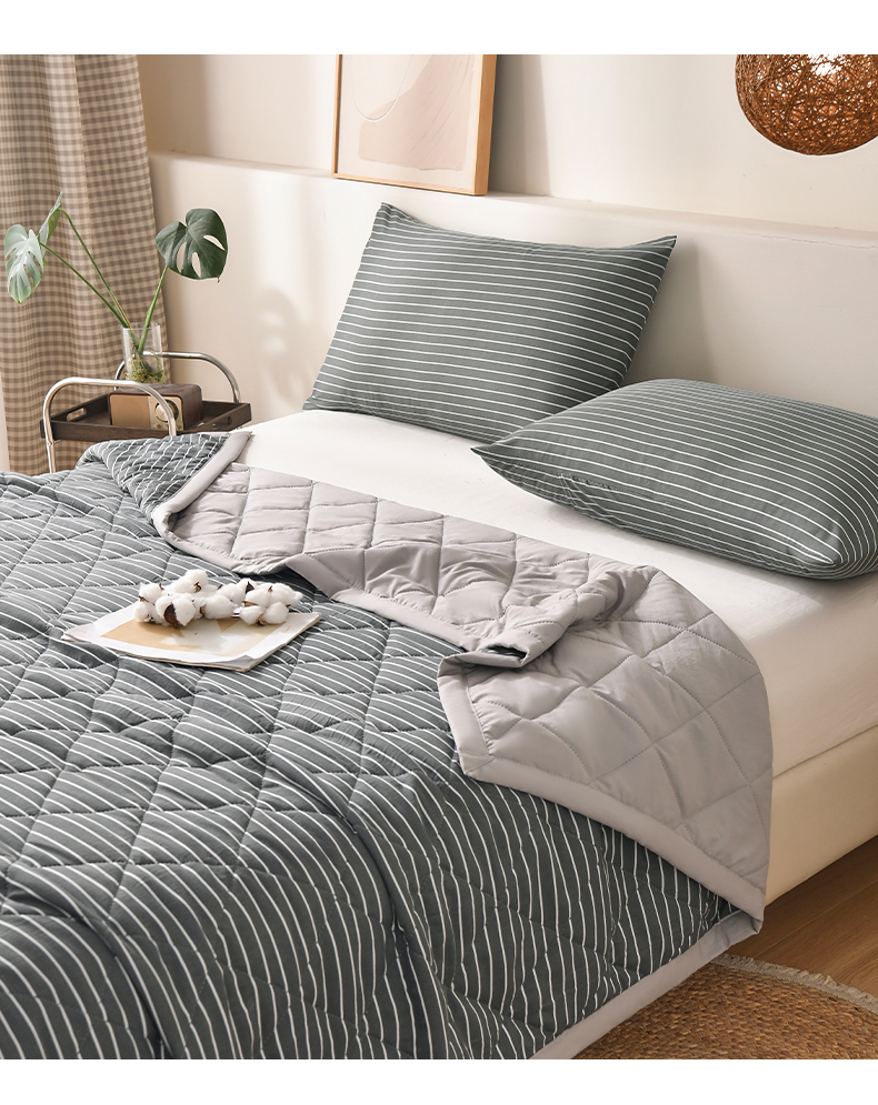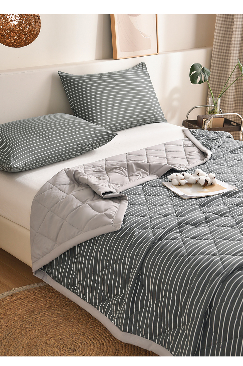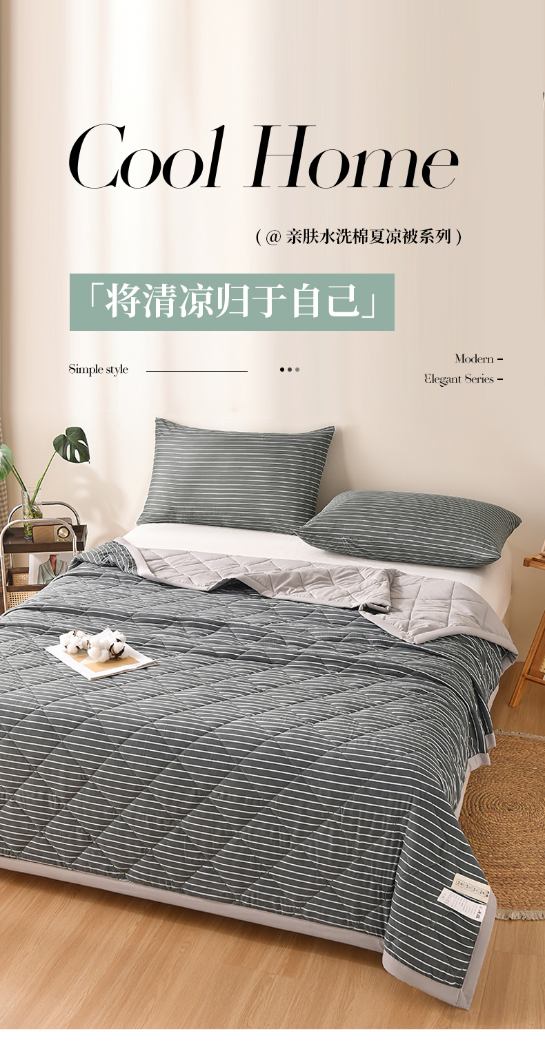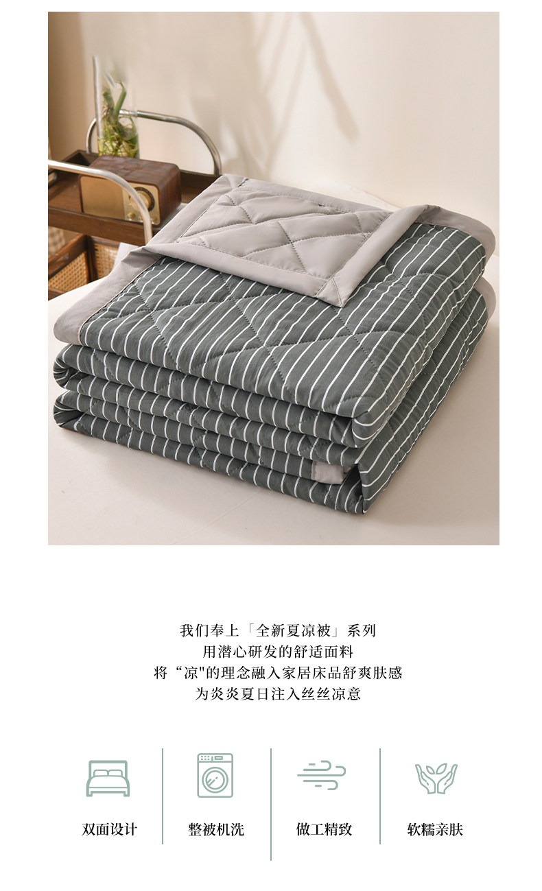 培童 2025水洗棉夏被夏凉被空调被超声波压花礼品直播引流爆款 黑条格