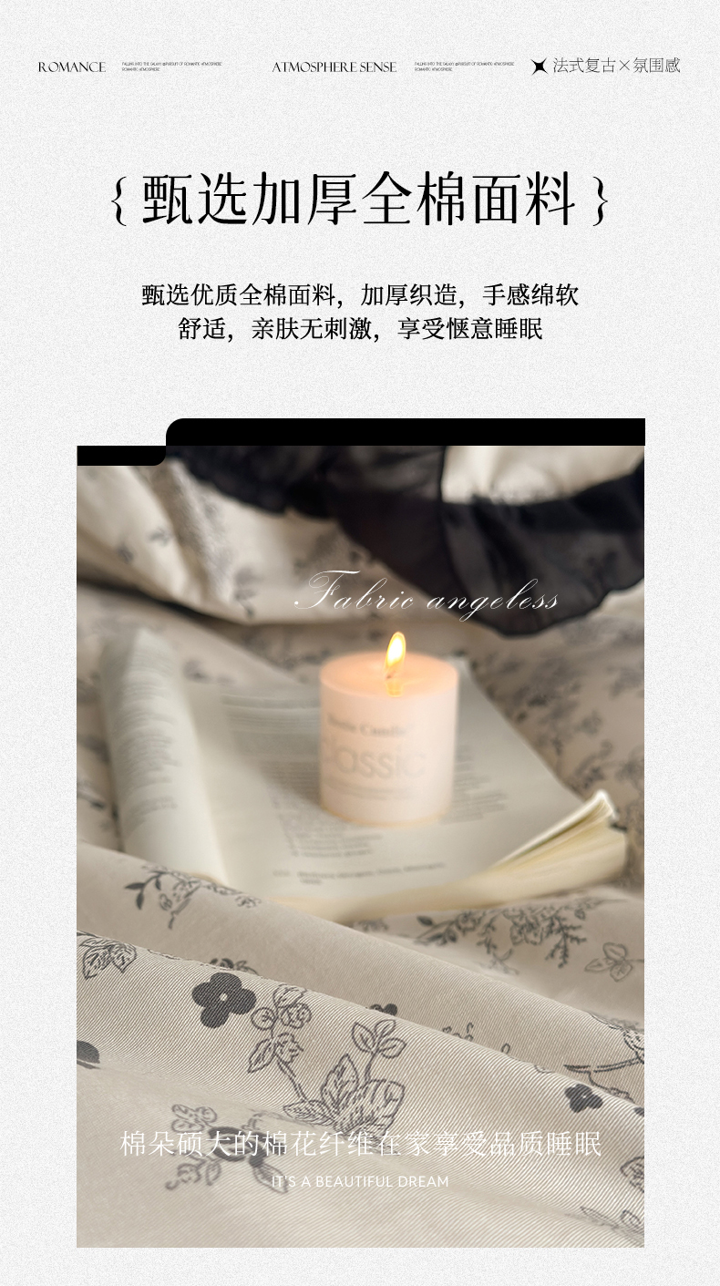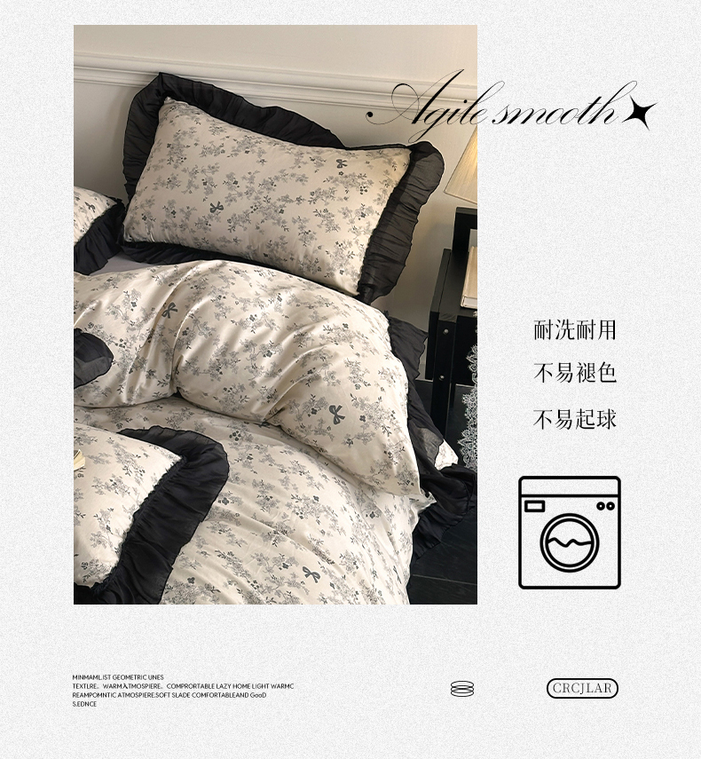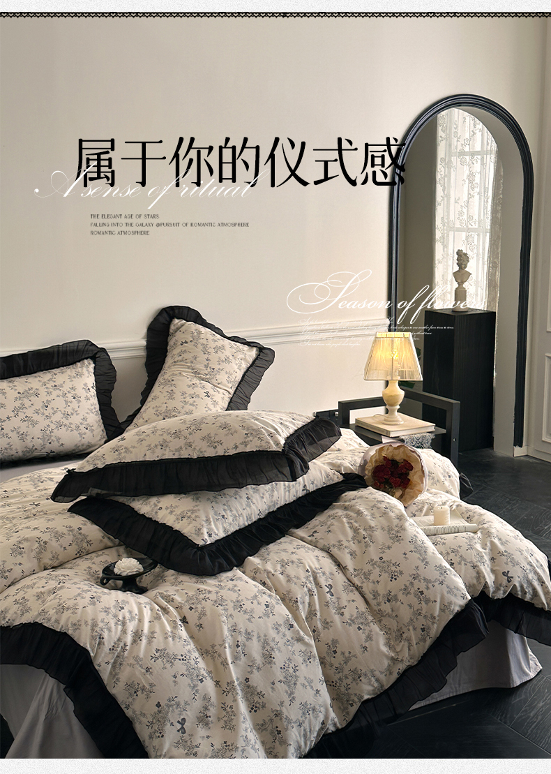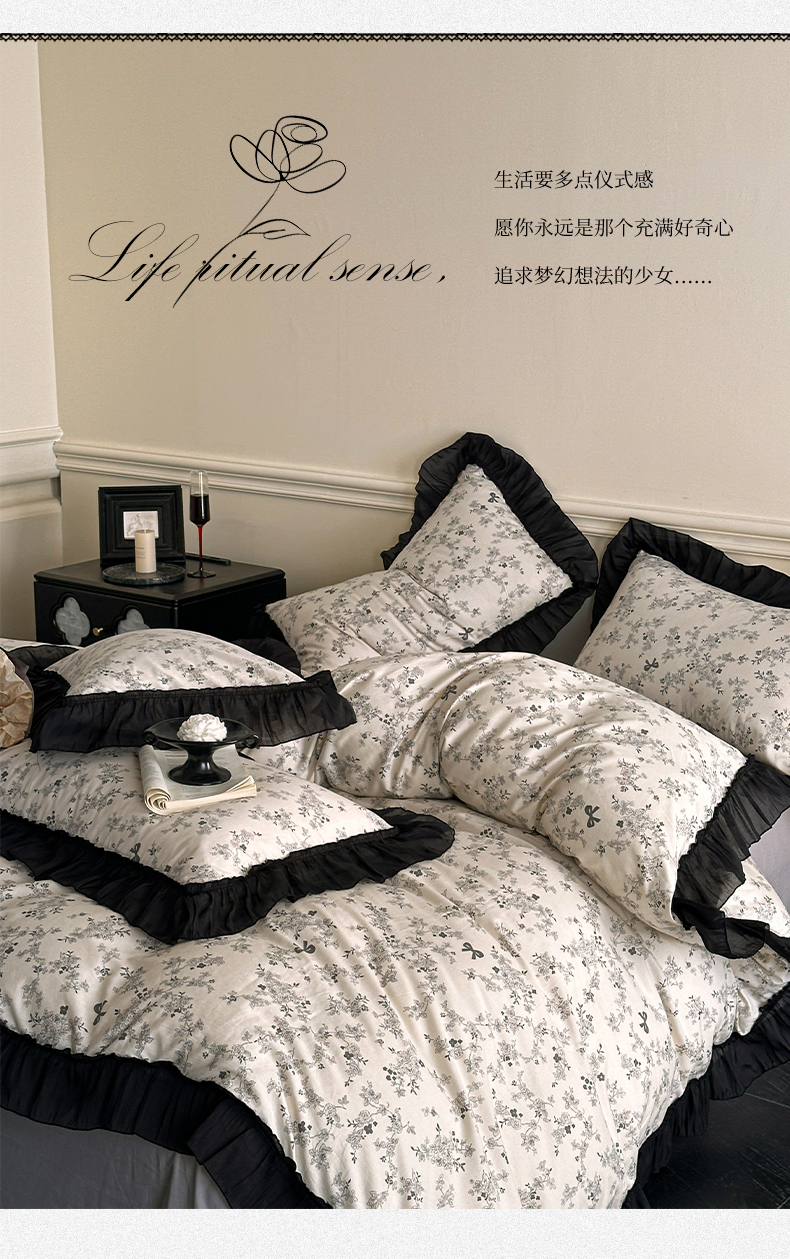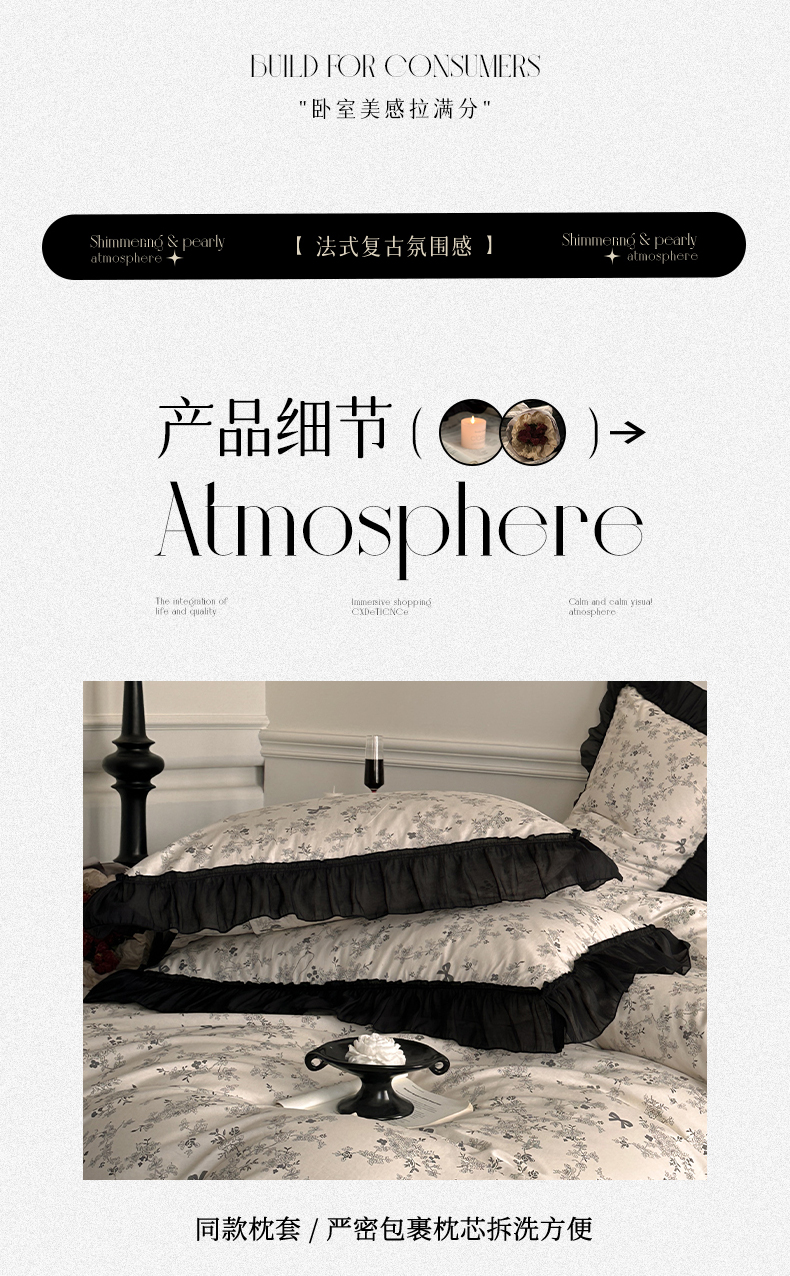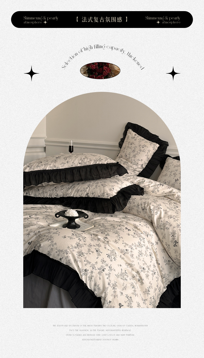 当前位置: 91家纺网 > 商品网购 > 床品套件 > 四件套 > 全棉普通四件套 > 蓝邻家纺 2025年新款全棉法式复古真丝绉花边四件套系列 忘忧