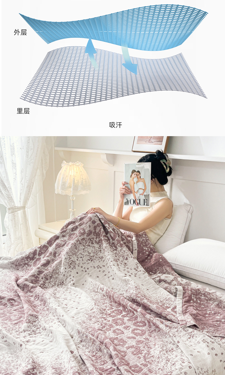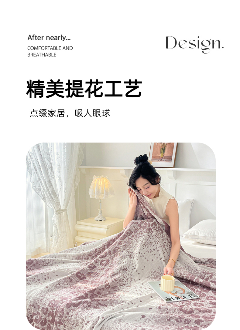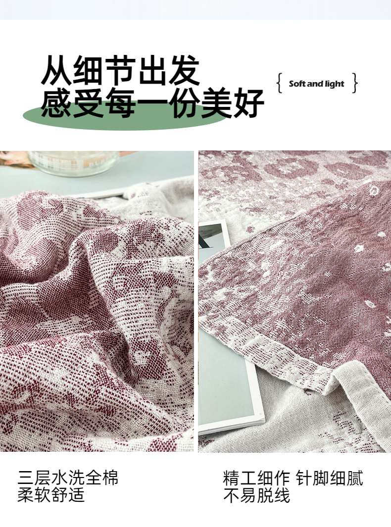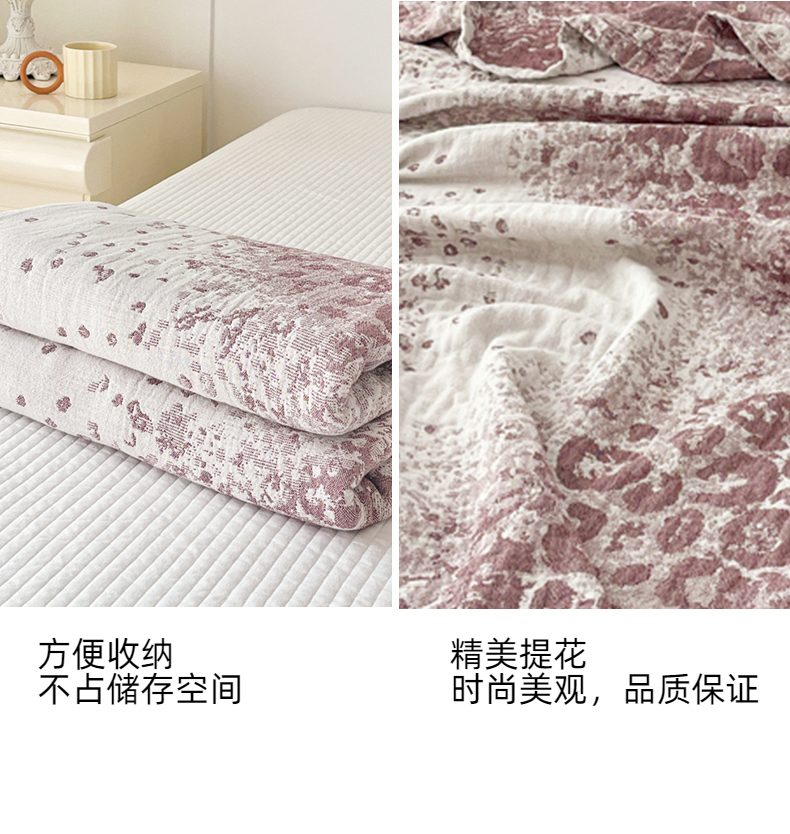商品名称:悦然毛巾被 2025新款三层水洗全棉毛巾被 豹纹酒红