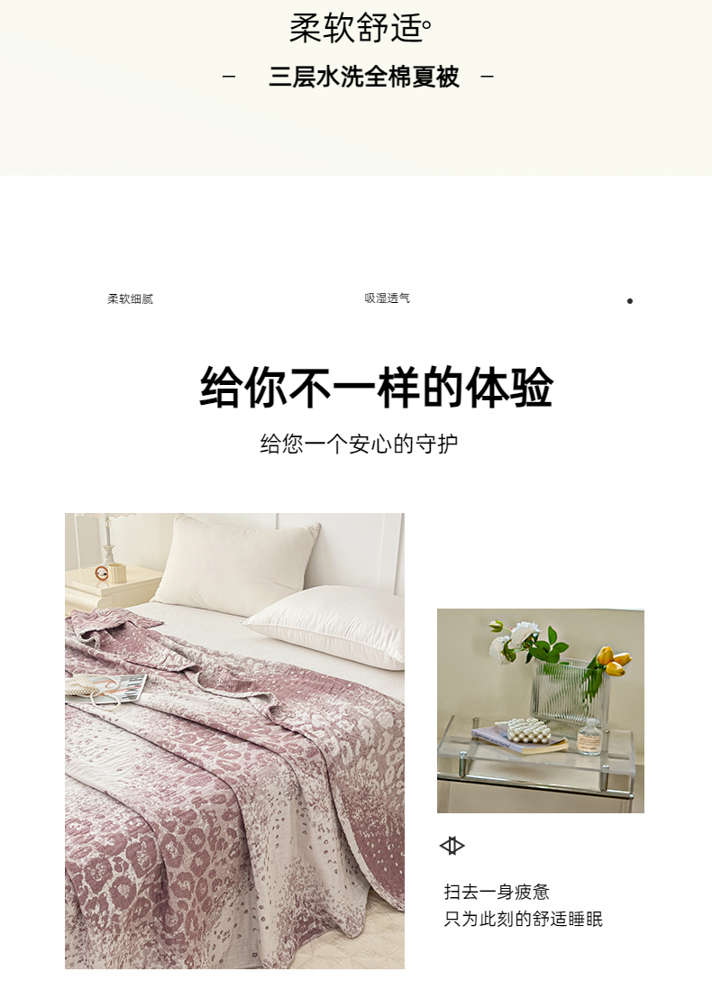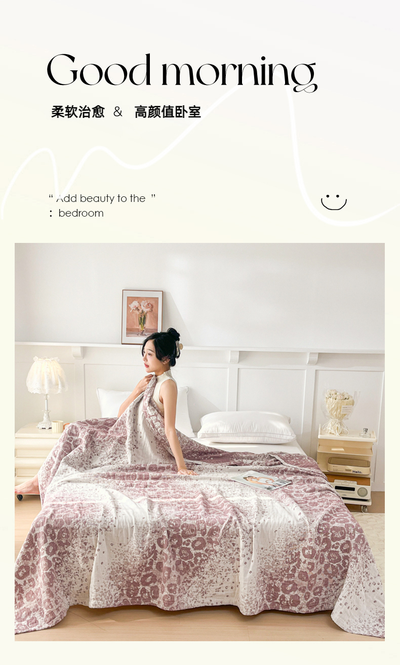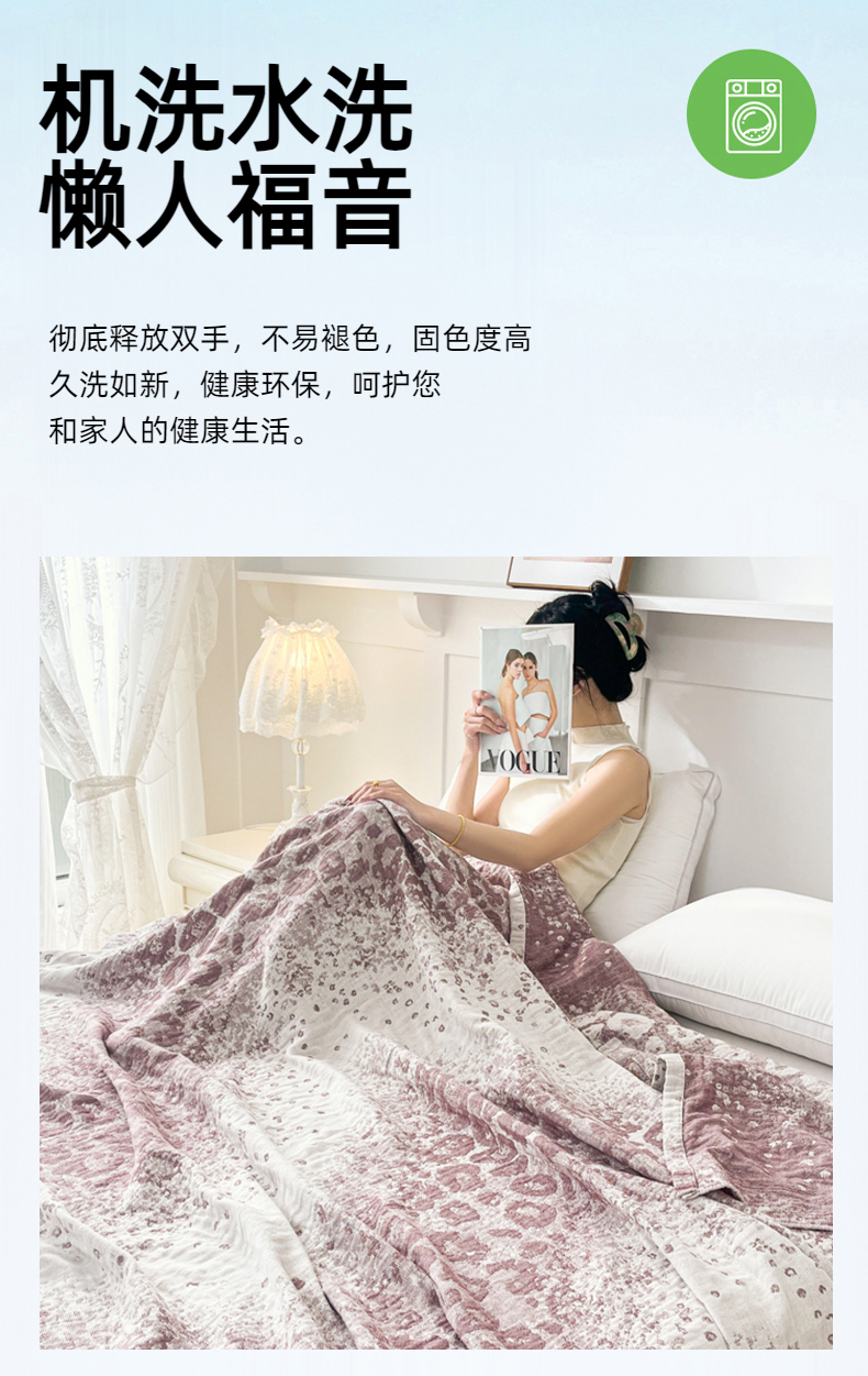 商品名称:悦然毛巾被 2025新款三层水洗全棉毛巾被 豹纹酒红