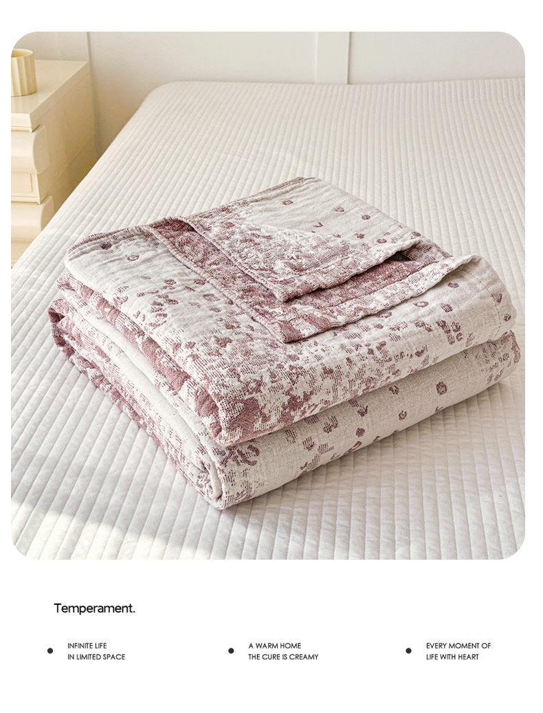 悦然毛巾被 2025新款三层水洗全棉毛巾被 豹纹酒红