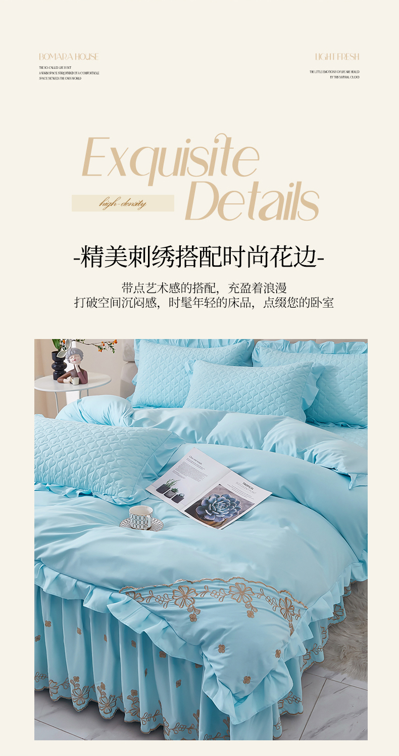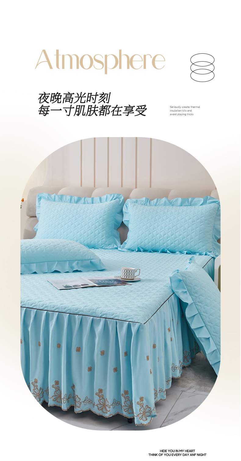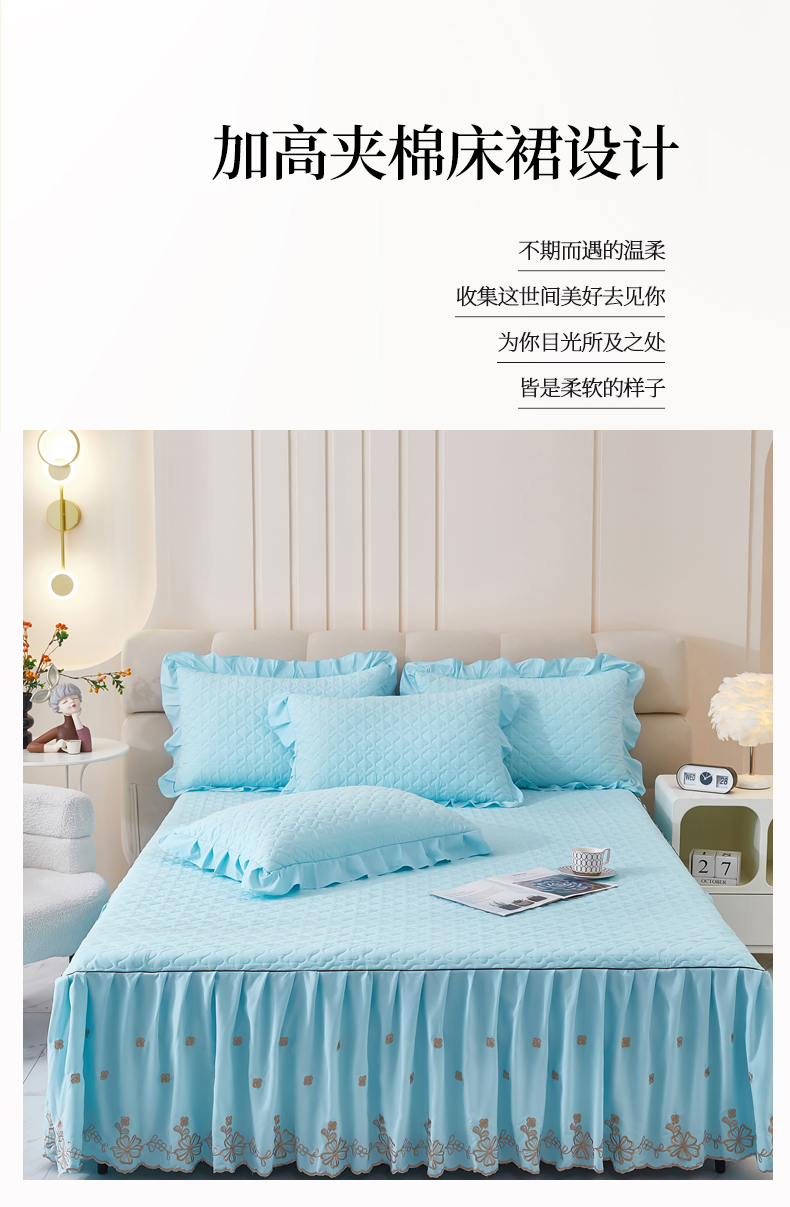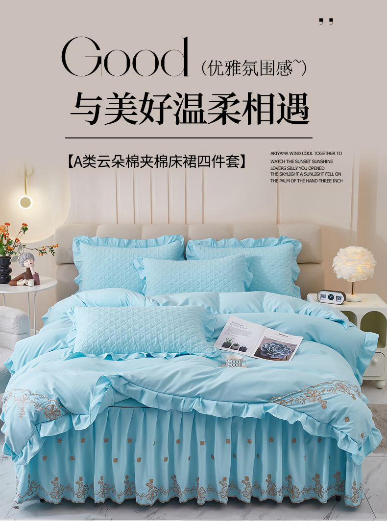 当前位置: 91家纺网 > 商品网购 > 床品套件 > 四件套 > 其它四件套 > 家之硕家纺 2025新款云朵棉刺绣床裙四件套 浅蓝