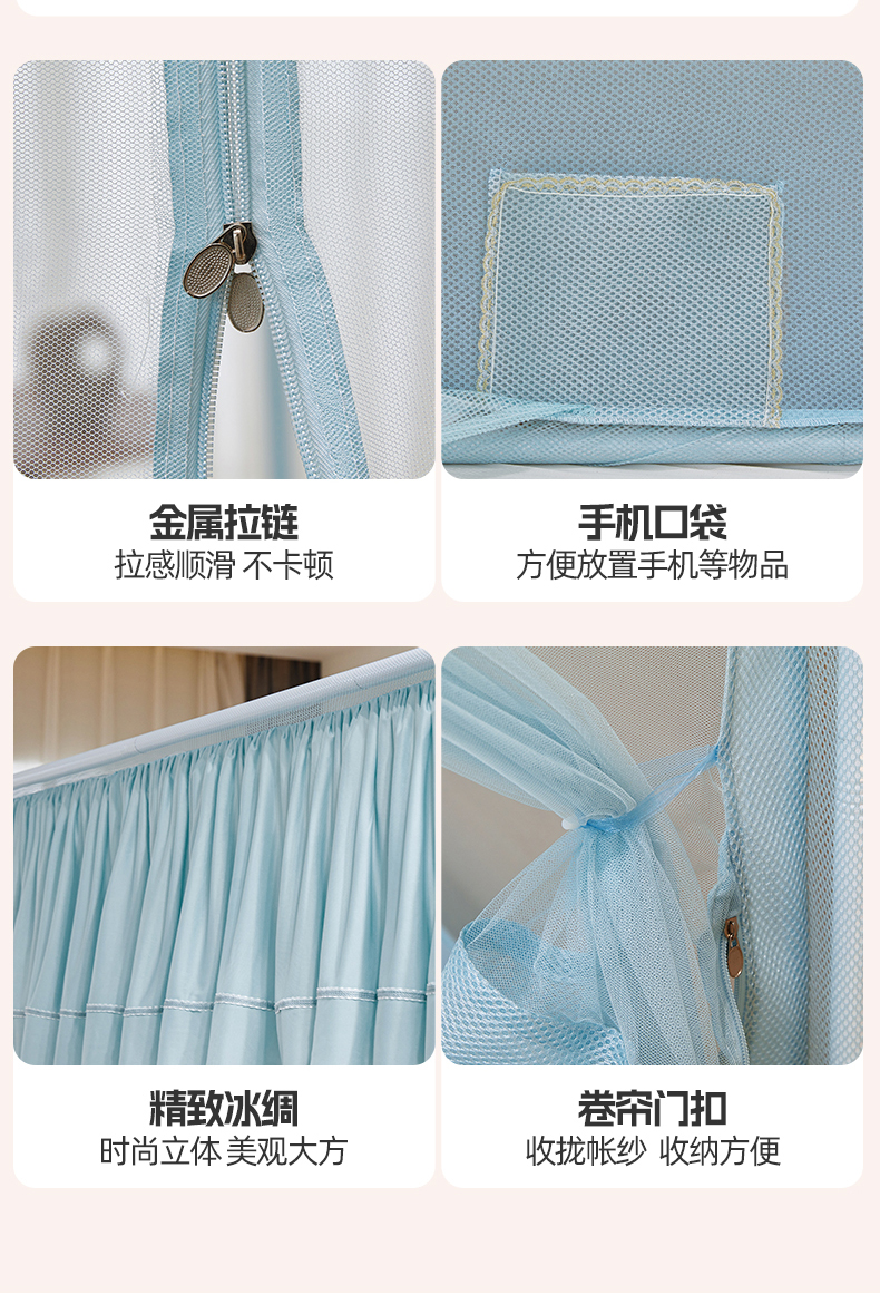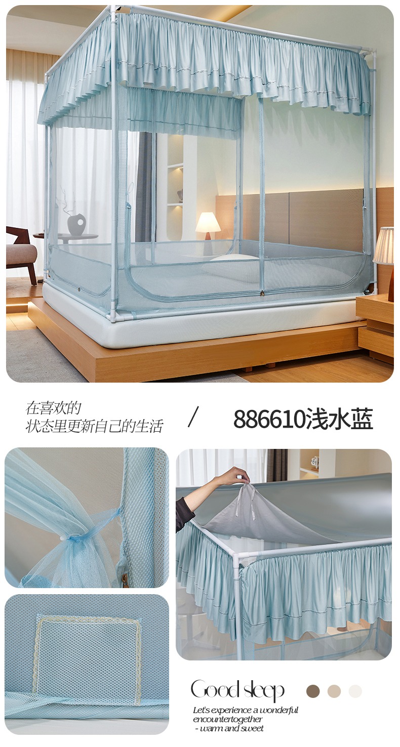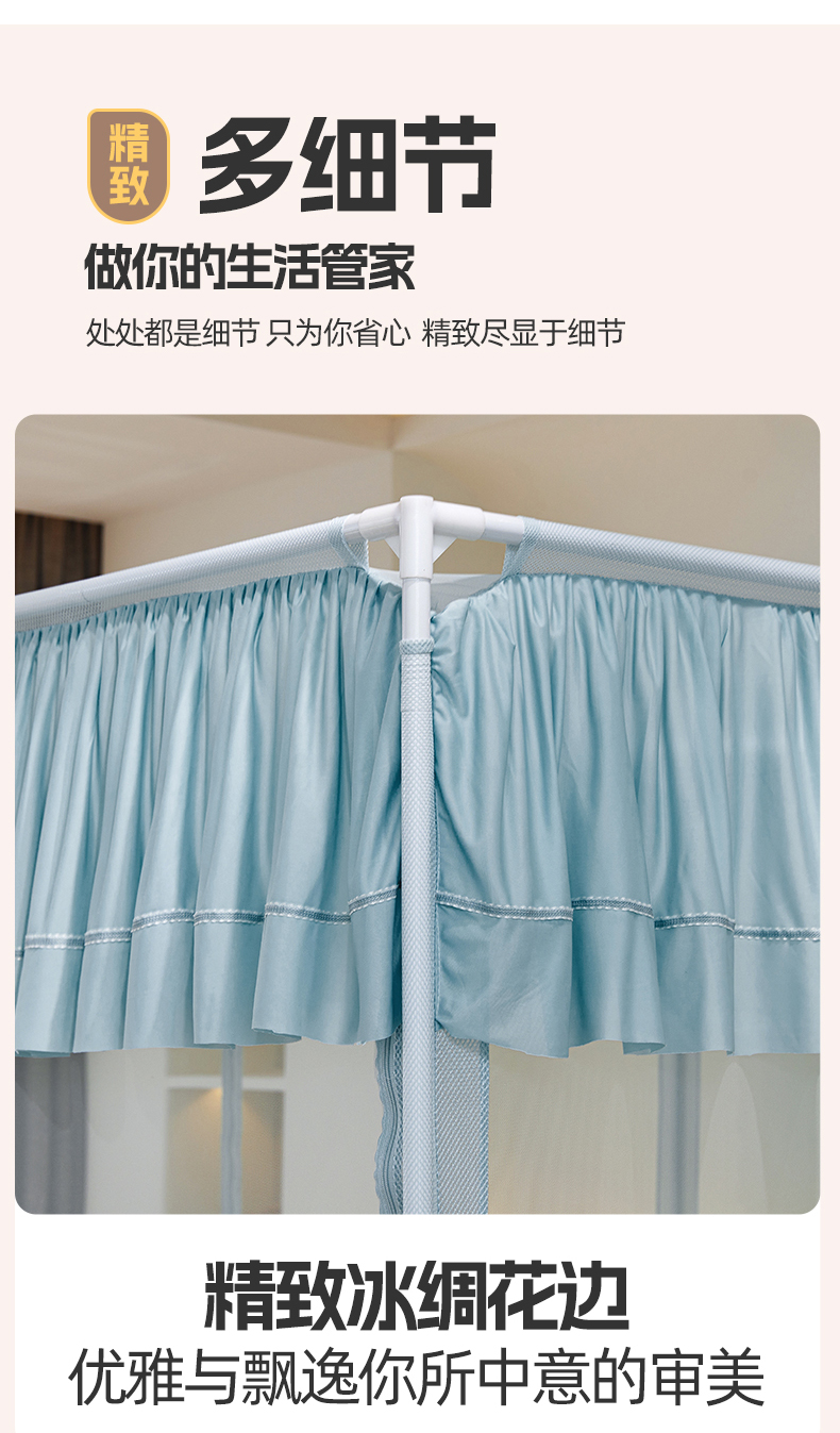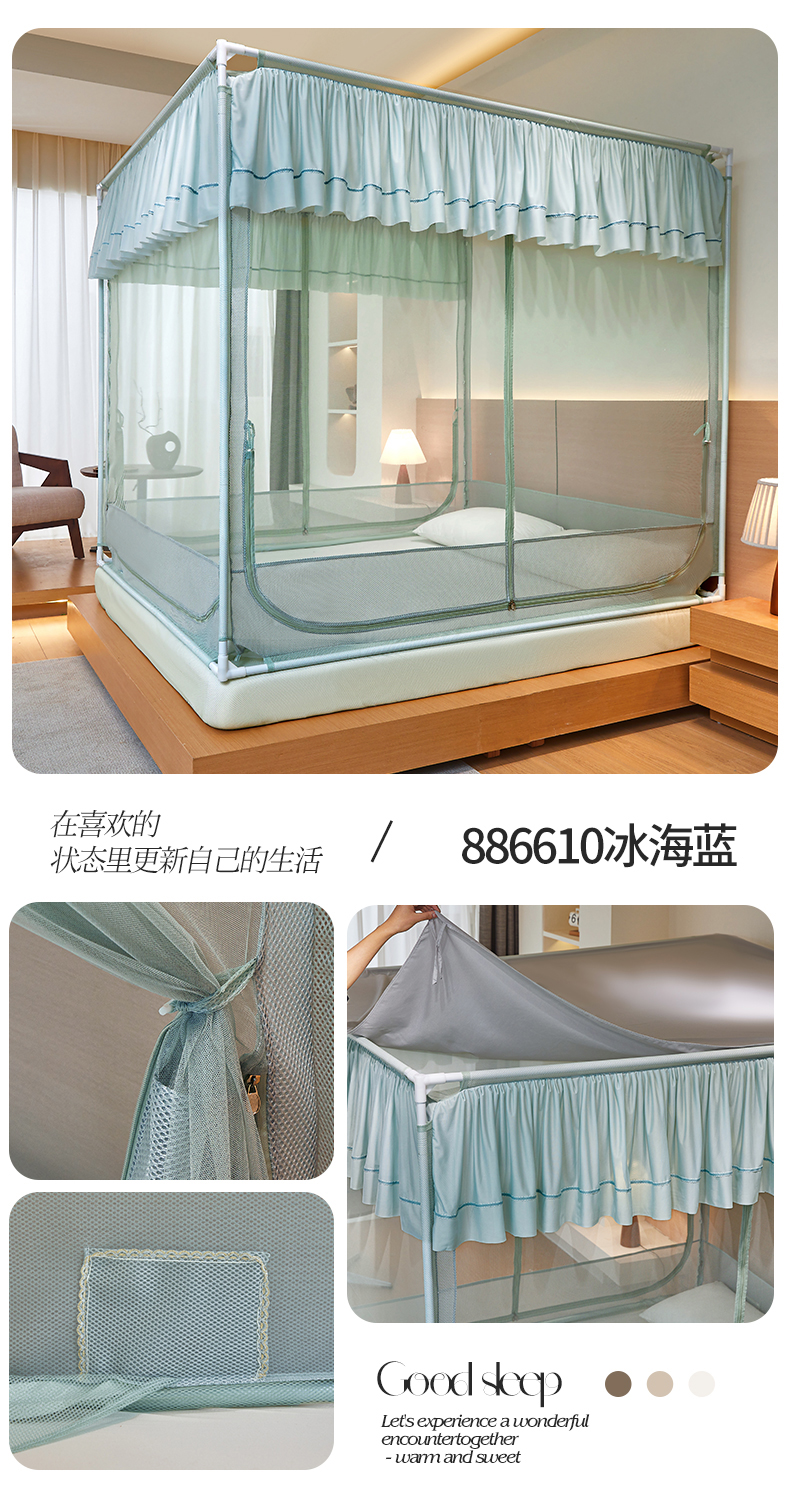 (总)夏彩 2025新款浪漫唯美T+U床笠式坐床外穿防摔蚊帐-88610,886610冰海蓝,886610极光白,886610浅粉玉,886610浅水蓝,886610蔷薇粉,886610杏仁黄,886610雅士灰