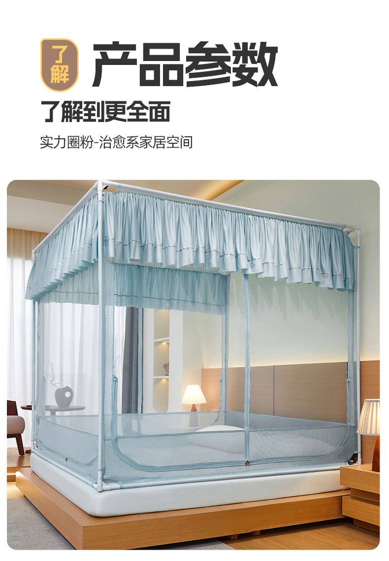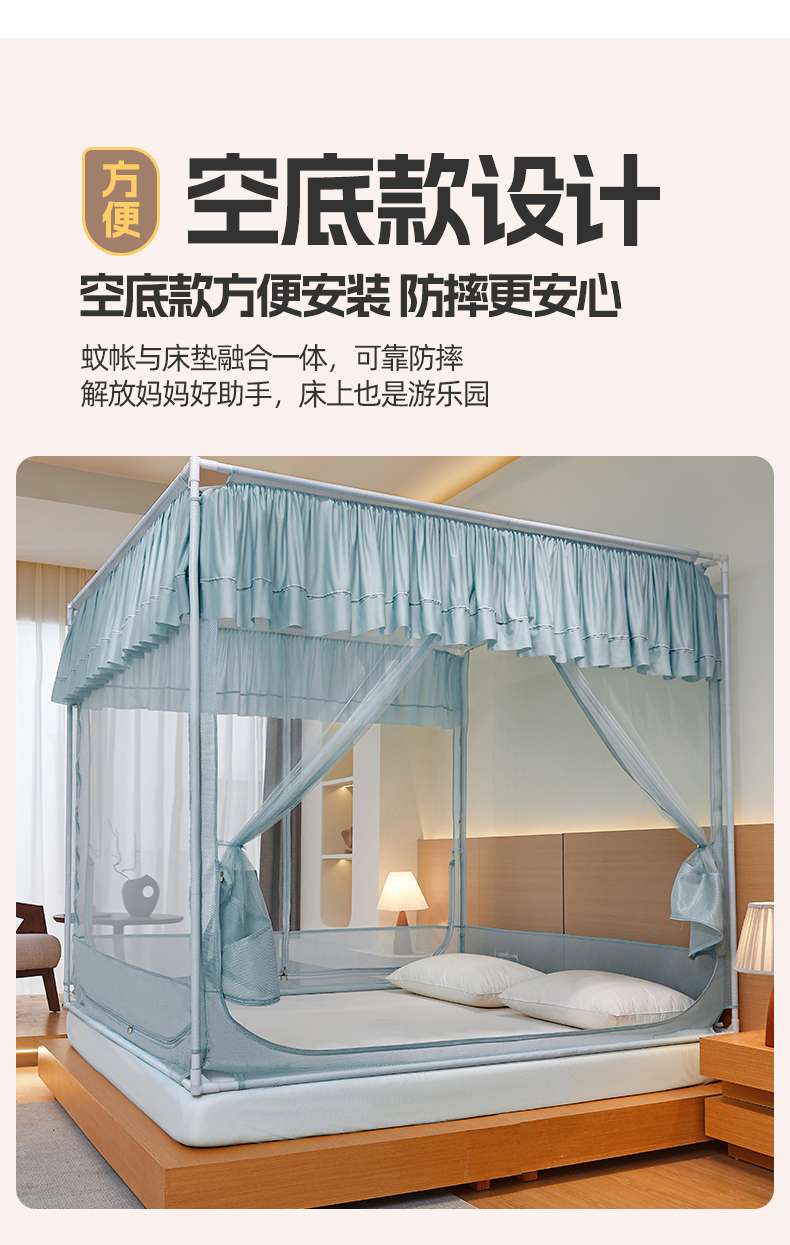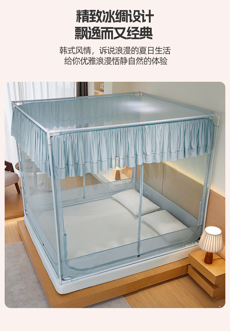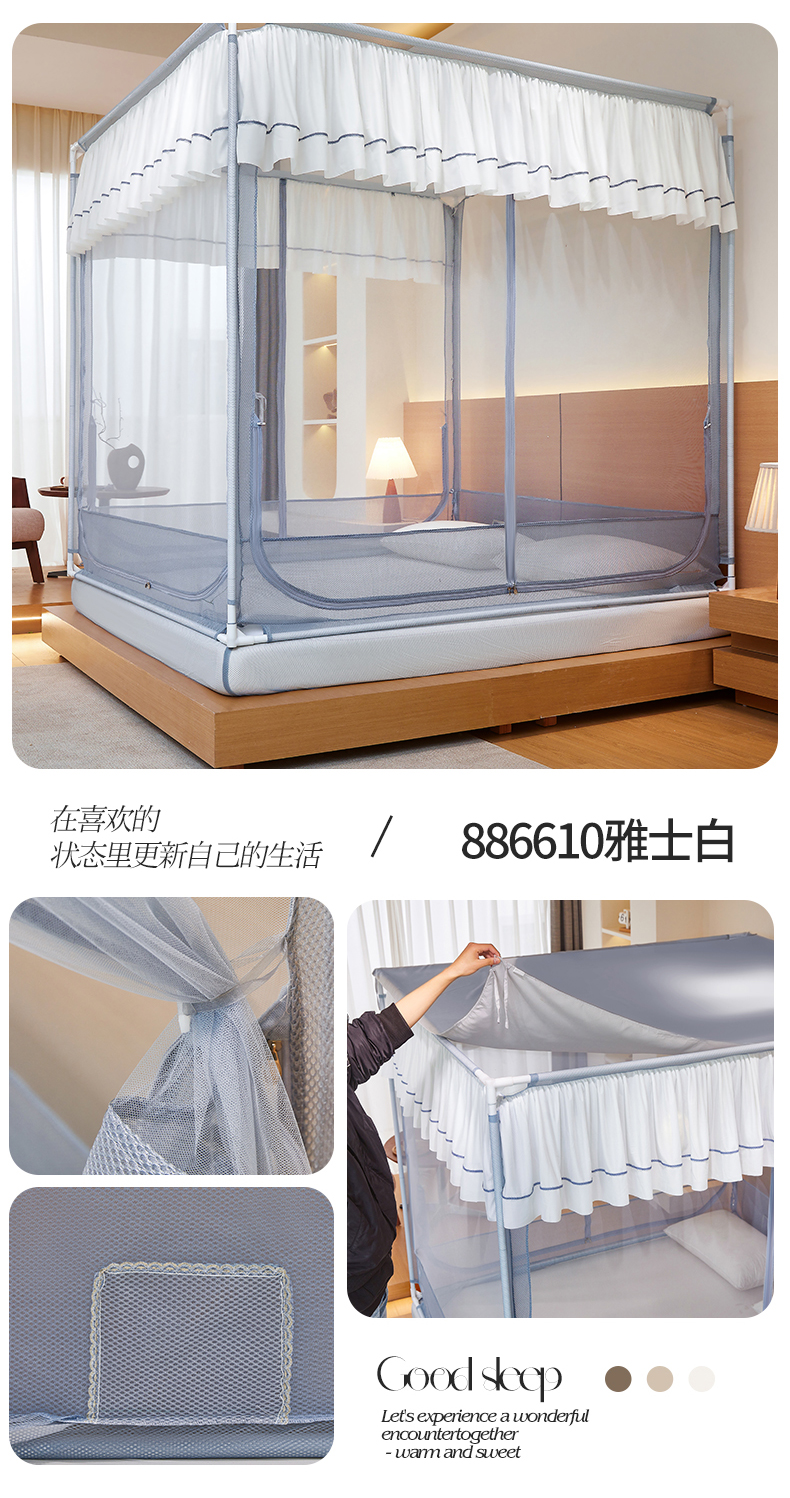 (总)夏彩 2025新款浪漫唯美T+U床笠式坐床外穿防摔蚊帐-88610,886610冰海蓝,886610极光白,886610浅粉玉,886610浅水蓝,886610蔷薇粉,886610杏仁黄,886610雅士灰