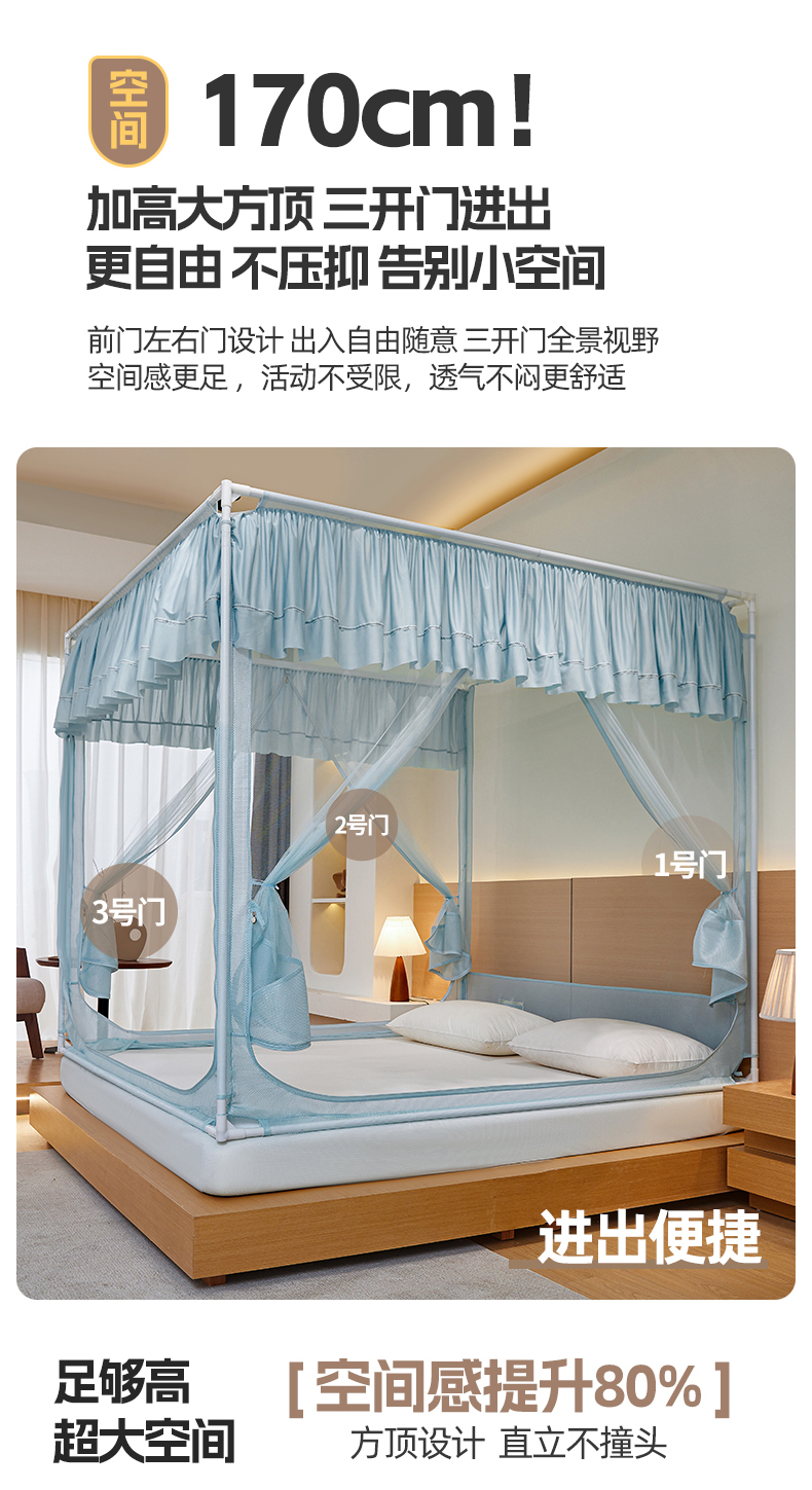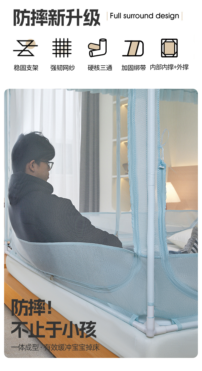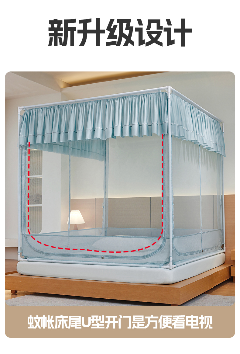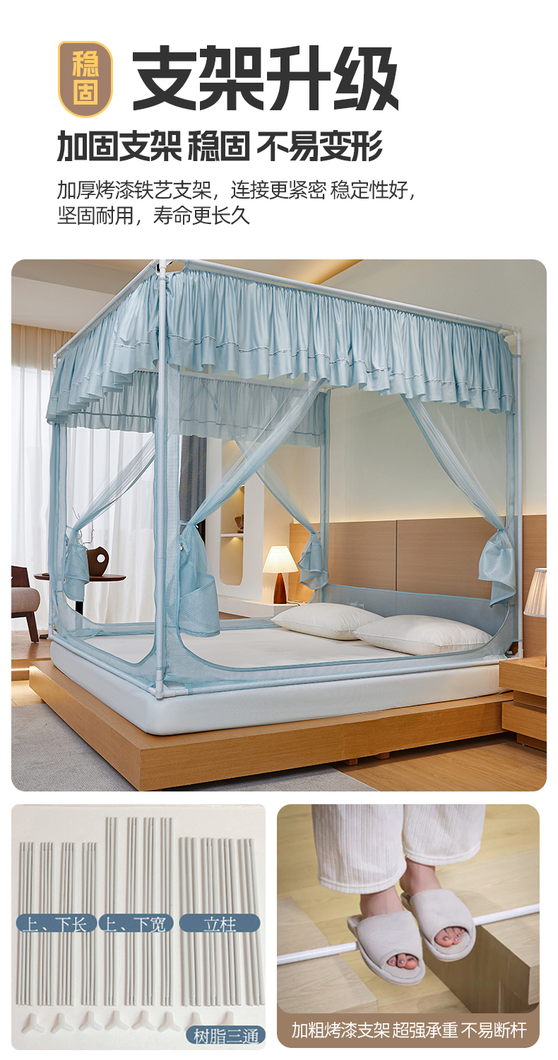 (总)夏彩 2025新款浪漫唯美T+U床笠式坐床外穿防摔蚊帐-88610,886610冰海蓝,886610极光白,886610浅粉玉,886610浅水蓝,886610蔷薇粉,886610杏仁黄,886610雅士灰