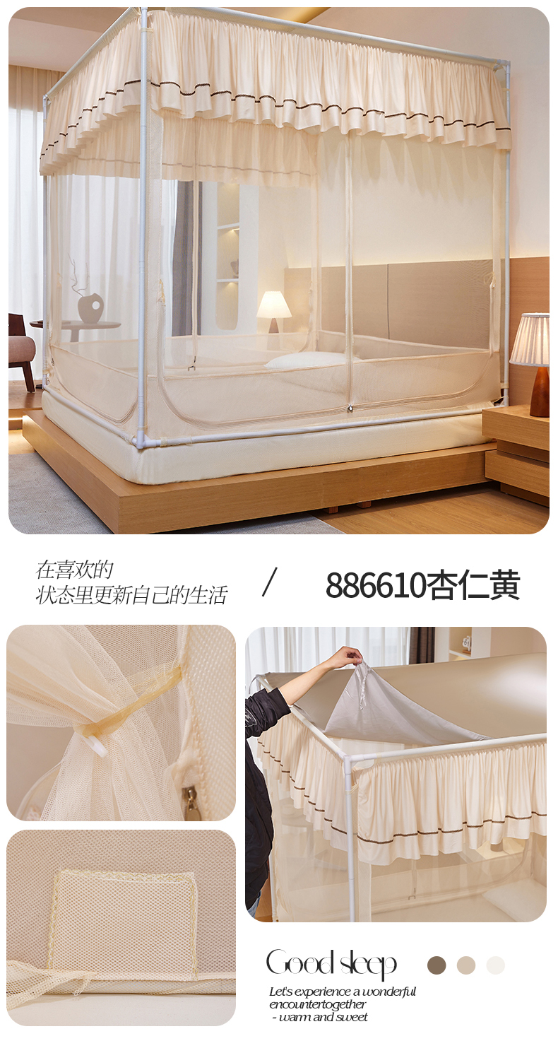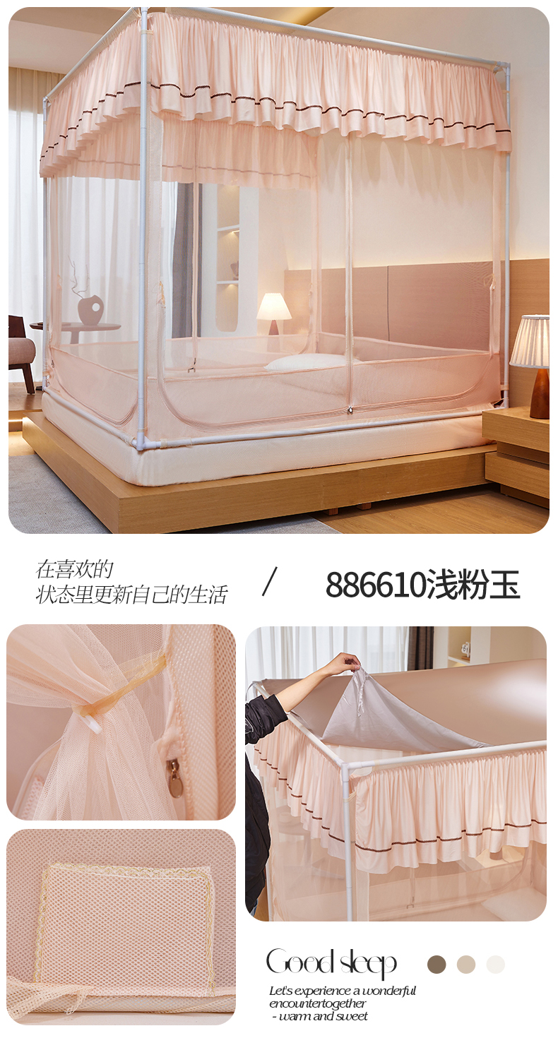 (总)夏彩 2025新款五面保暖坐床拉链四季款蚊帐-88631,绿雅灰,藕玉色,香槟色,保暖顶-香槟色,保暖顶-藕玉色,保暖顶-绿雅灰