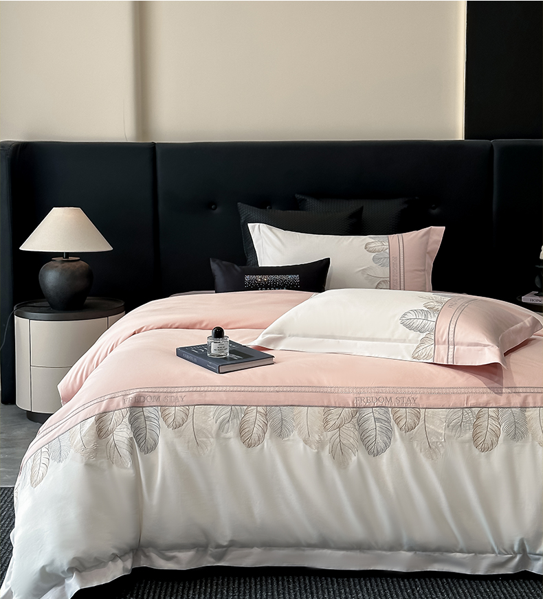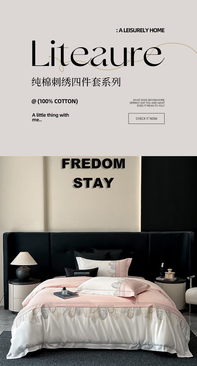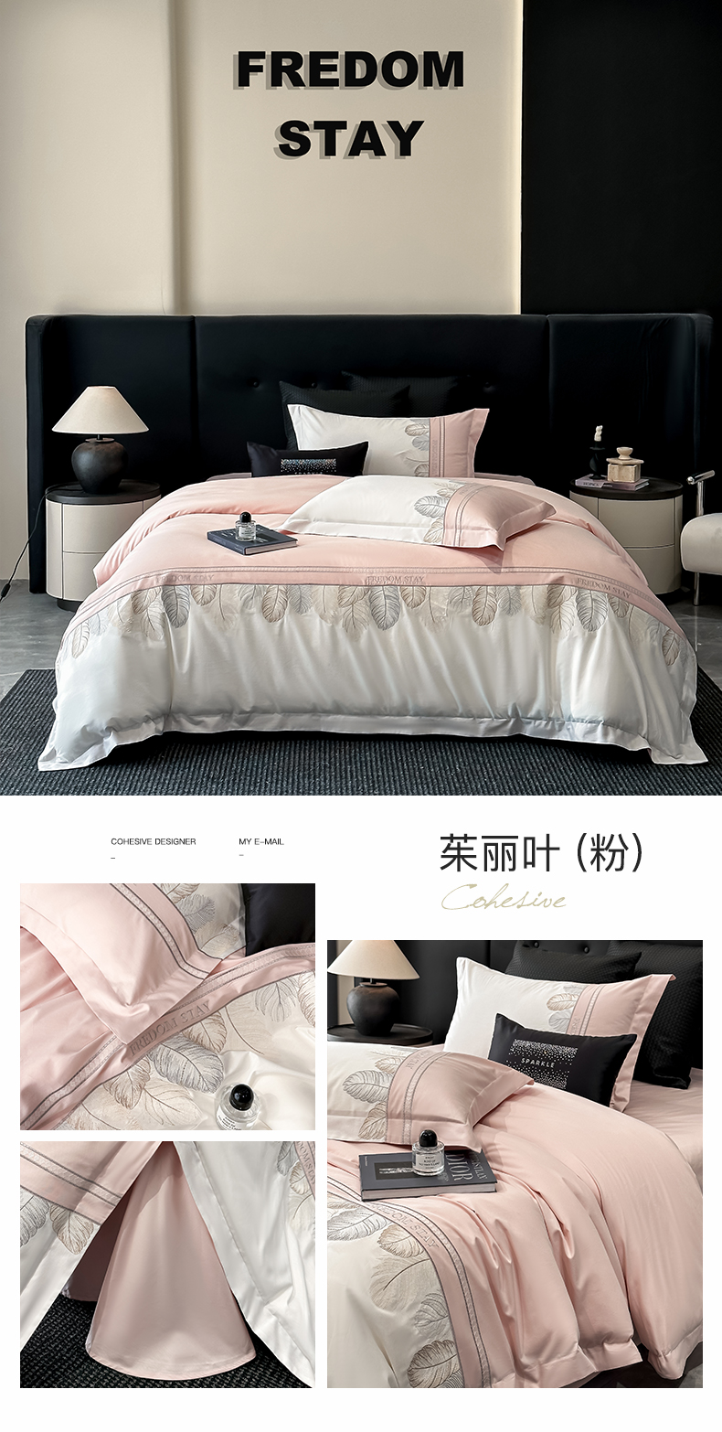 理想家家纺 2025新款亲肤舒适纯棉刺绣四件套-茱丽叶 茱丽叶-粉