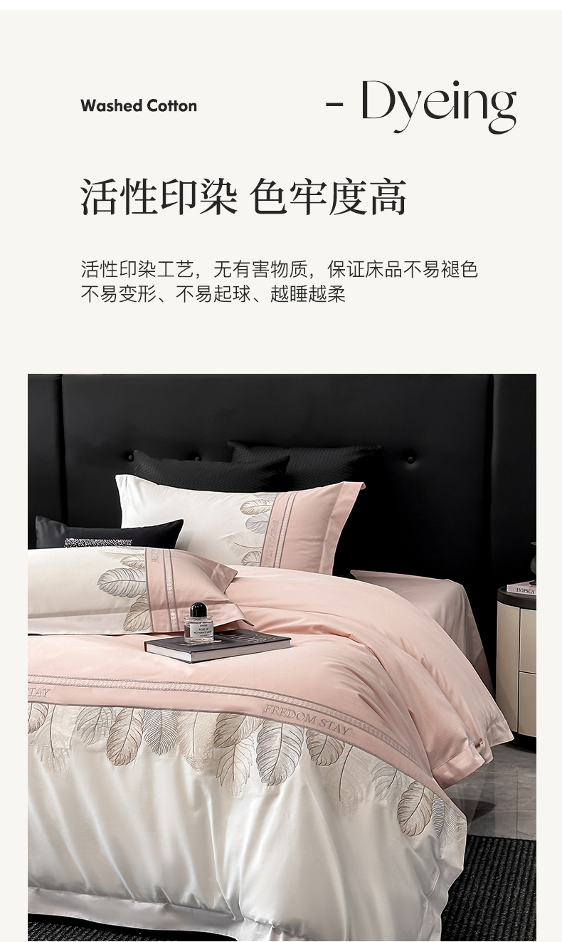 (总)理想家家纺 理想家家纺 2025新款云朵棉水洗真丝刺绣四件套,翩羽白,翩羽粉,翩羽蓝,翩羽绿,翩羽紫