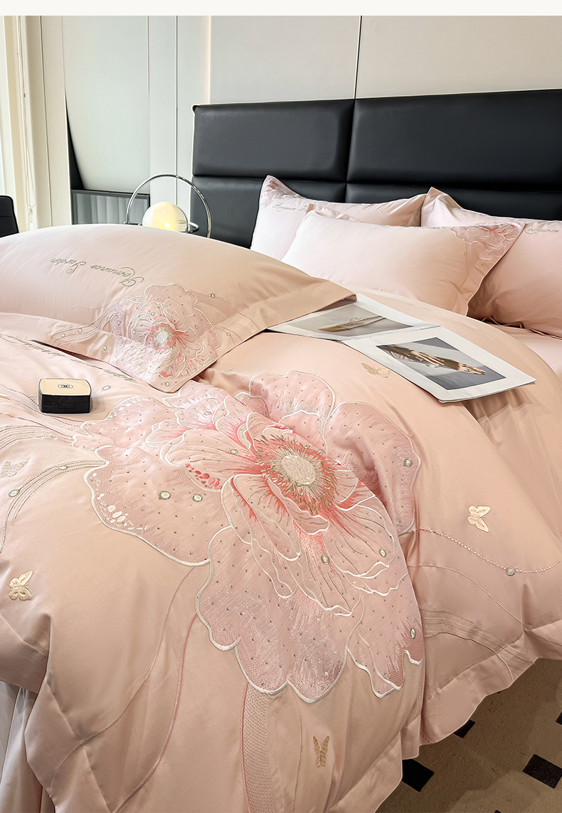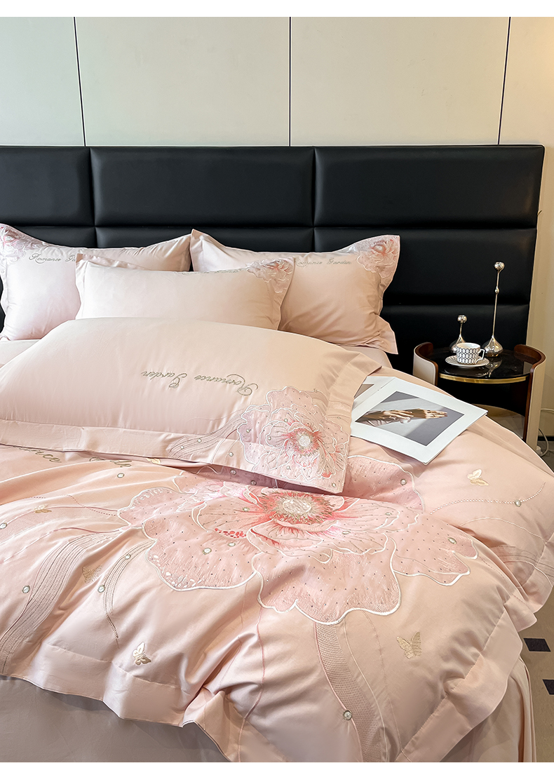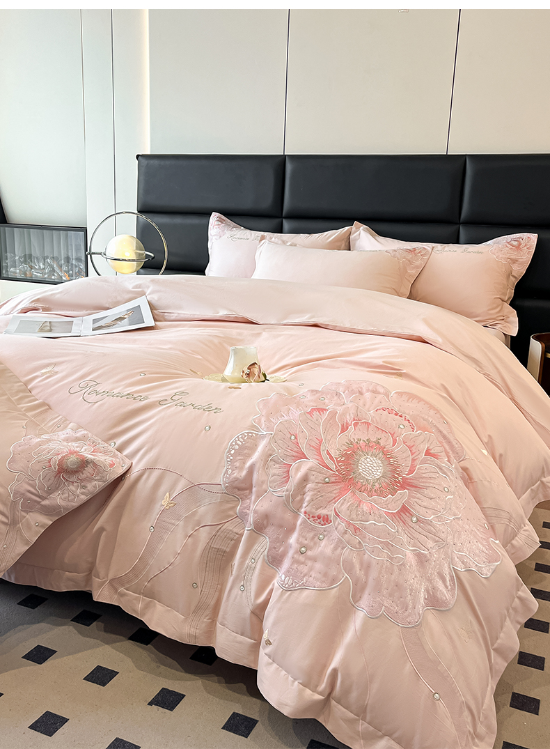 理想家家纺 2025新款亲肤舒适纯棉刺绣四件套-绽放 绽放-粉