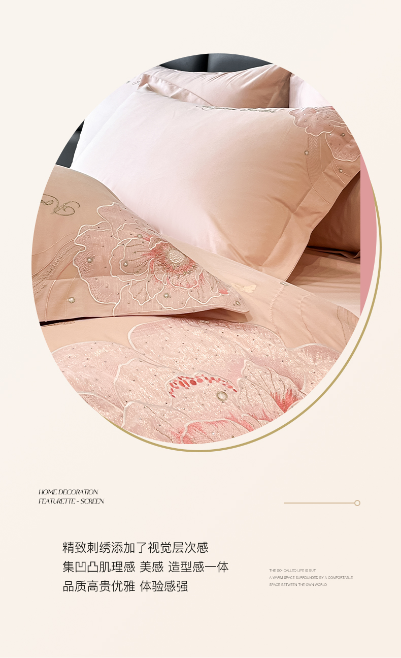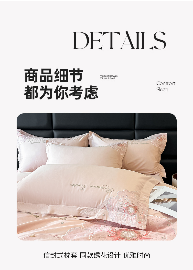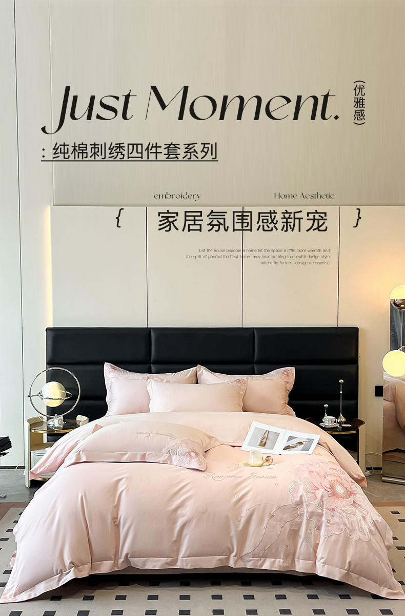 商品名称:理想家家纺 2025新款亲肤舒适纯棉刺绣四件套-绽放 绽放-粉