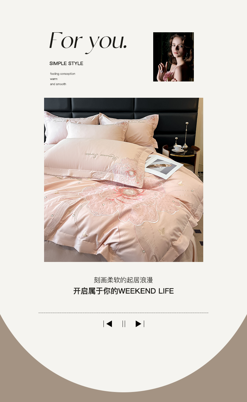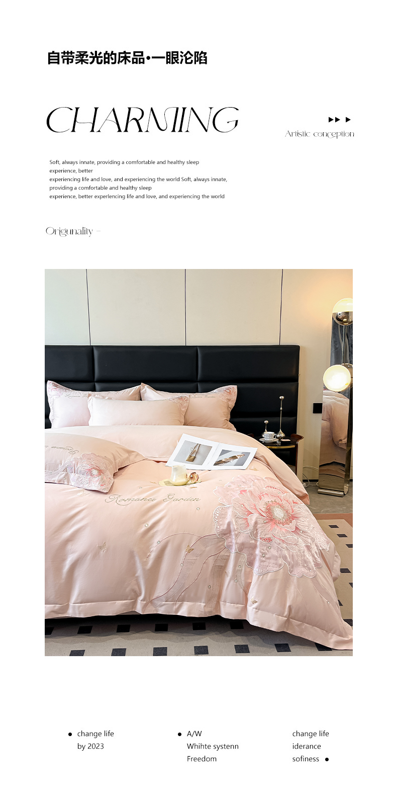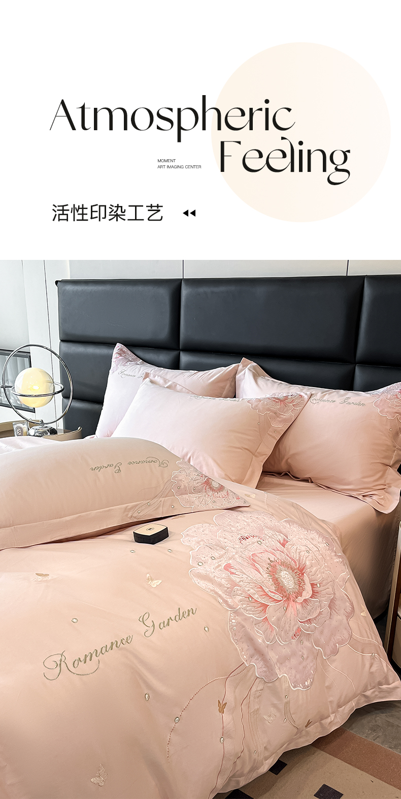商品名称:理想家家纺 2025新款亲肤舒适纯棉刺绣四件套-绽放 绽放-粉