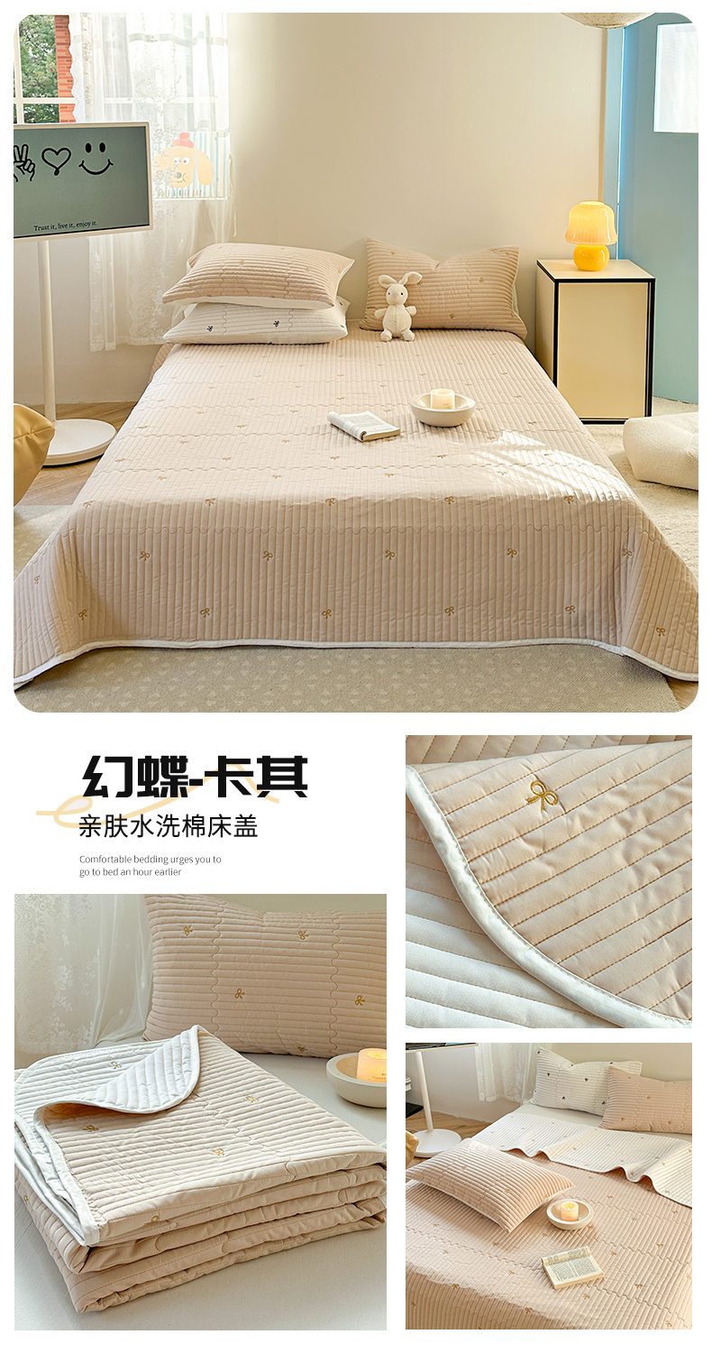优悦生活馆 2025新款亲肤舒适水洗棉夹棉床盖 幻蝶-卡其