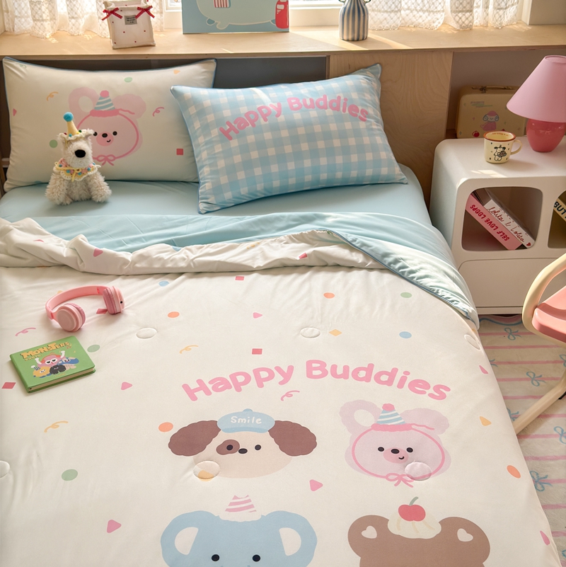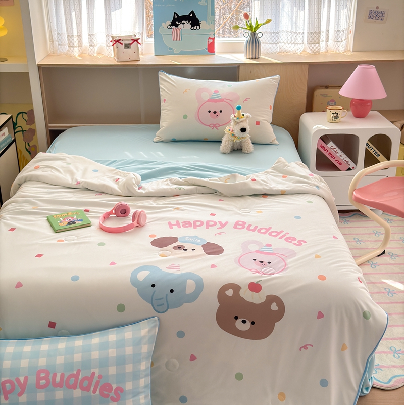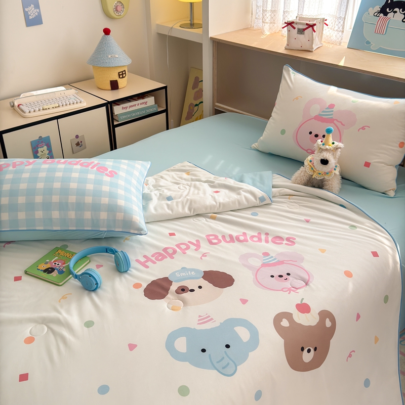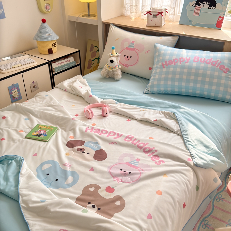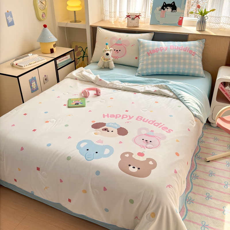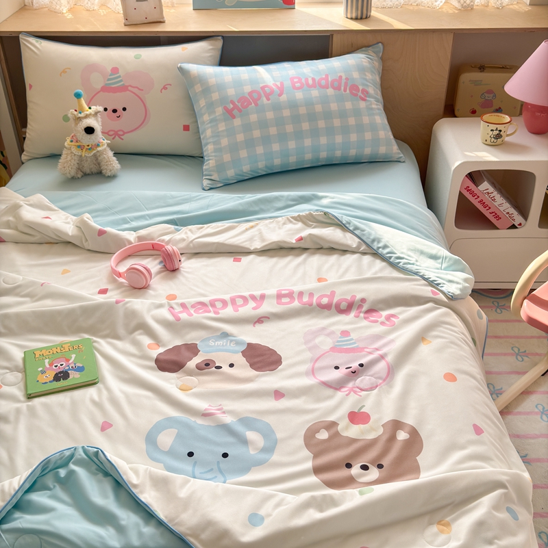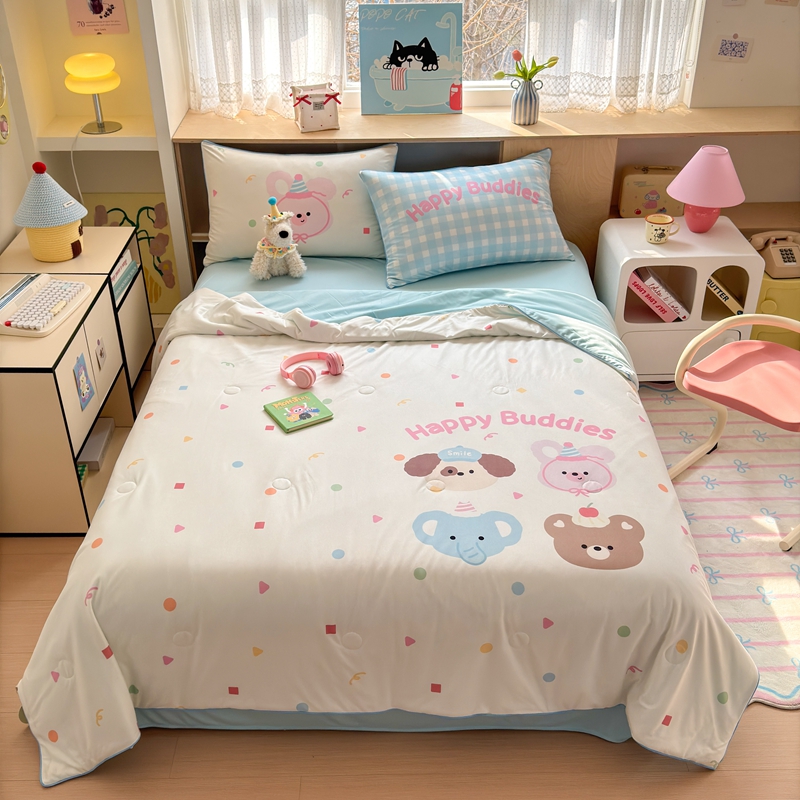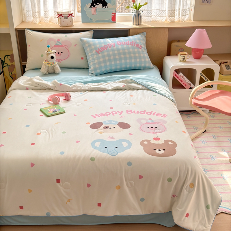 星期八 2025新款针织棉夏被四件套 波点动物园
