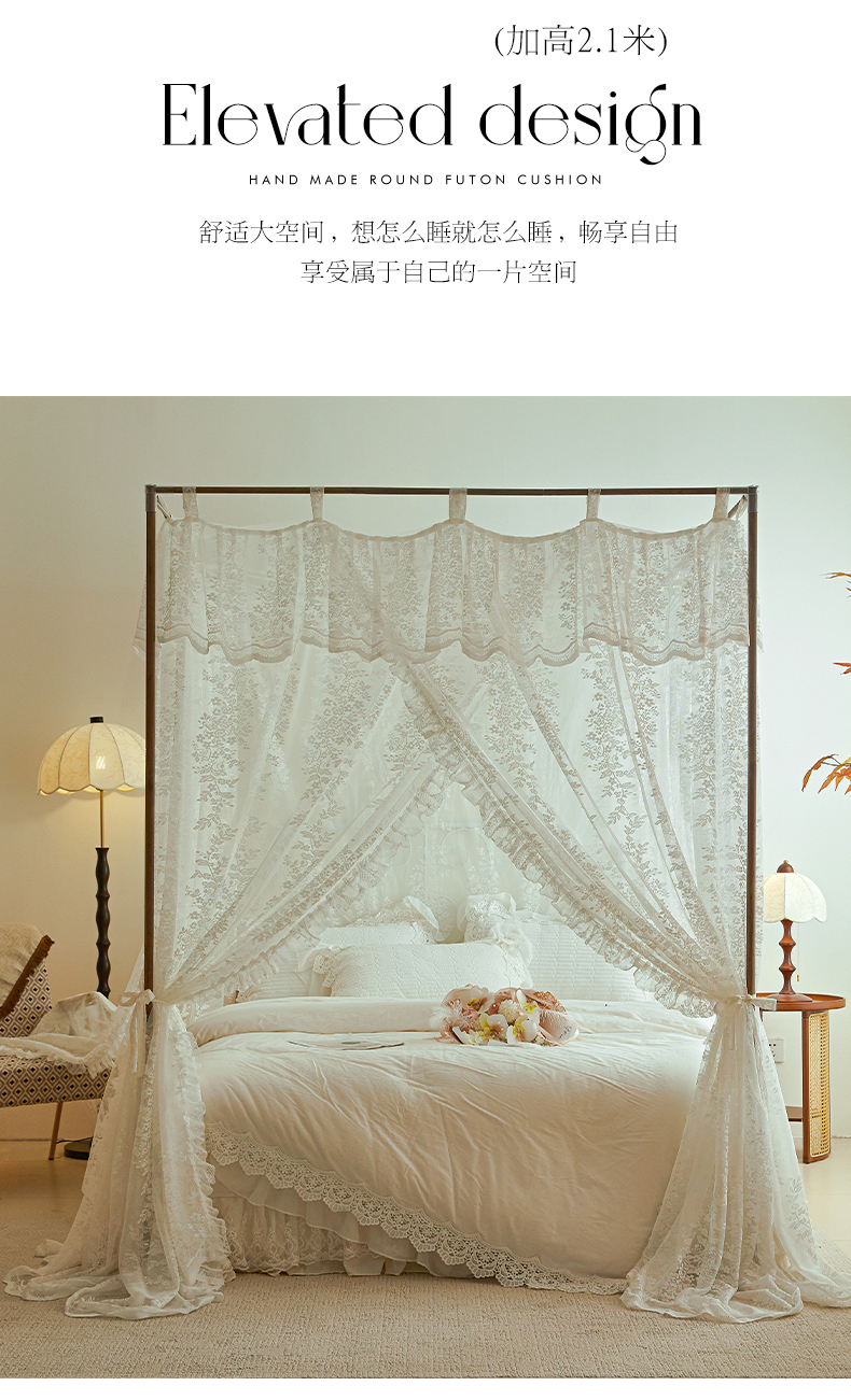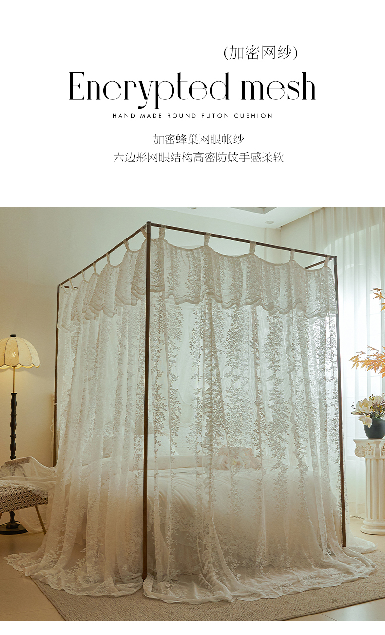 当前位置: 91家纺网 > 商品网购 > 床上用品 > 蚊帐 > 宫廷蚊帐 > 都市缘蚊帐 2025新款A902穿杆落地宫廷蚊帐烤漆支架款 902玫瑰庄园-奶油白