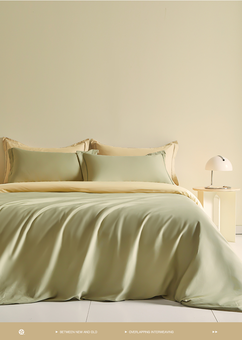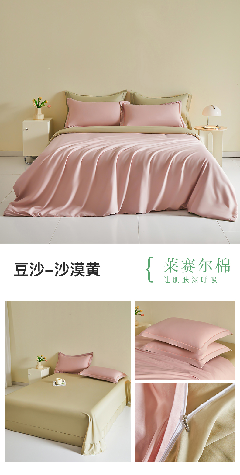 (总)帛美家纺025春夏新款莫兰迪色40S莱赛尔双拼天丝棉四件套(提供买家秀)