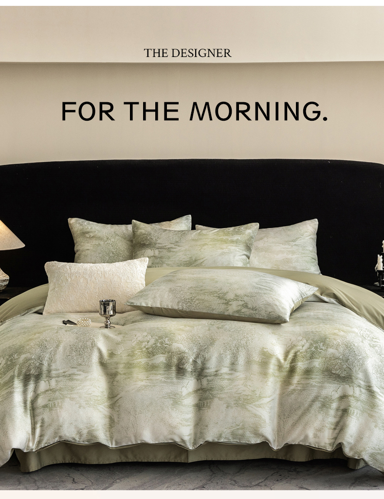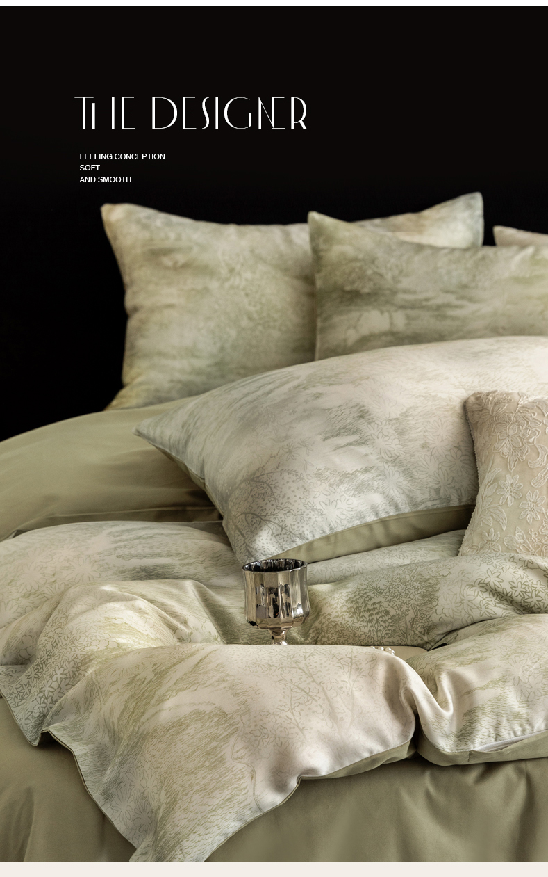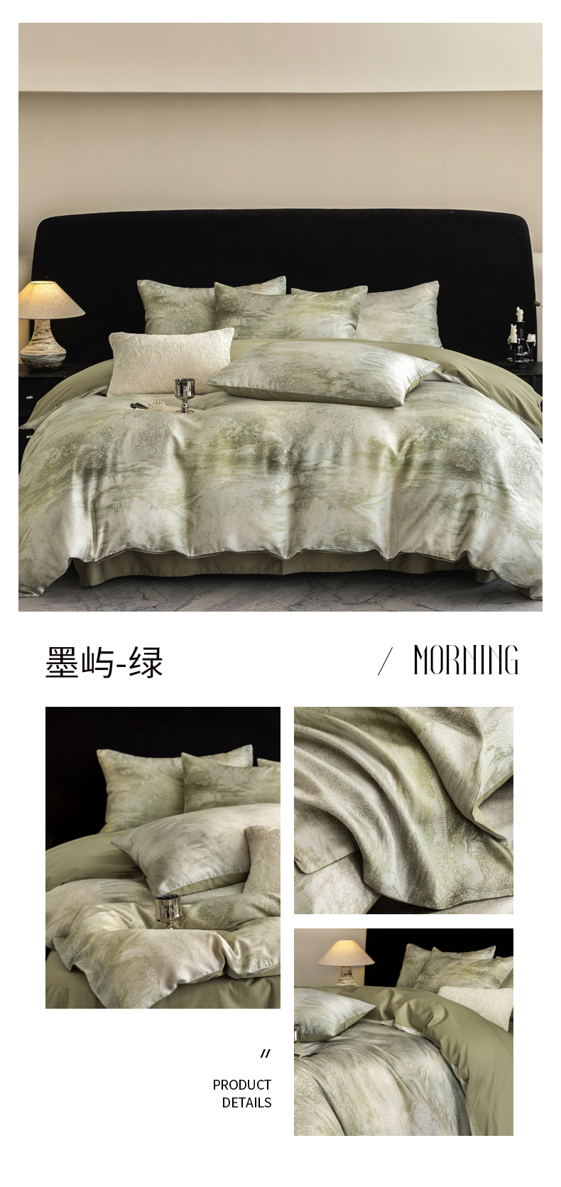 商品名称:立奥被业 2025新款60S数码印花四件套四件套 墨屿-绿