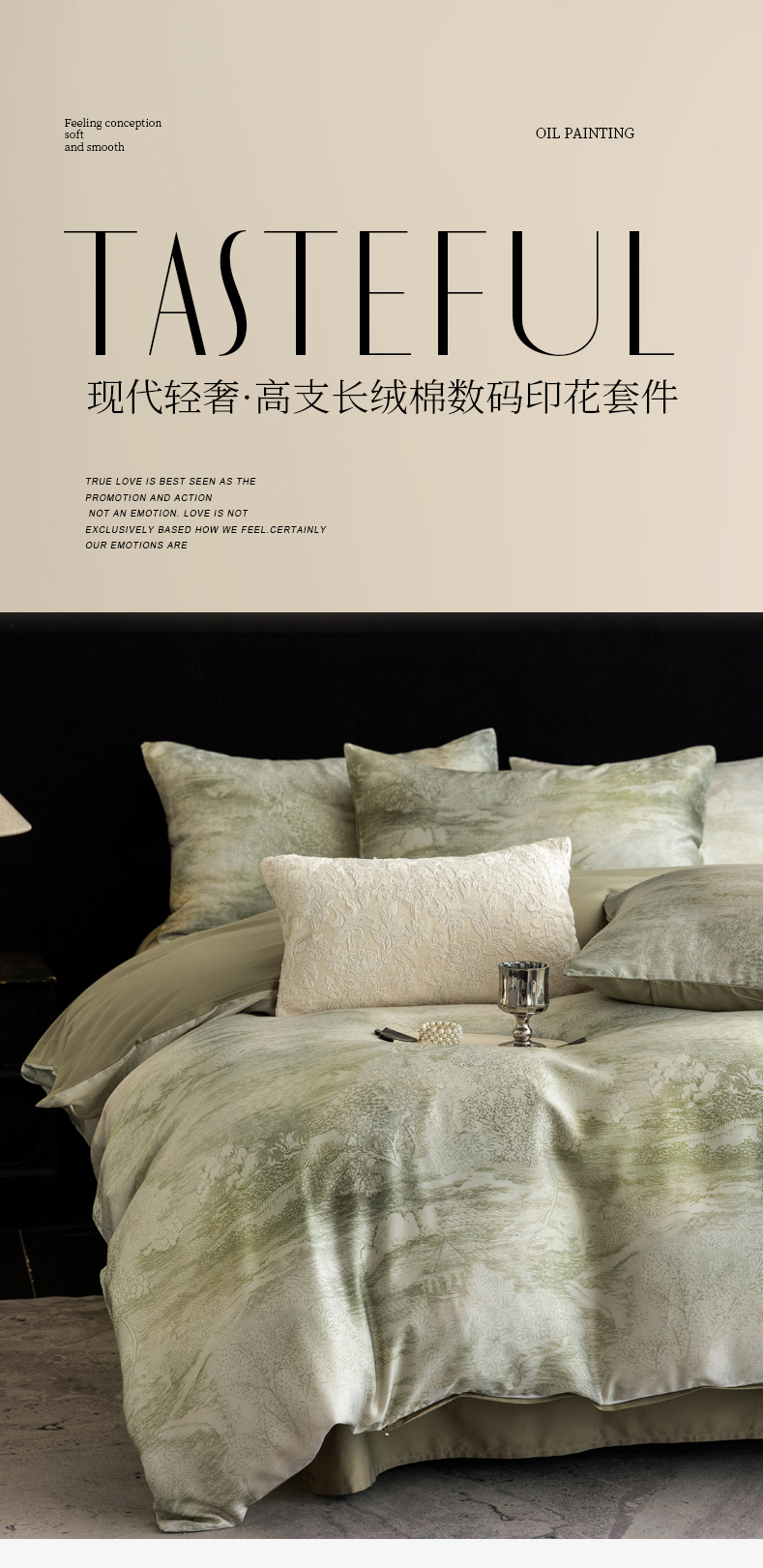立奥被业 2025新款60S数码印花四件套四件套 墨屿-绿
