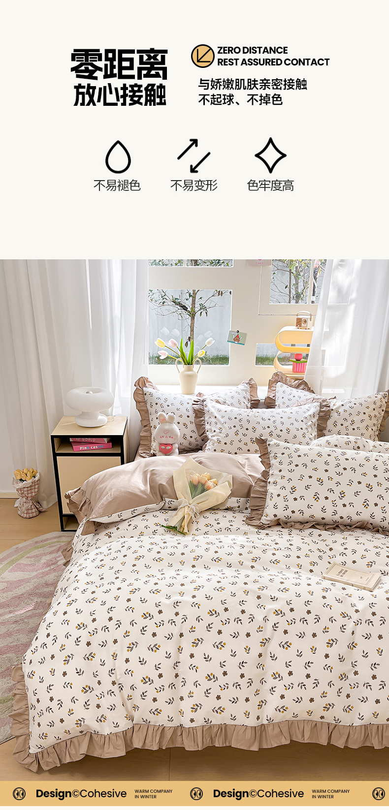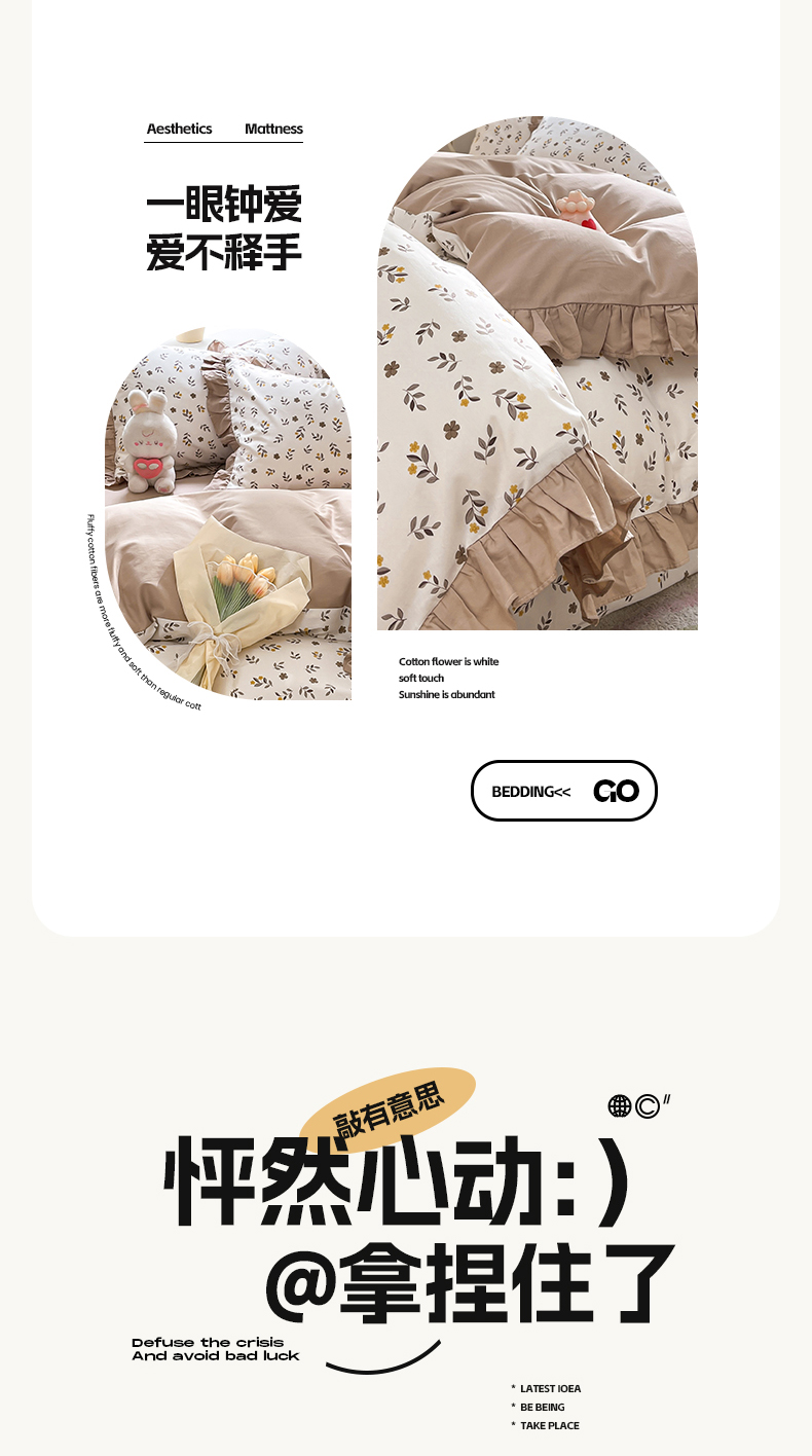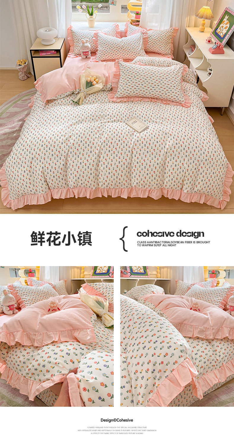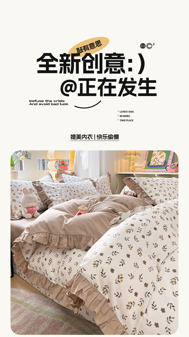 商品名称:美洲琳 2025新款40支13372全棉韩版公主风花边四件套 七彩梦-咖