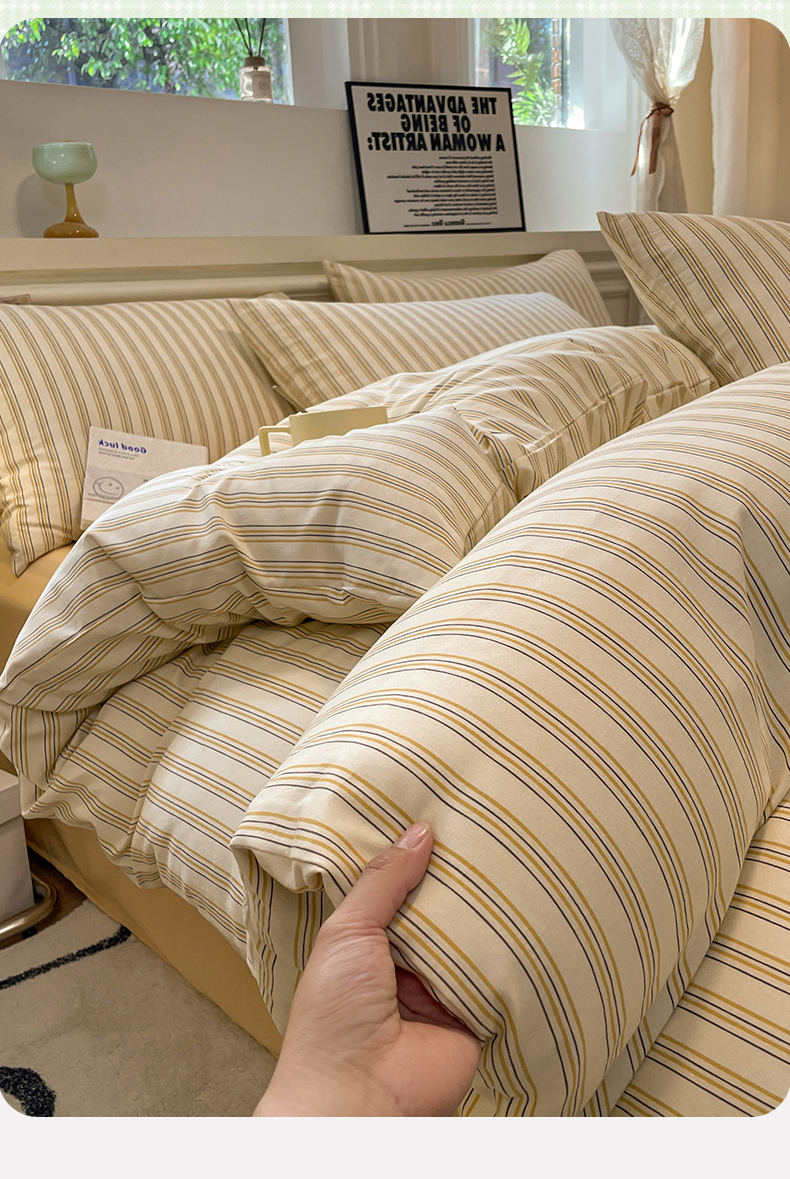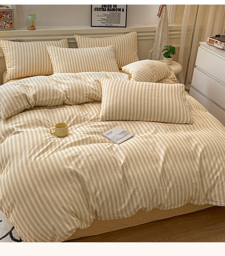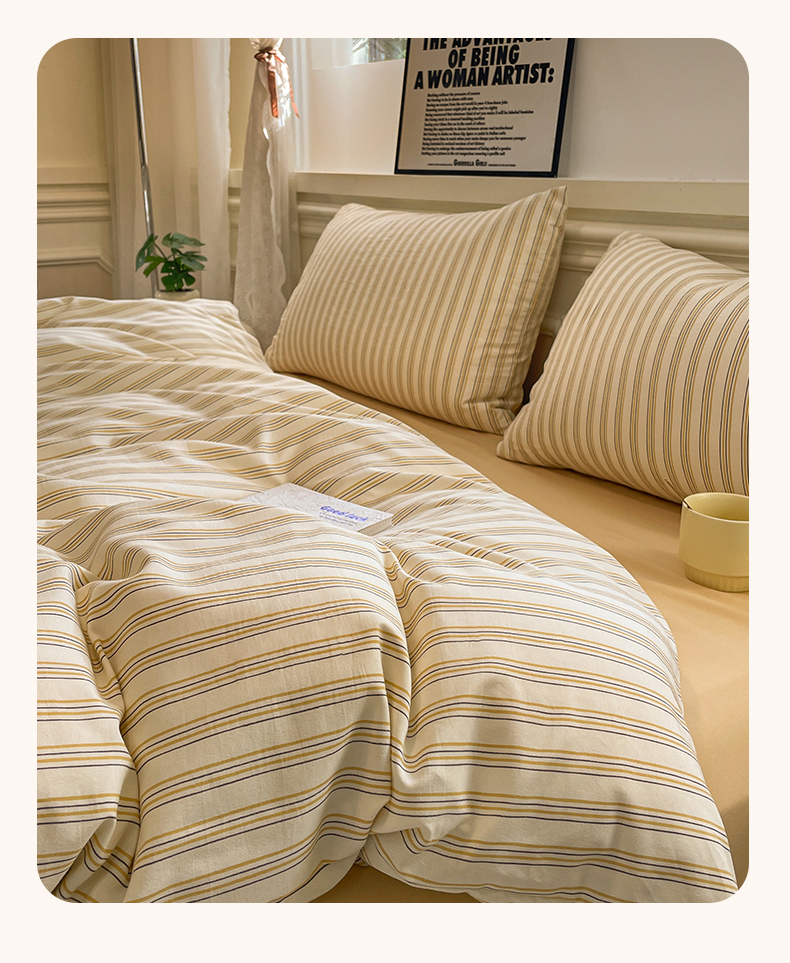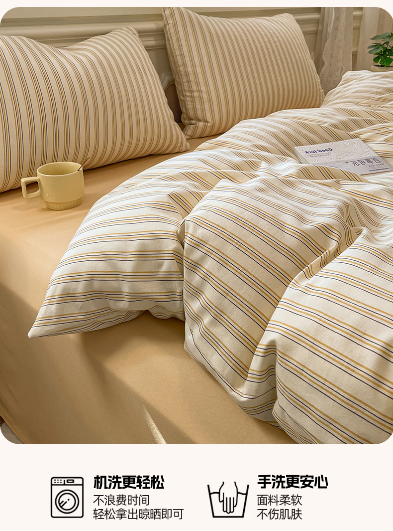 当前位置: 91家纺网 > 商品网购 > 床品套件 > 四件套 > 水洗棉四件套 > 盛秋家纺 2025新款水洗棉格子系列四件套芝士条纹+云初黄