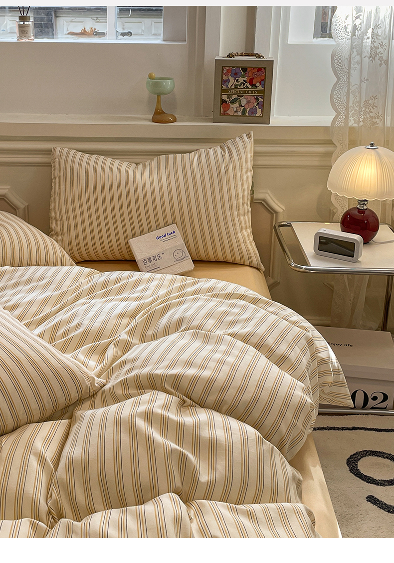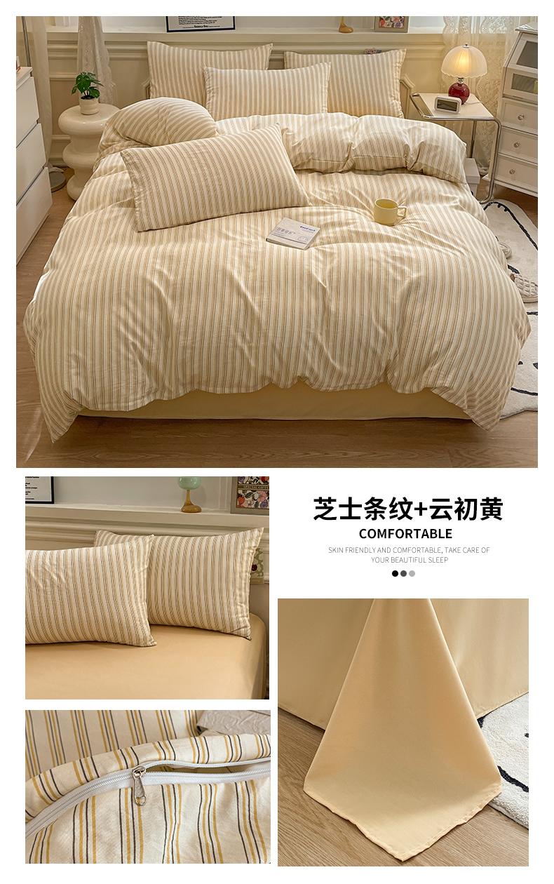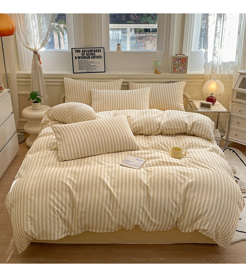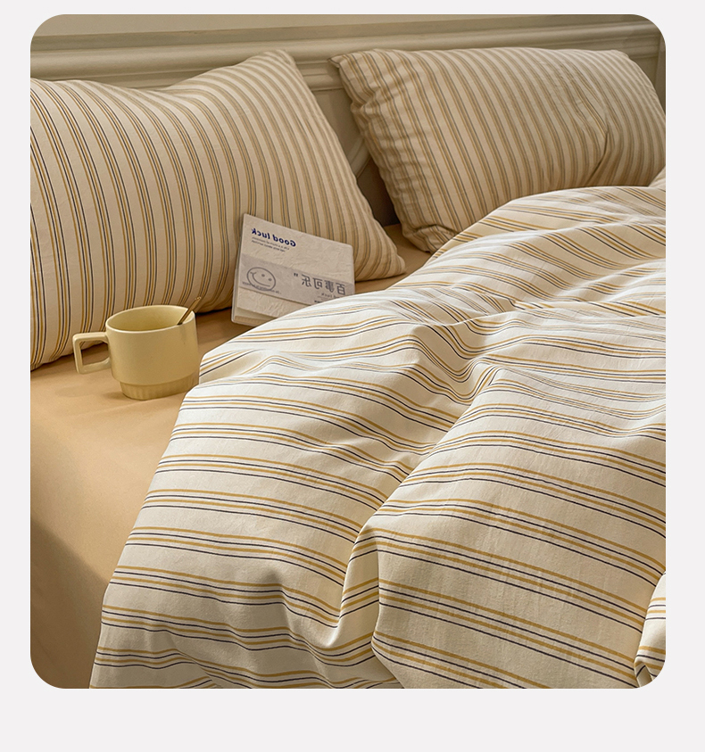 当前位置: 91家纺网 > 商品网购 > 床品套件 > 四件套 > 水洗棉四件套 > 盛秋家纺 2025新款水洗棉格子系列四件套芝士条纹+云初黄
