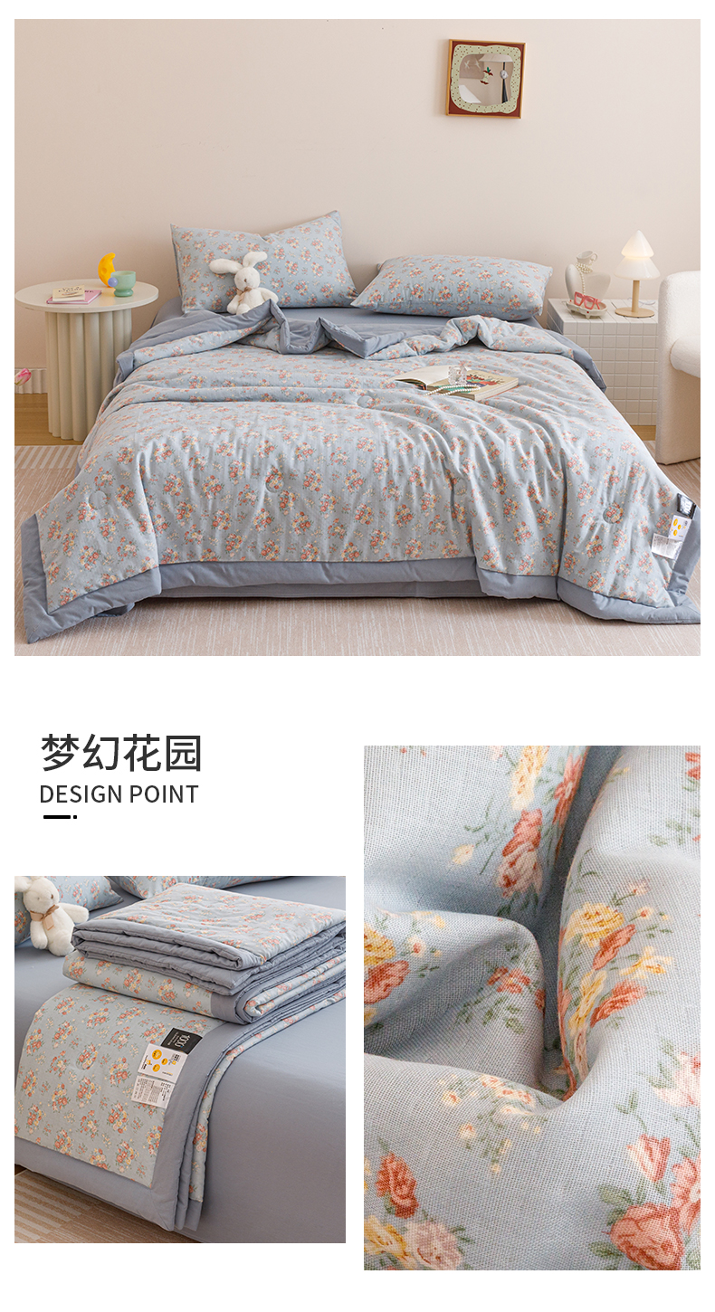 • 91家纺网 家纺一手货源 找家纺 2025新款全棉双层纱夏被 被子被芯 玫瑰花园