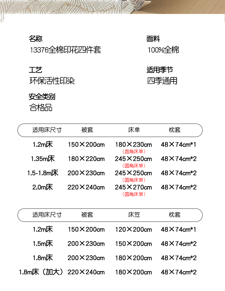 1.8m床笠四件套被套200*230 | ¥150.00 |