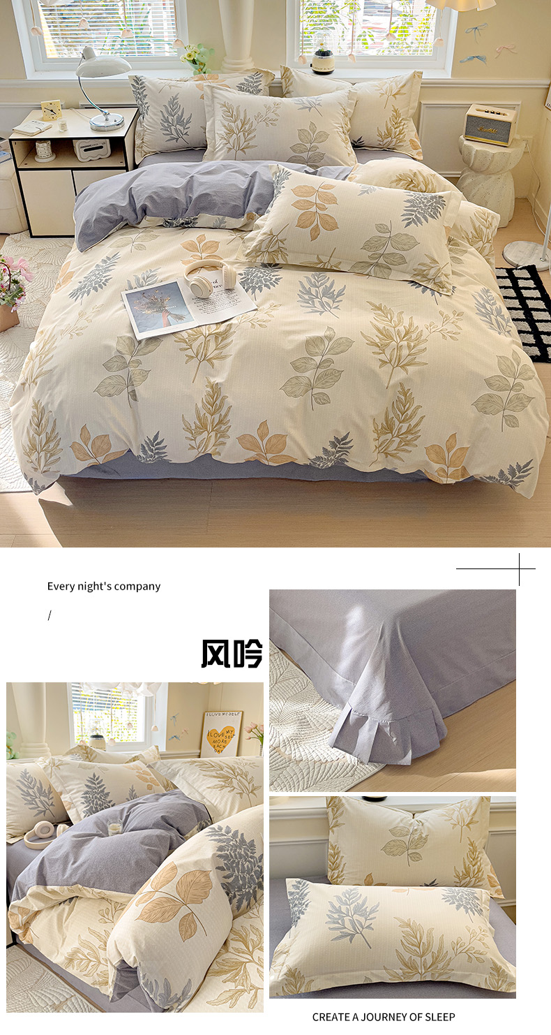当前位置: 91家纺网 > 商品网购 > 床品套件 > 四件套 > 全棉普通四件套 > 大柏树 2025新款全棉13376印花四件套系列(可定制)-床单四件套风吟