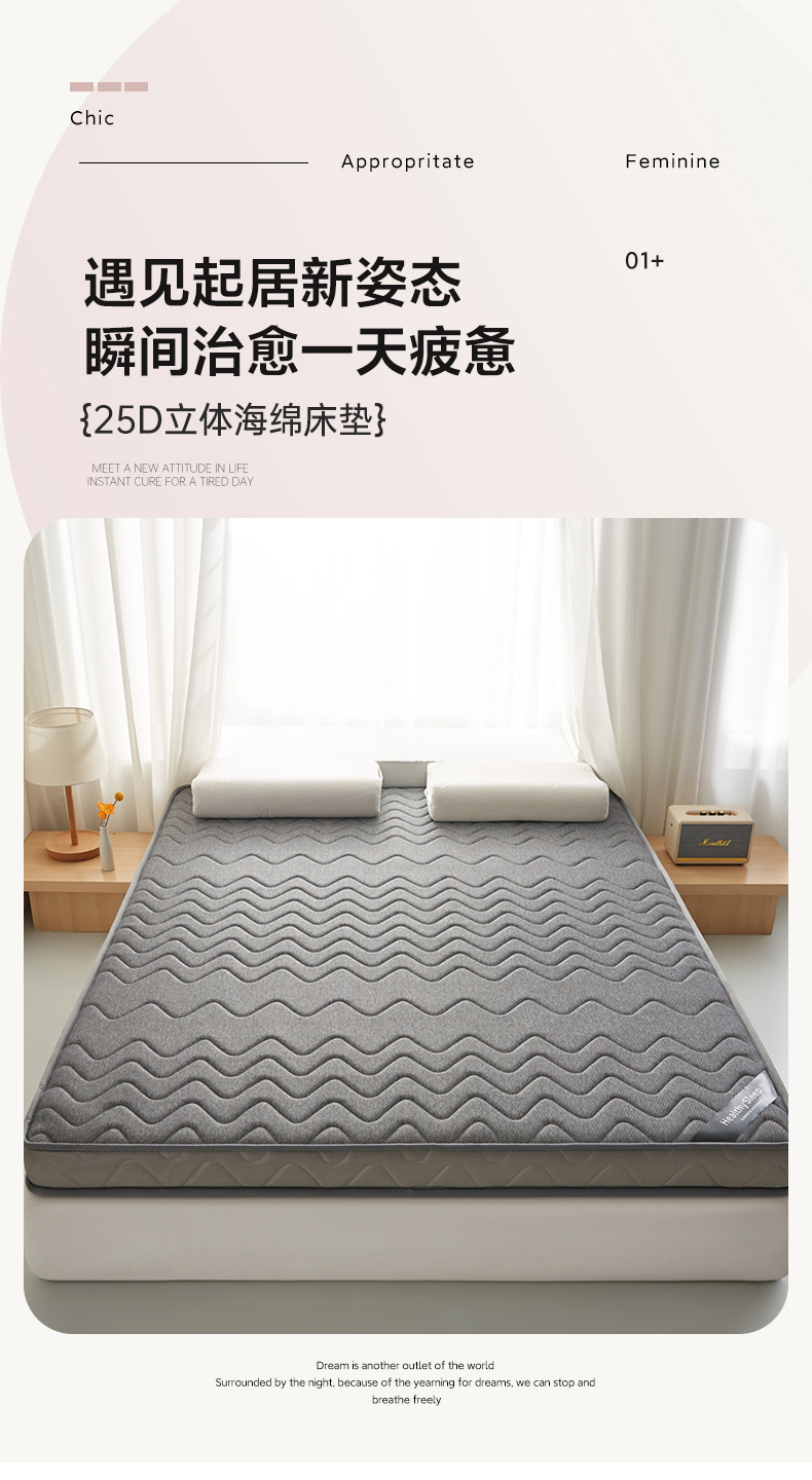 当前位置: 91家纺网 > 商品网购 > 床垫/床褥 > 普通床垫 > 艺博床垫 2025新款25d立体海绵床垫 曲线灰
