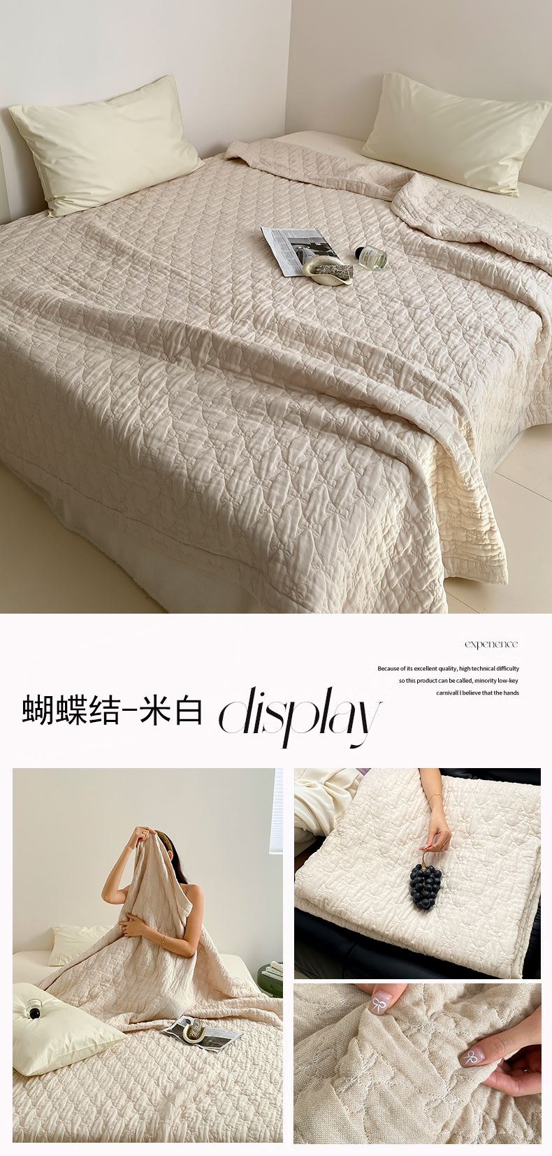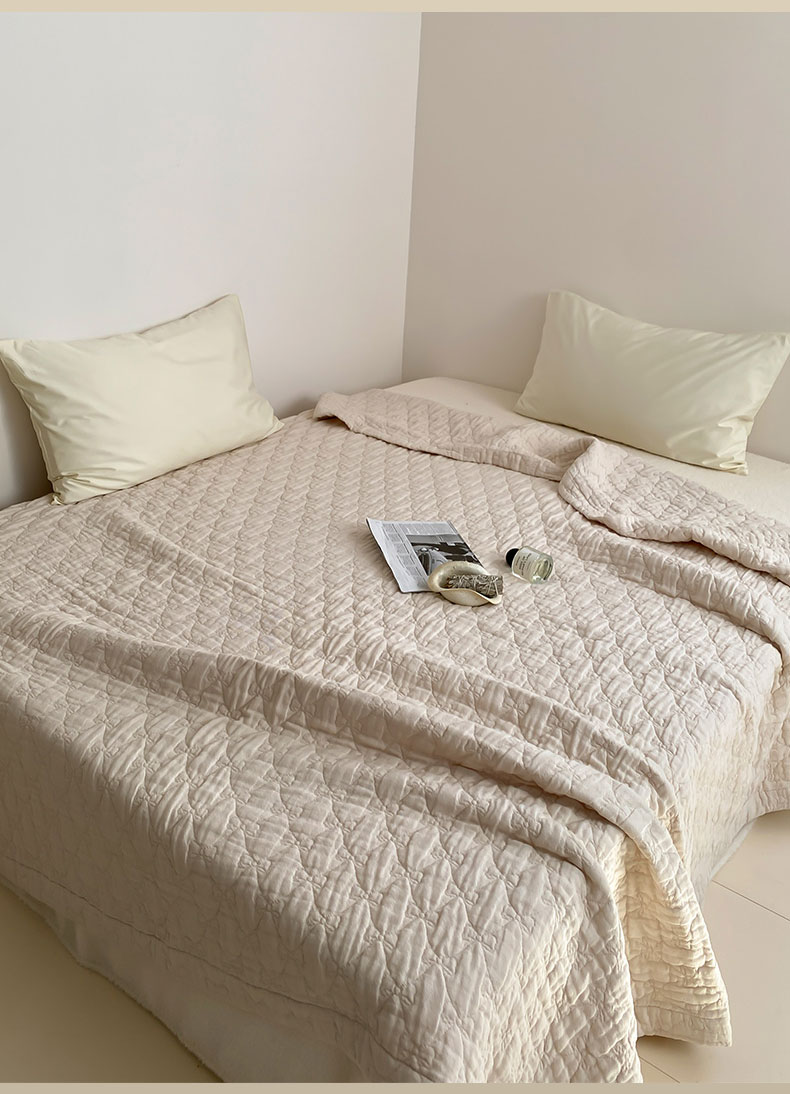 商品名称:麻依2025新款全棉韩国纱布夏被子被芯 蝴蝶结-米白