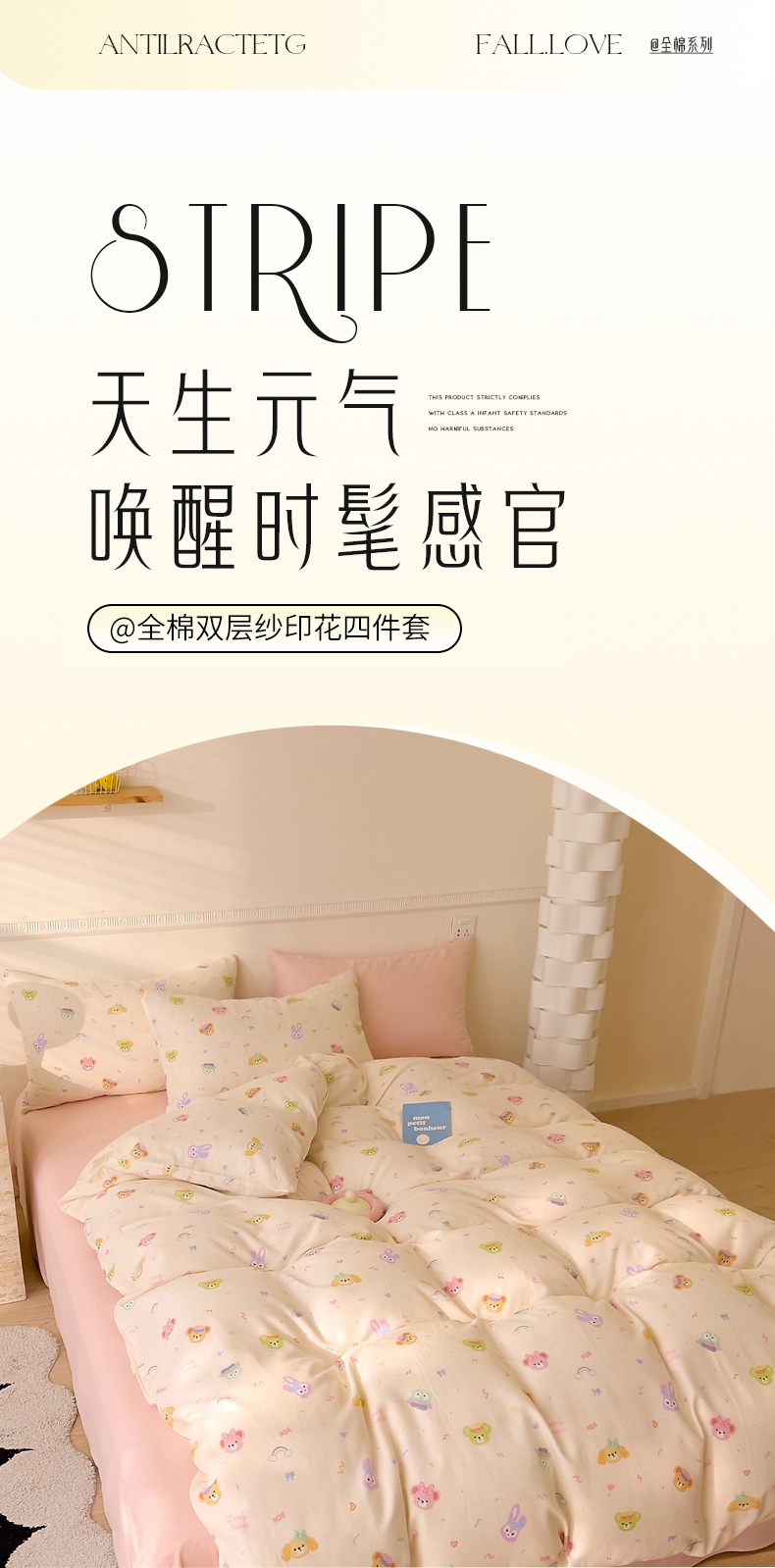 当前位置: 91家纺网 > 商品网购 > 床品套件 > 四件套 > 全棉普通四件套 > DoDo 兜兜 2025新款全棉双层纱印花四件套(可定做尺寸) 梦想家