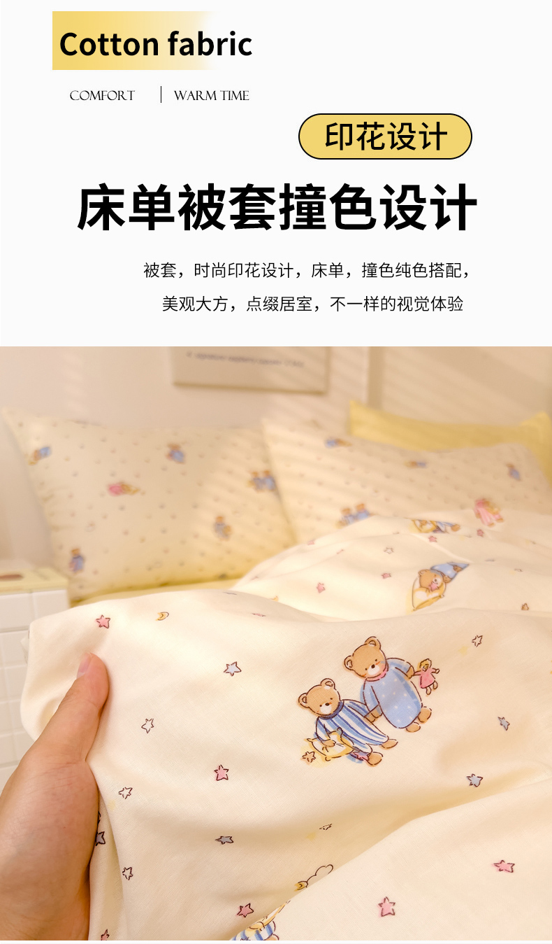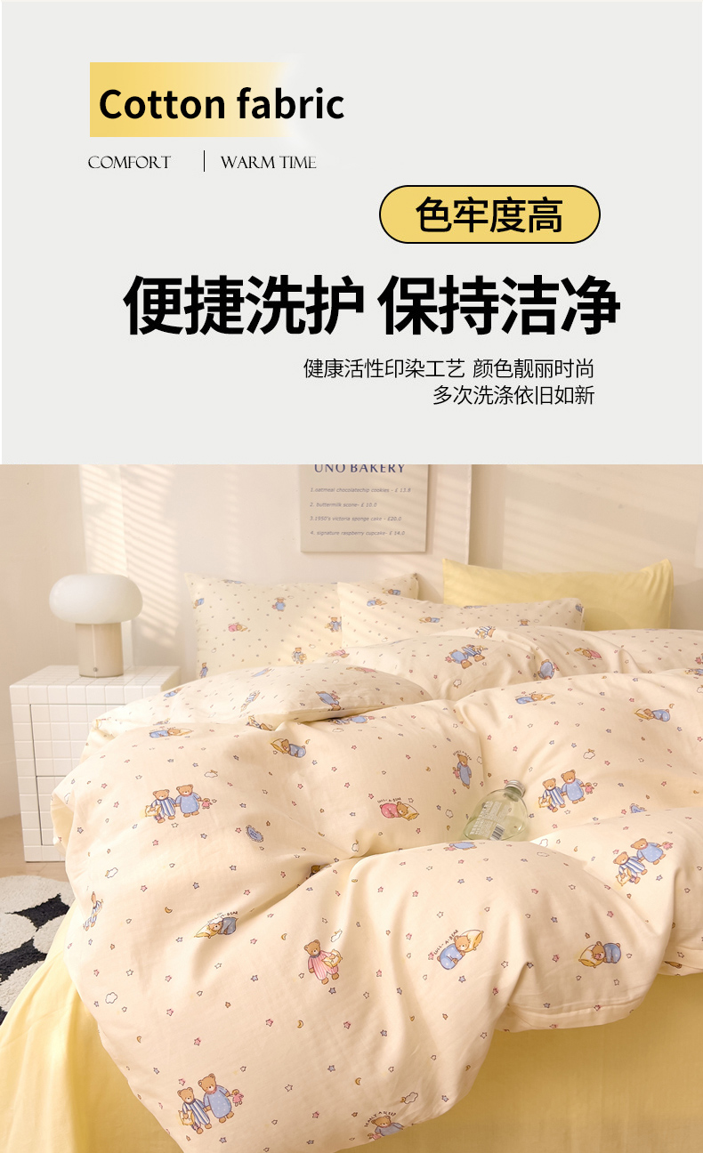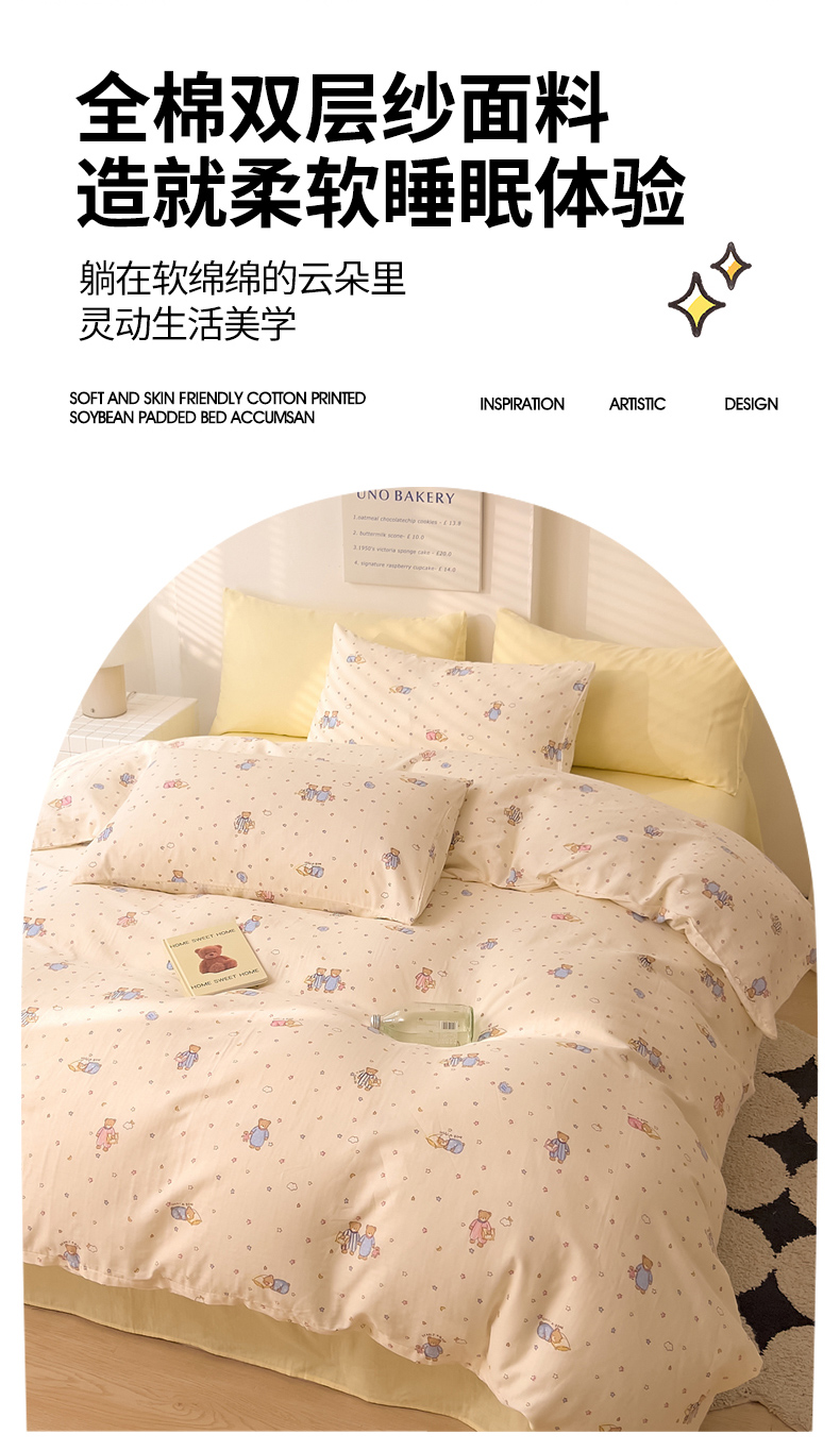 当前位置: 91家纺网 > 商品网购 > 床品套件 > 四件套 > 全棉普通四件套 > DoDo 兜兜 2025新款全棉双层纱印花四件套(可定做尺寸) 晚安熊