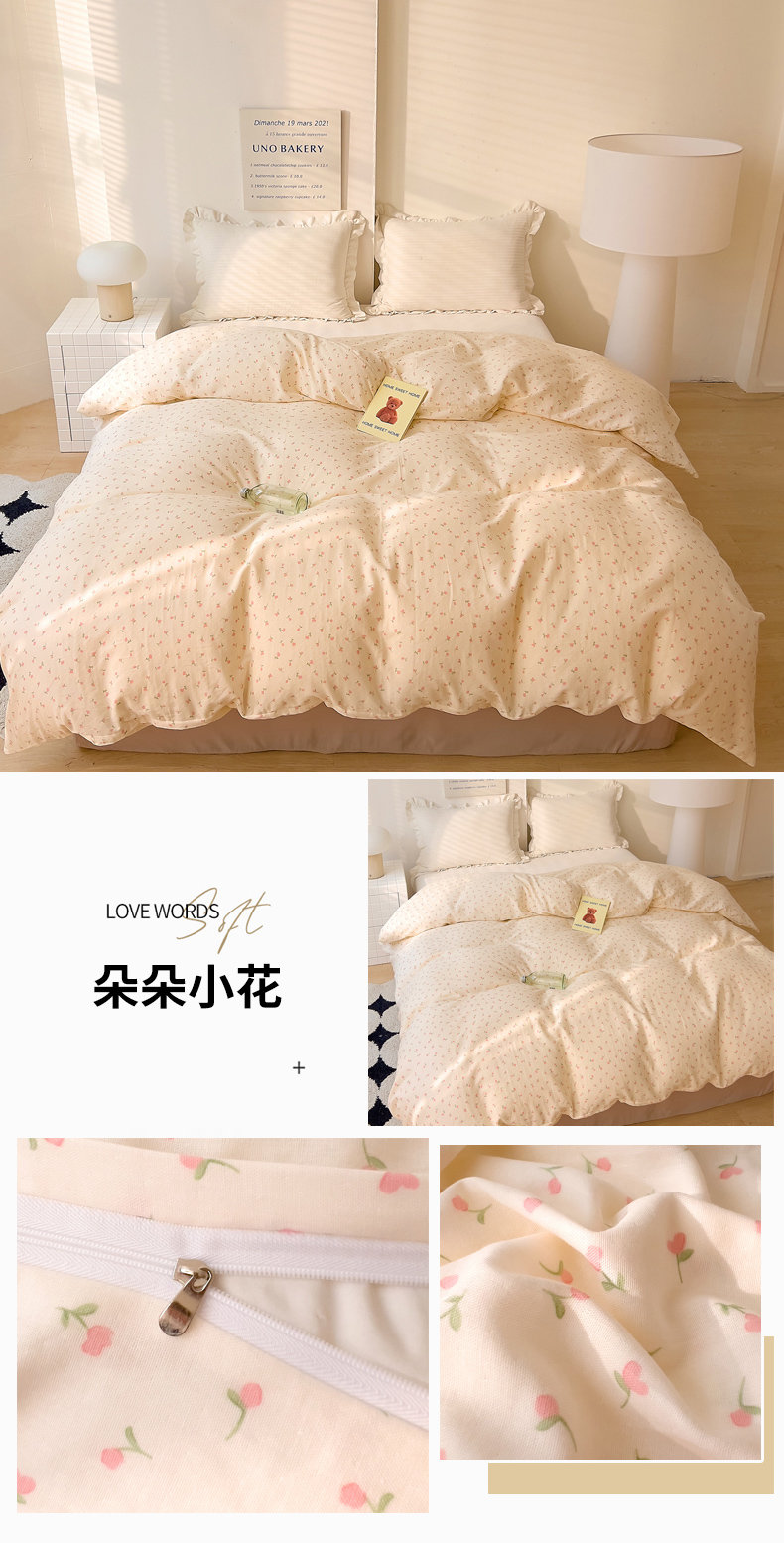 • 91家纺网 家纺一手货源 找家纺 DoDo 兜兜 2025新款全棉双层纱印花单被套(可定做尺寸) 朵朵小花