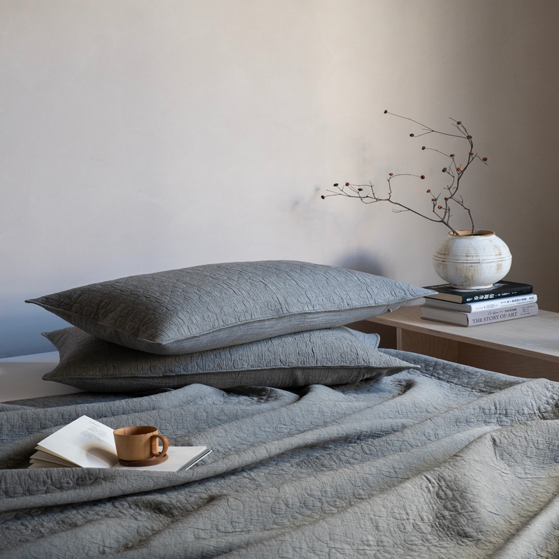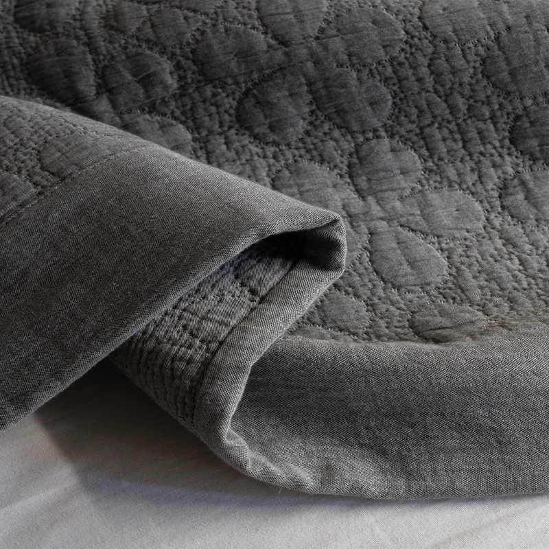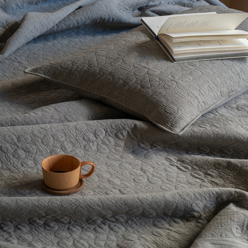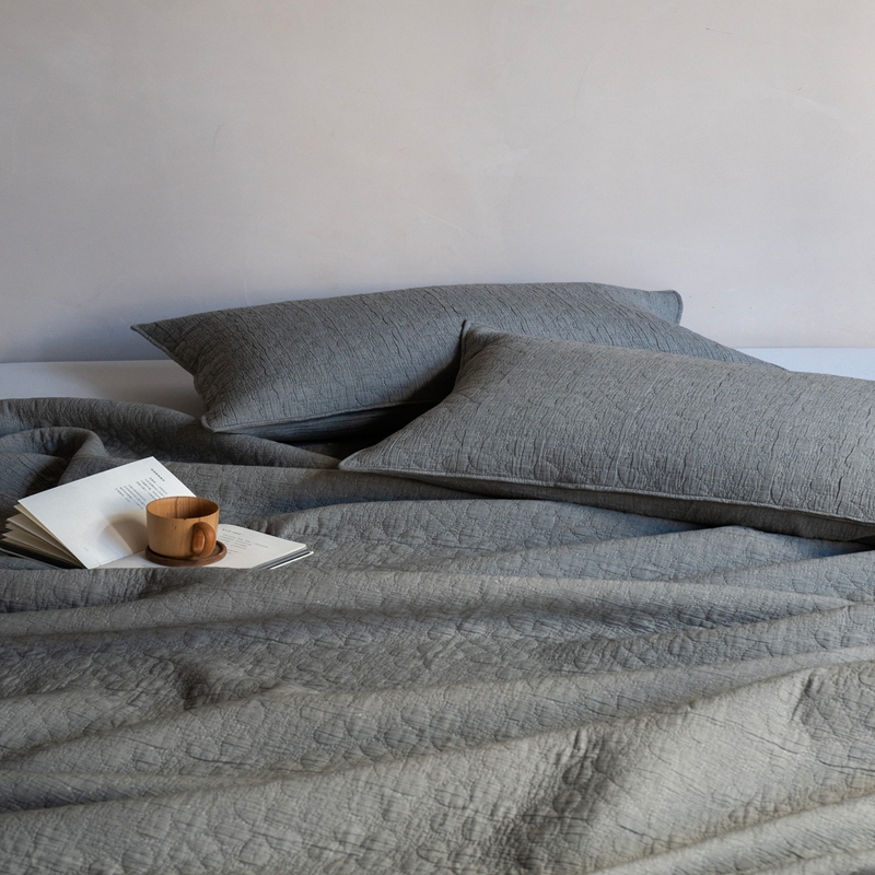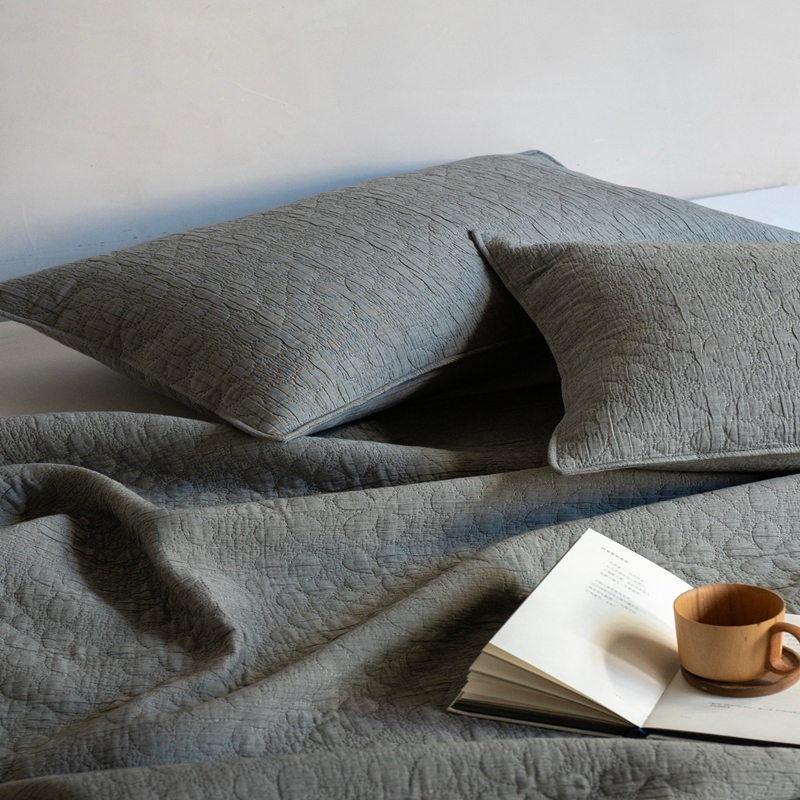 商品名称:璞素2025新款全棉色织三层纱床盖三件套-落雪 落雪灰