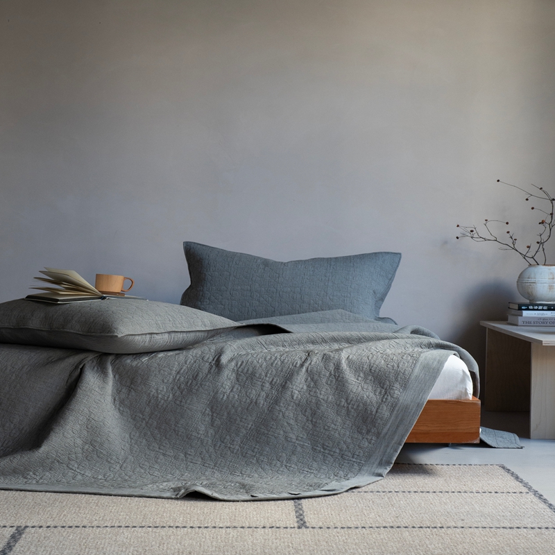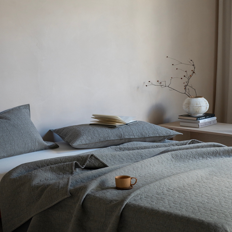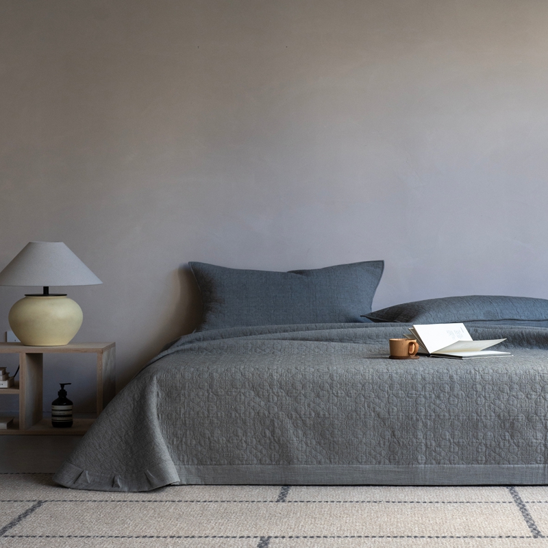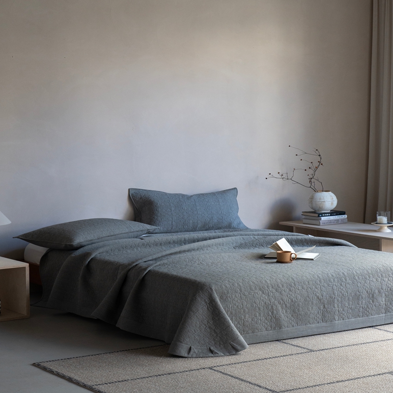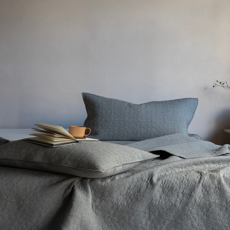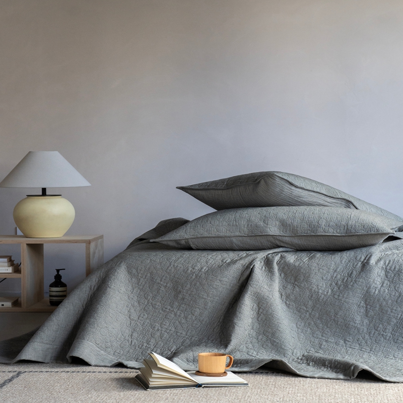 商品名称:璞素2025新款全棉色织三层纱床盖三件套-落雪 落雪灰