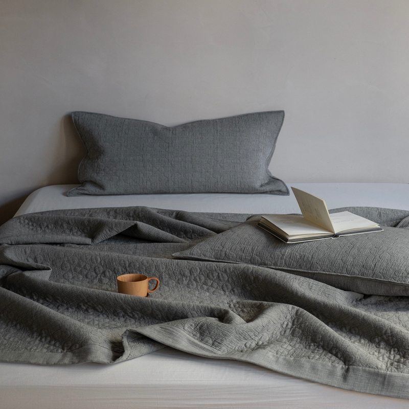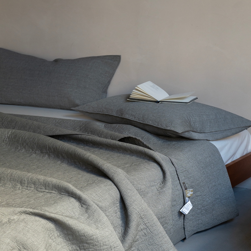 璞素2025新款全棉色织三层纱床盖三件套-落雪 落雪灰