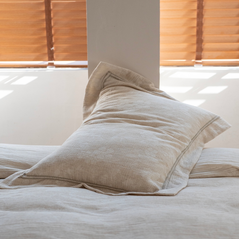 (总)璞素2025新款全棉色织三层纱床盖三件套-摩卡,摩卡灰,摩卡咖